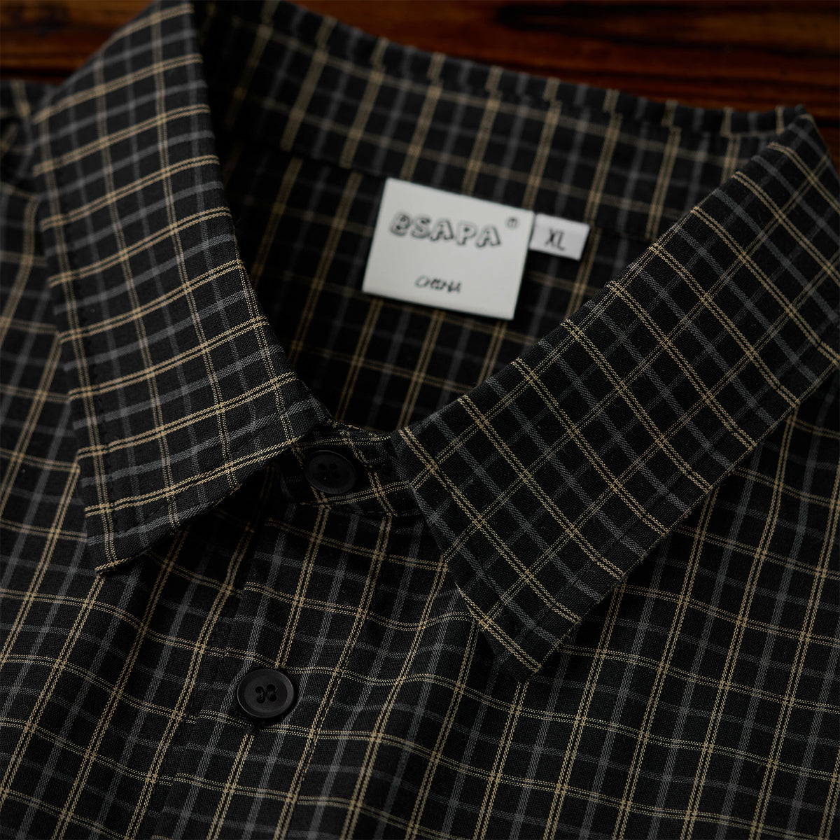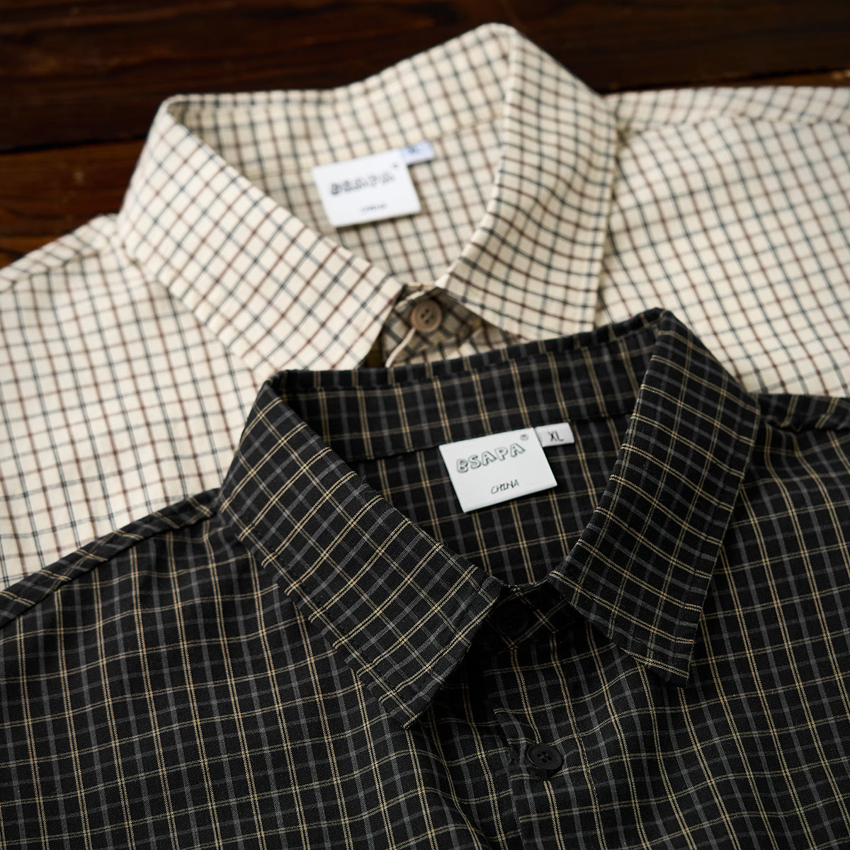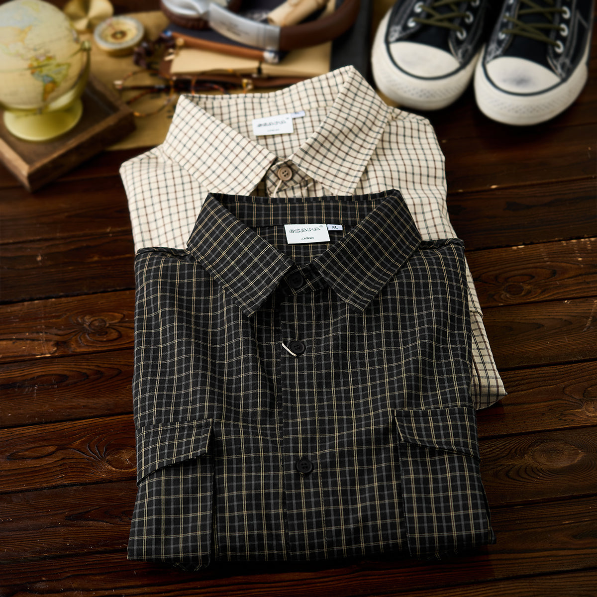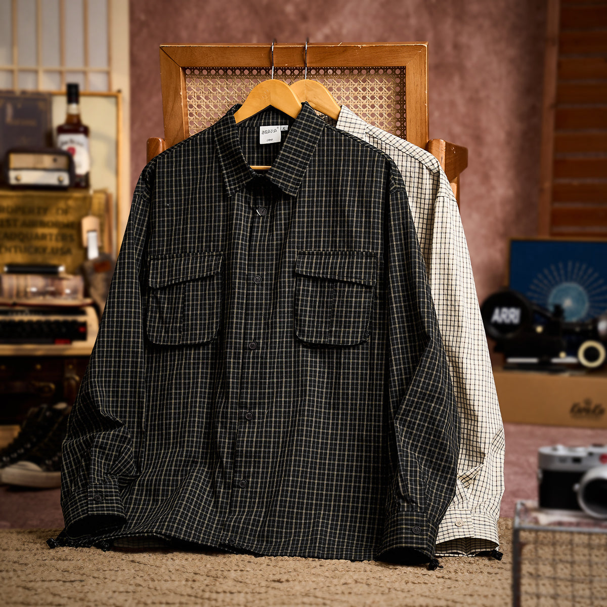 2色展開 裾ドローコード付きチェック柄ワークシャツ