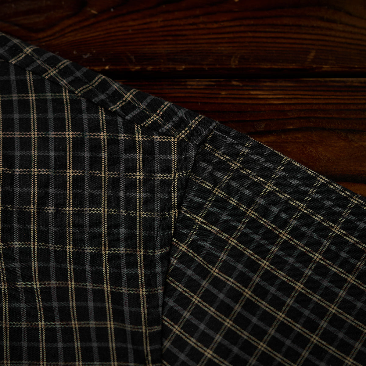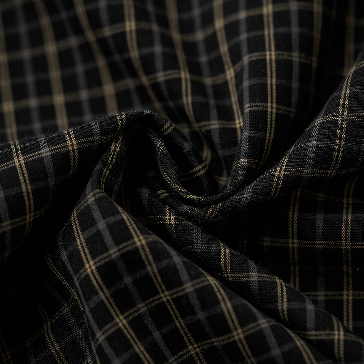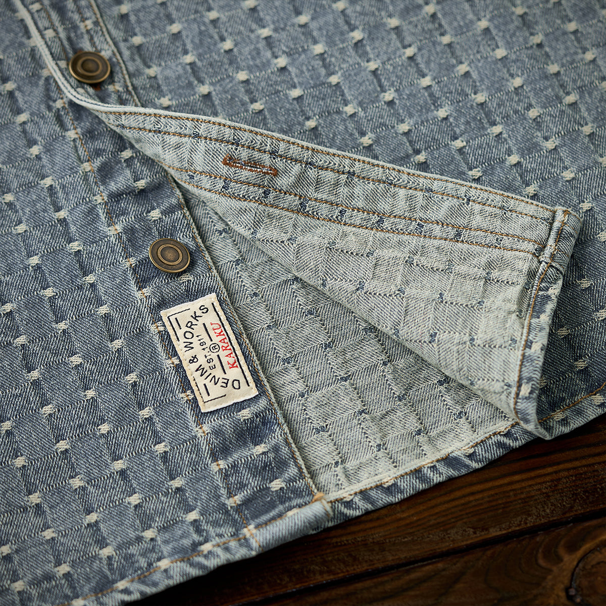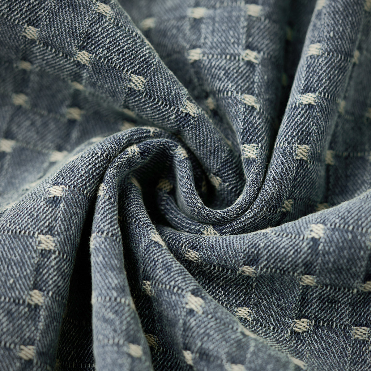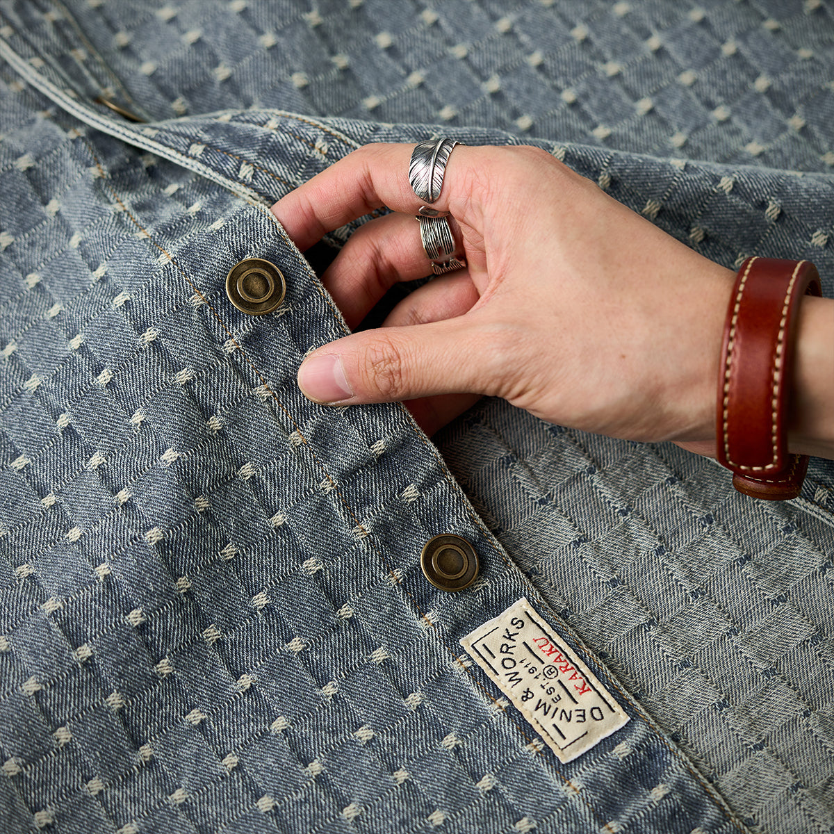 【予約】ジャカード織りチェック柄 アンティーク調ボタン付きデニムシャツ