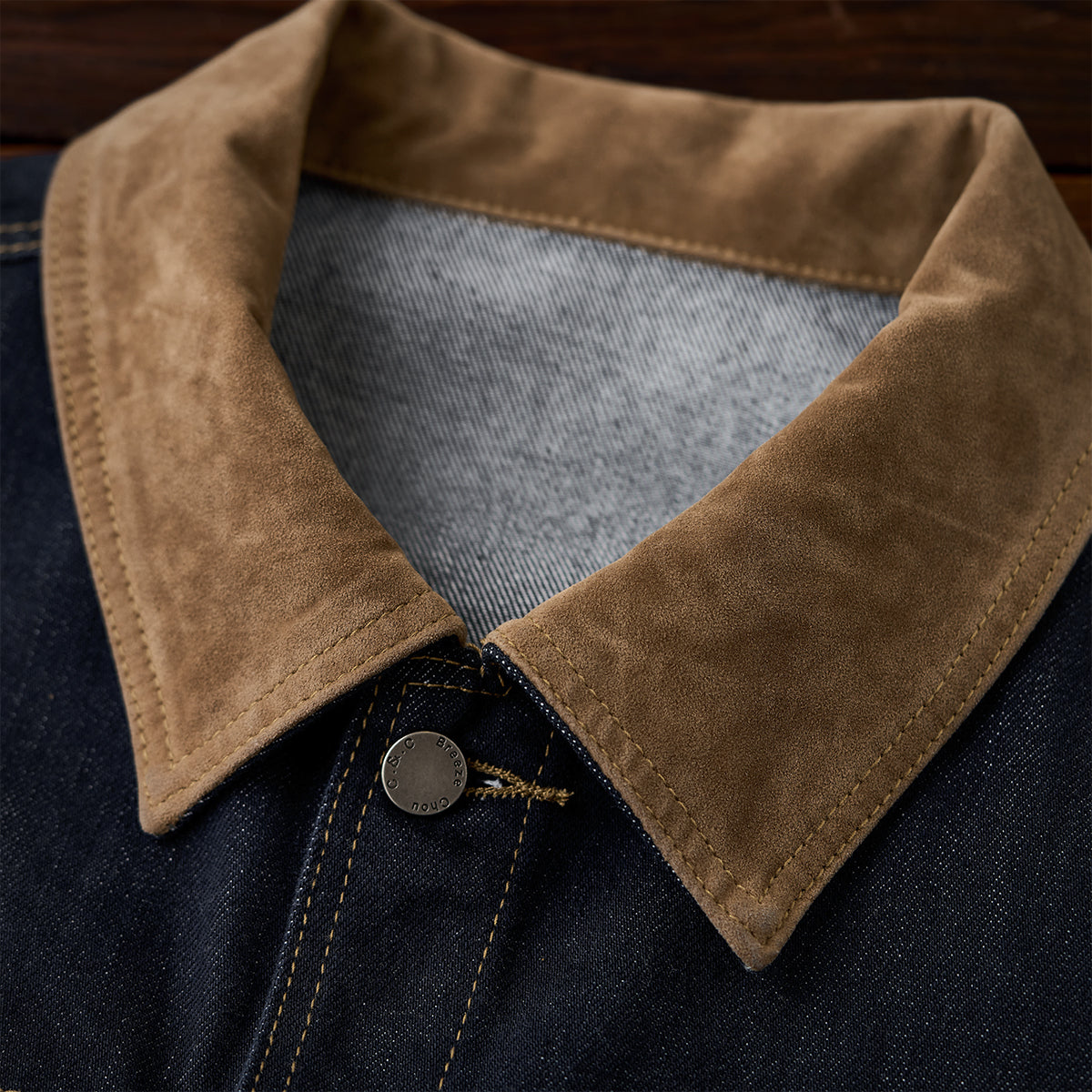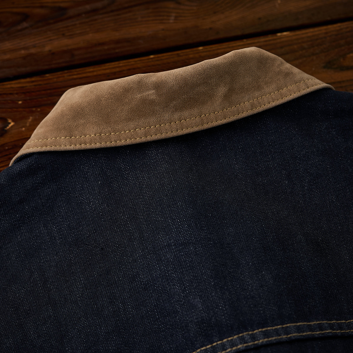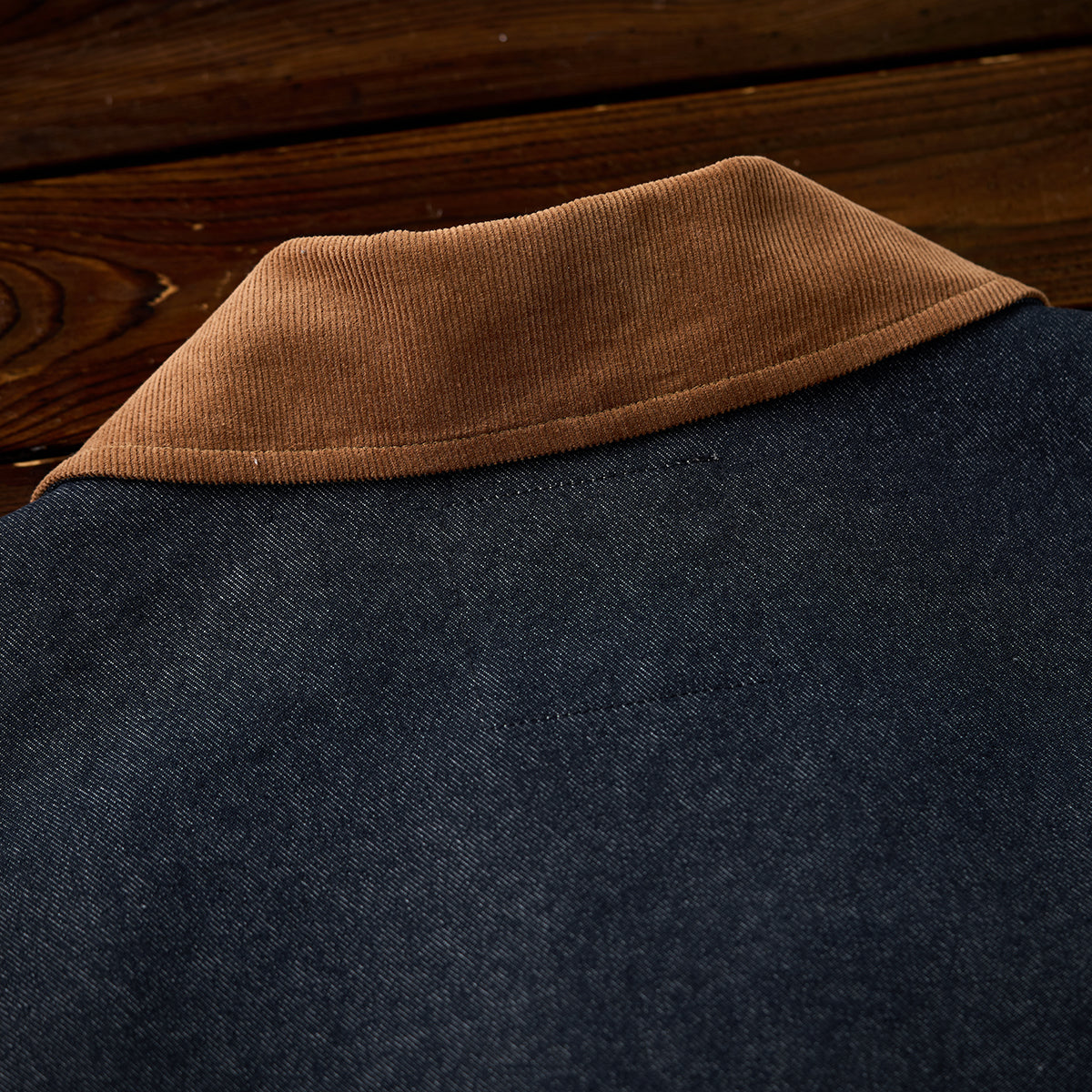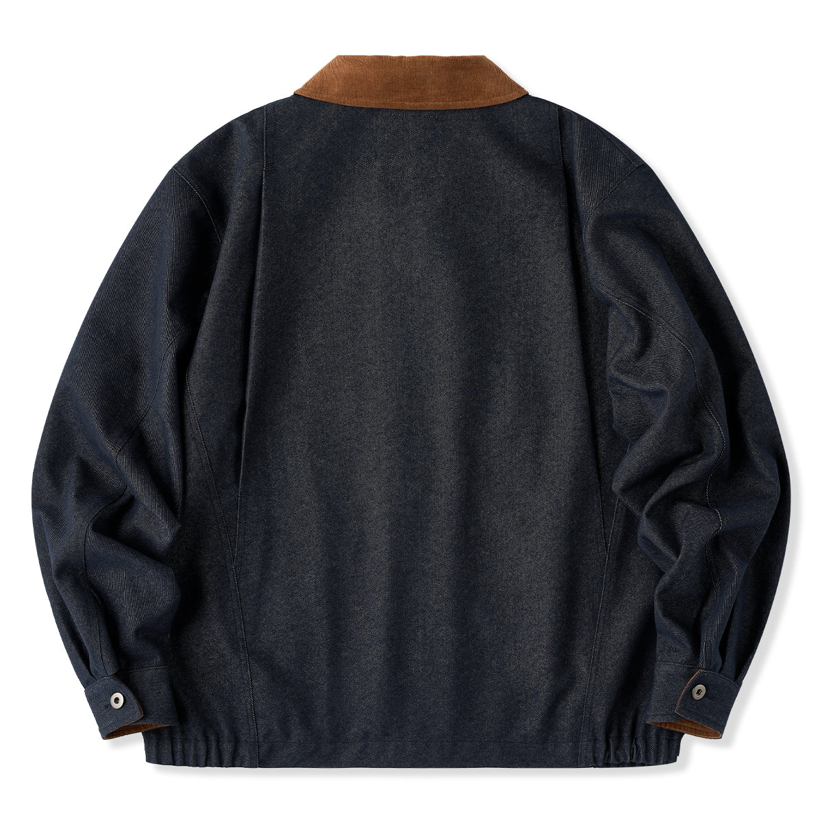 襟・異素材切り替え ワンウォッシュデニムワークジャケット