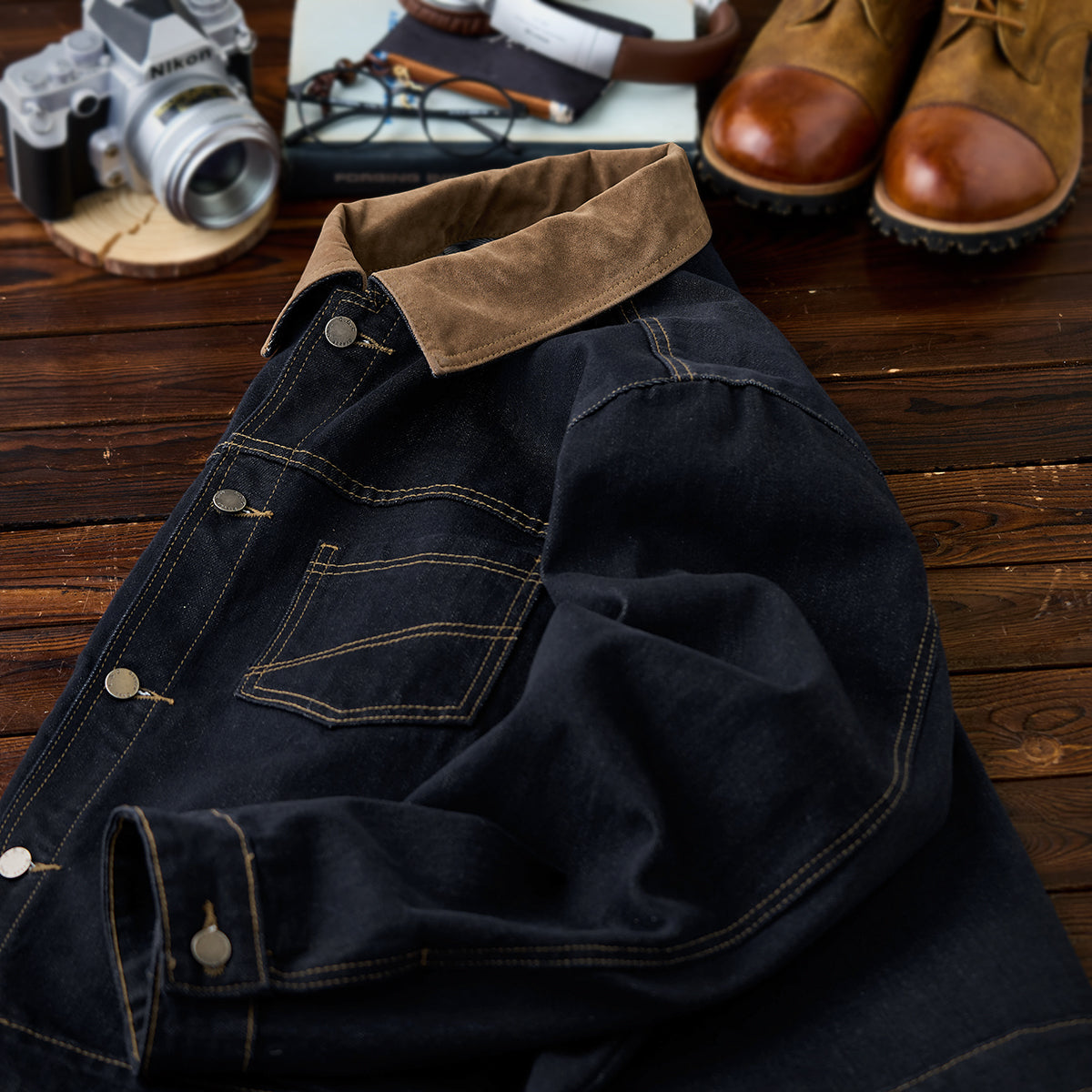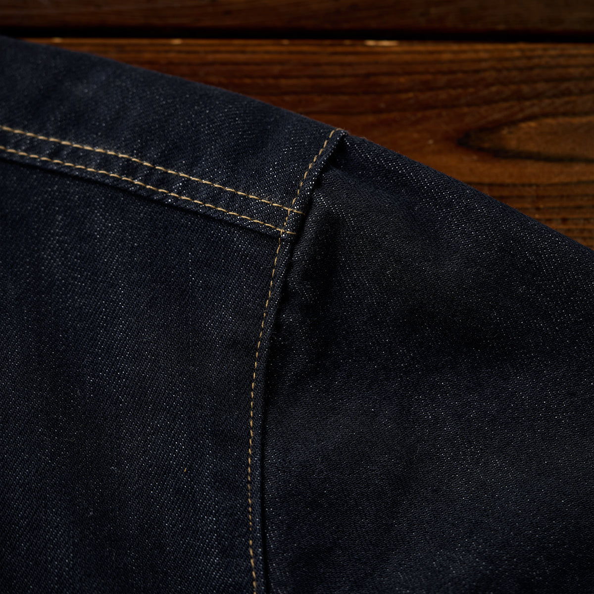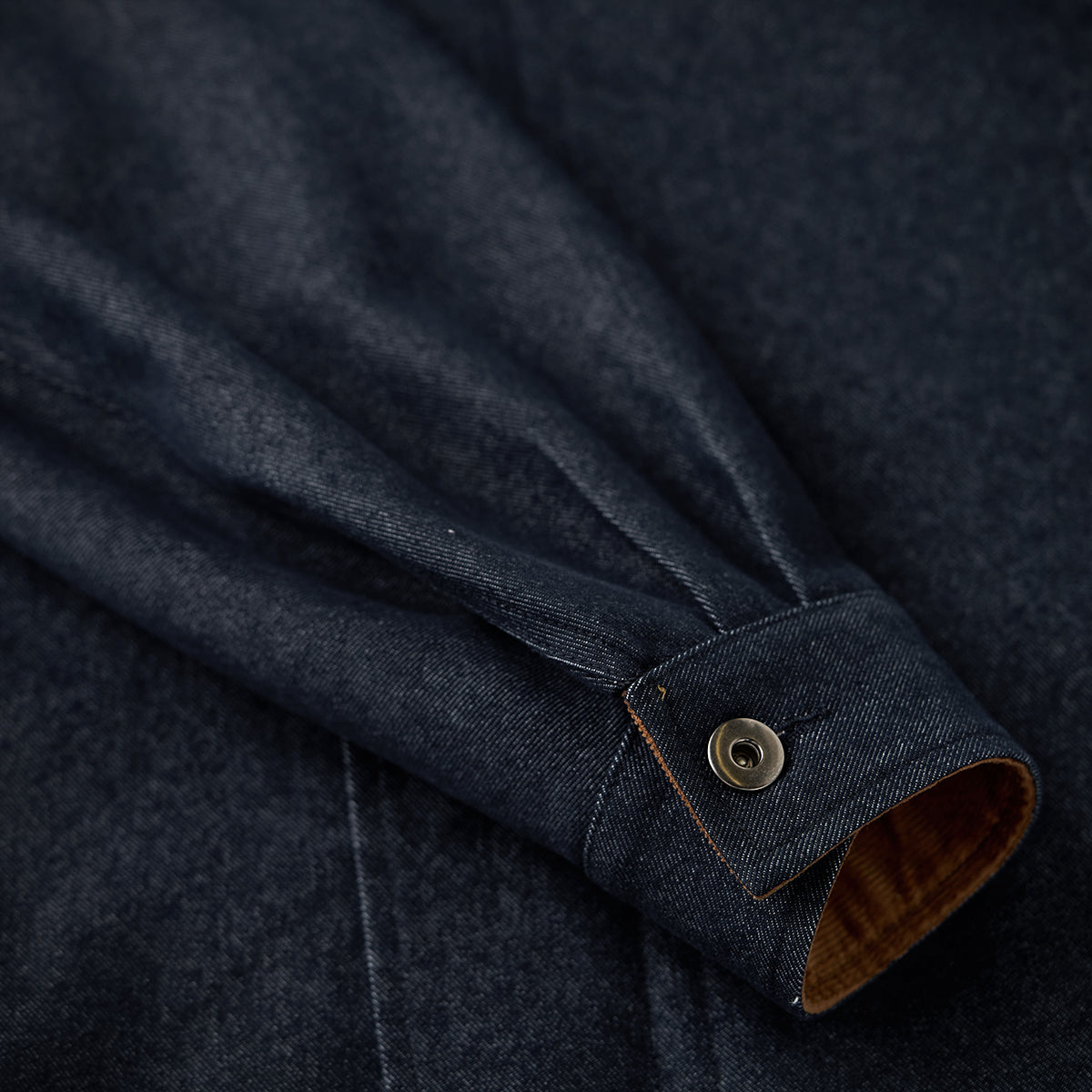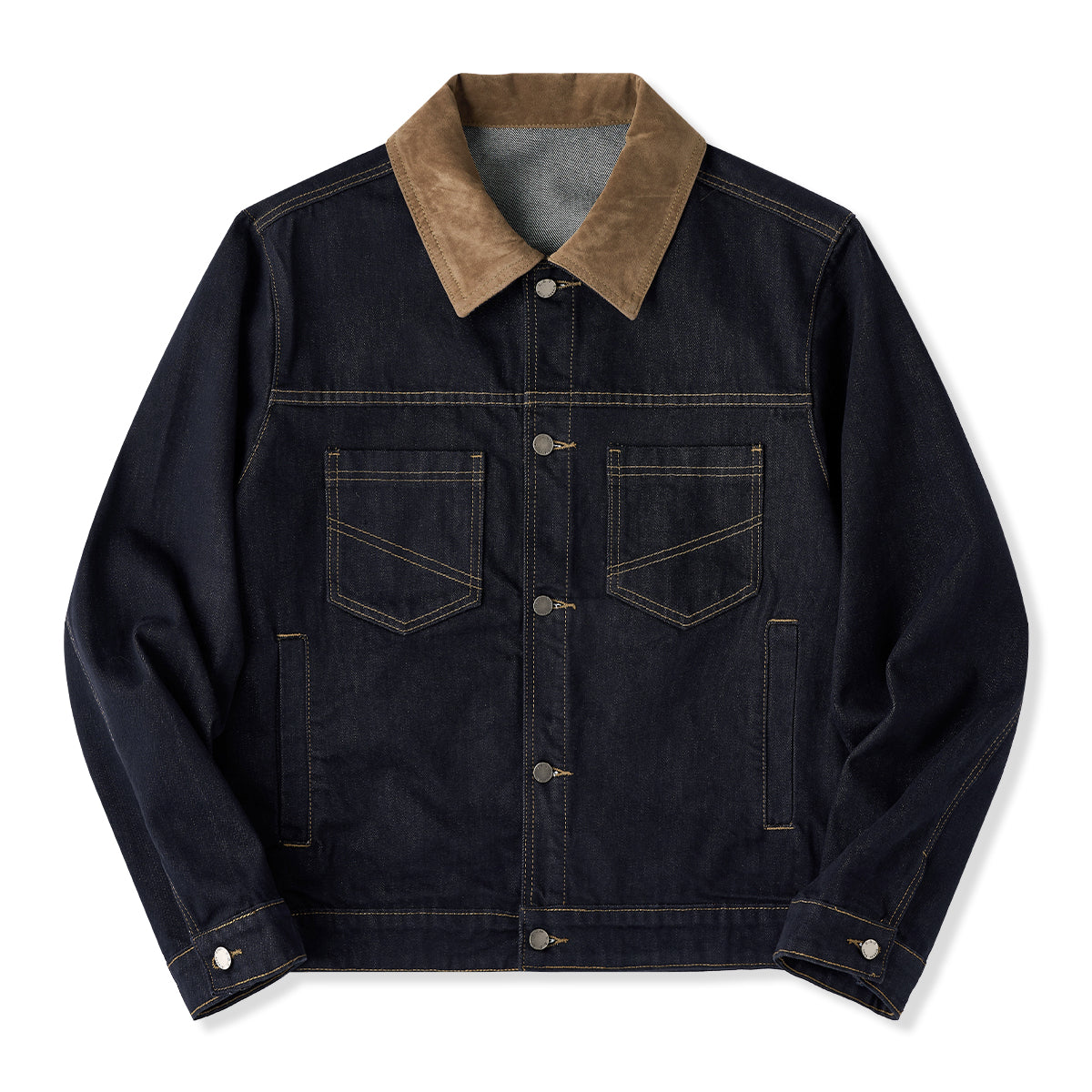 襟・異素材切り替え ワンウォッシュデニムワークジャケット