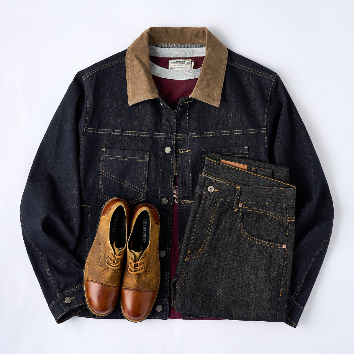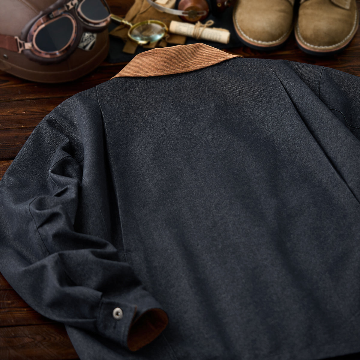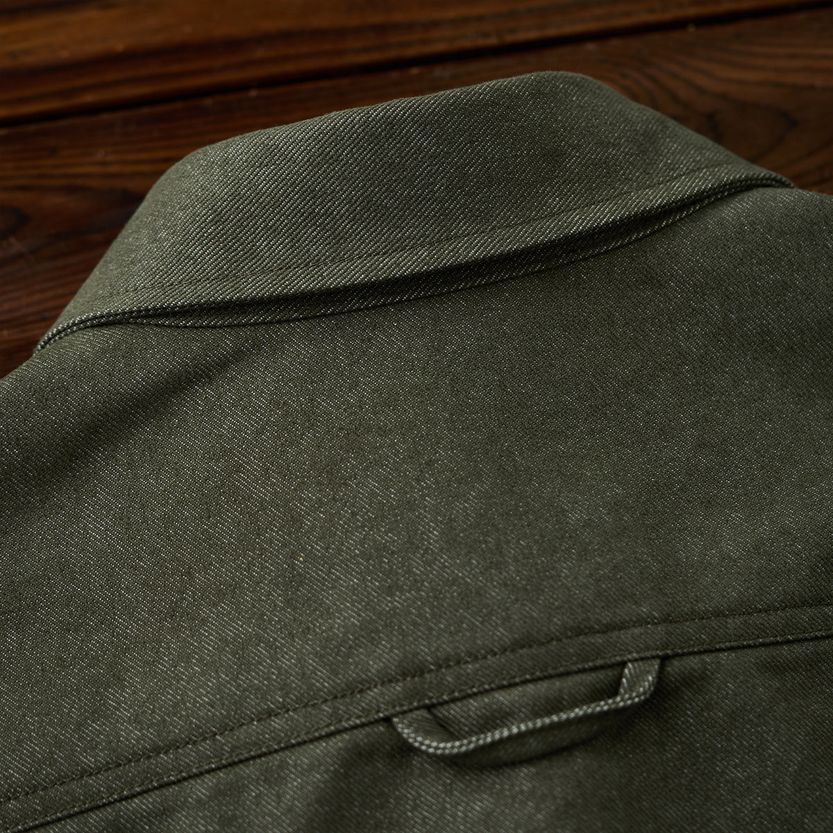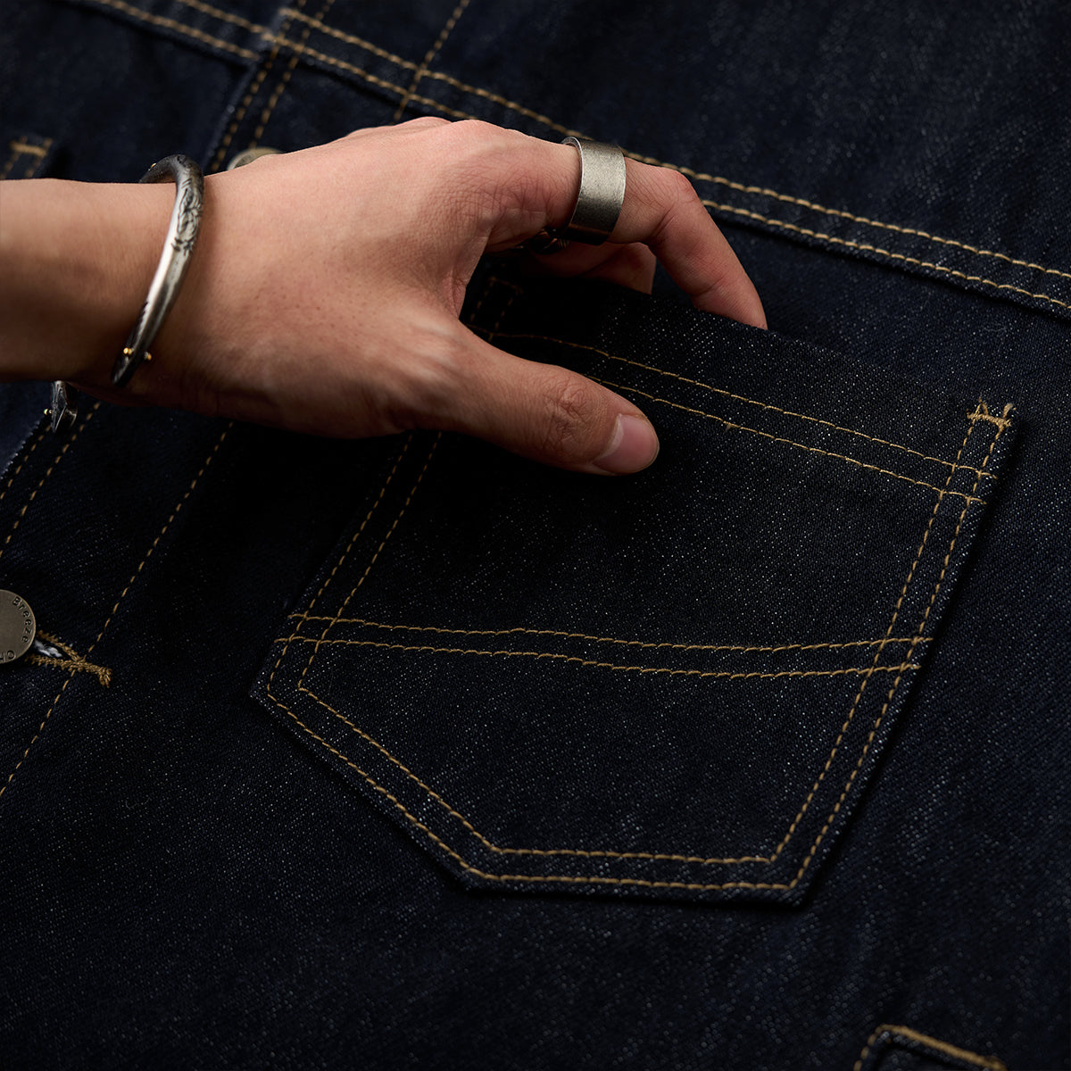 襟・異素材切り替え ワンウォッシュデニムワークジャケット