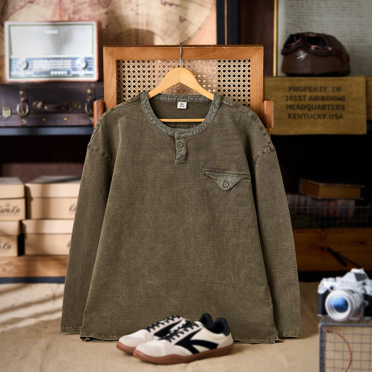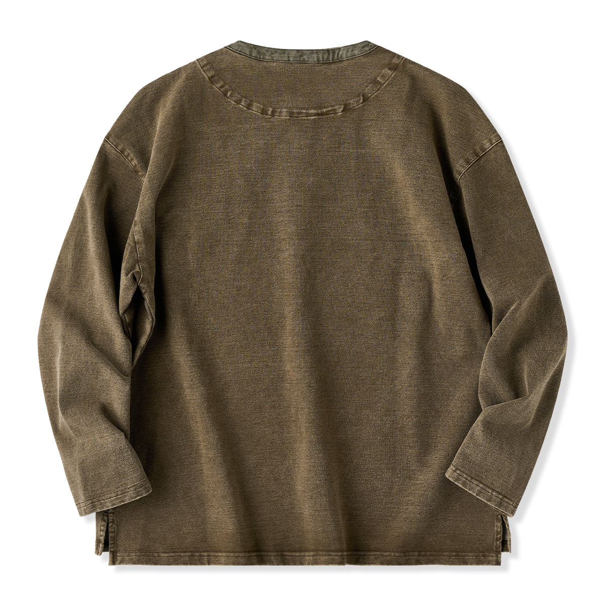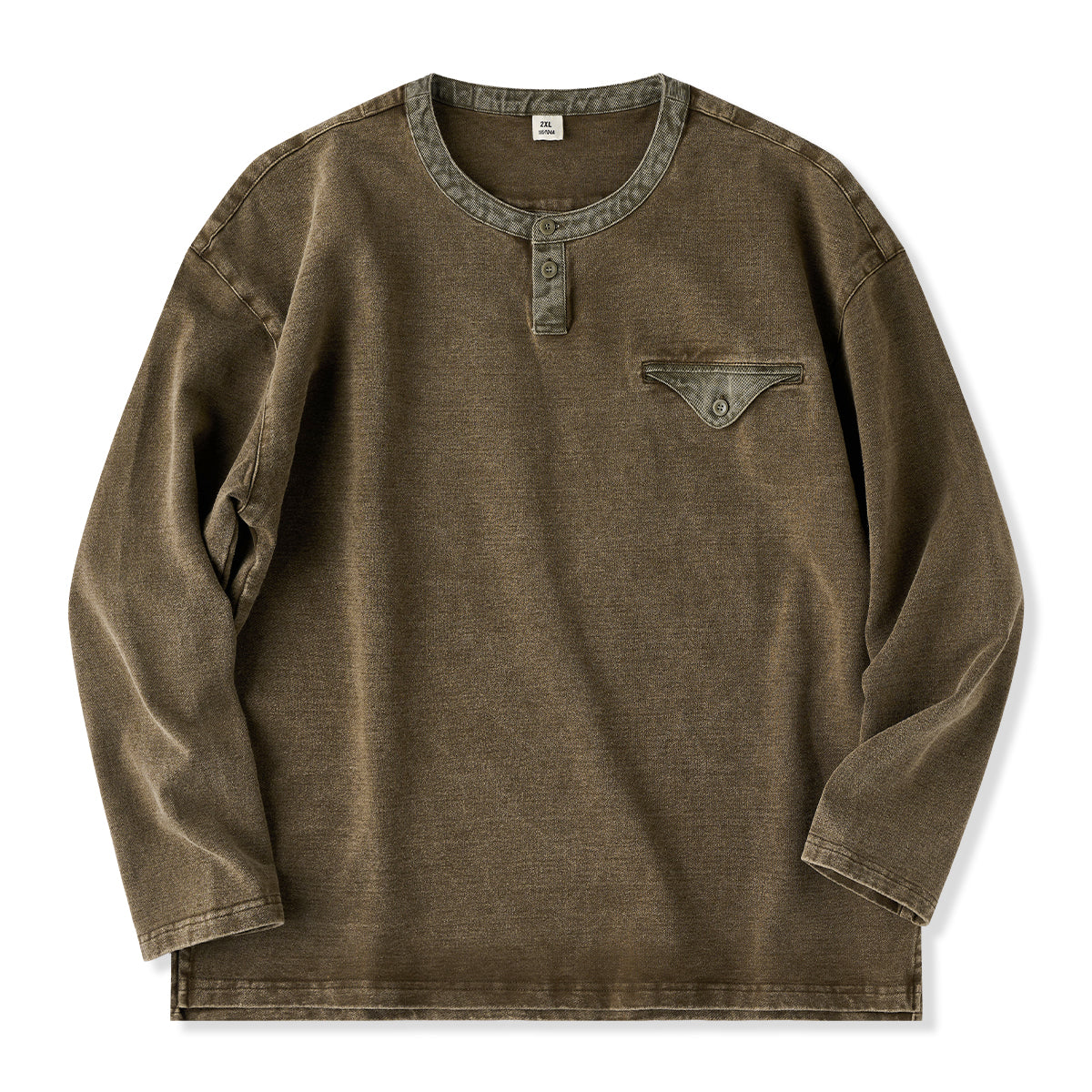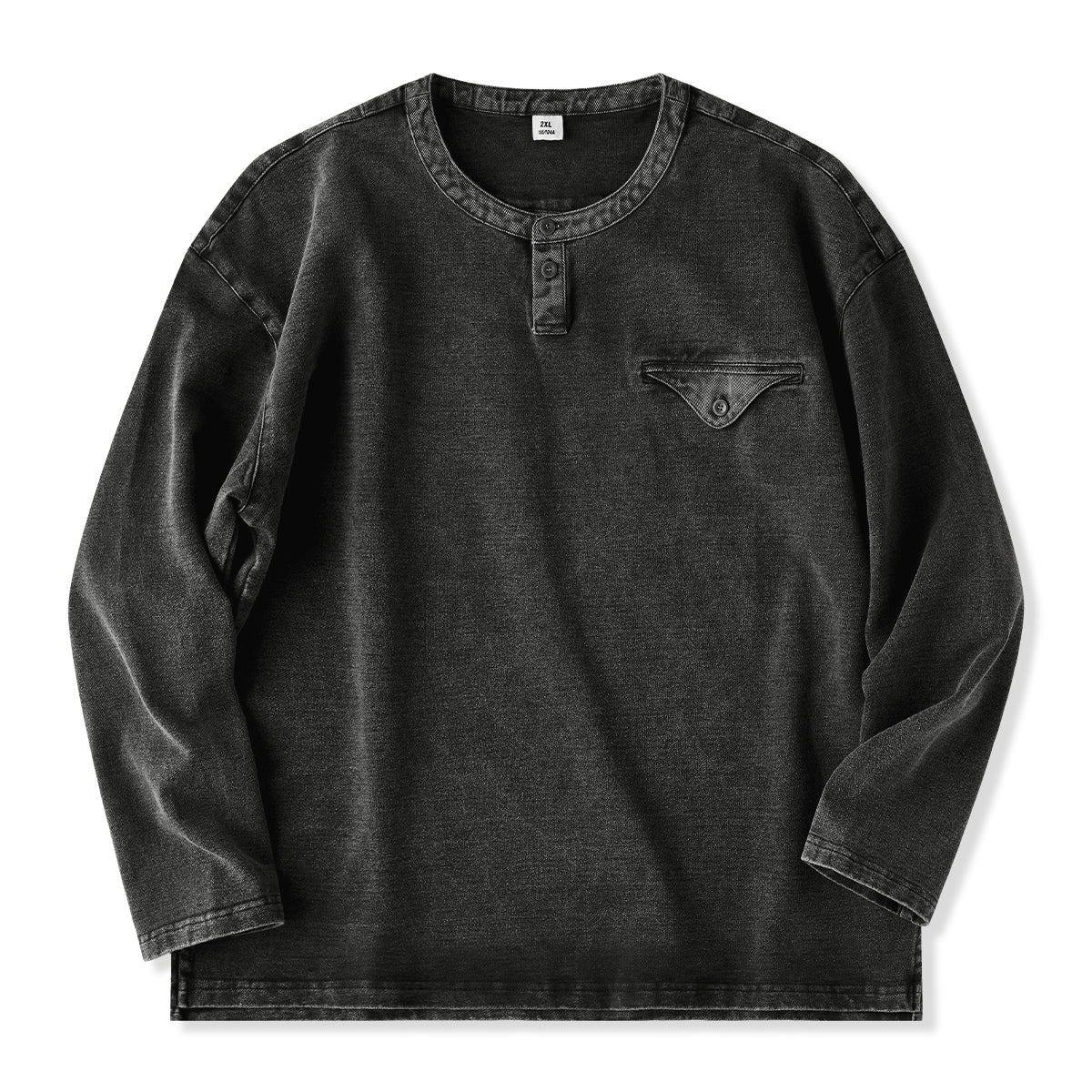 2色展開 フェイクポケット付きヘンリーネックロンT