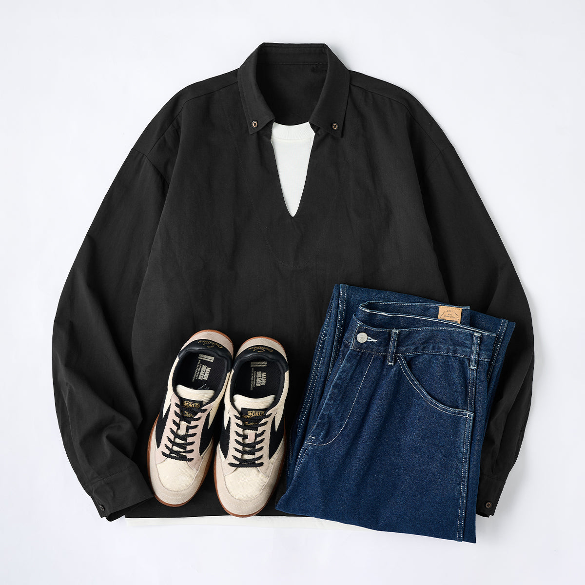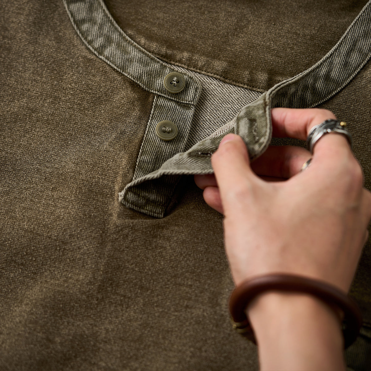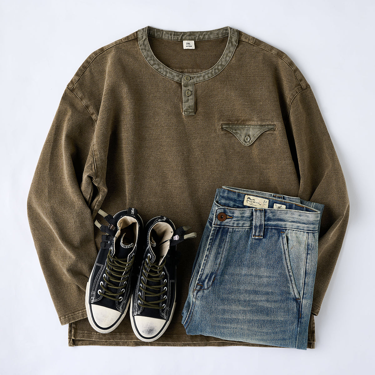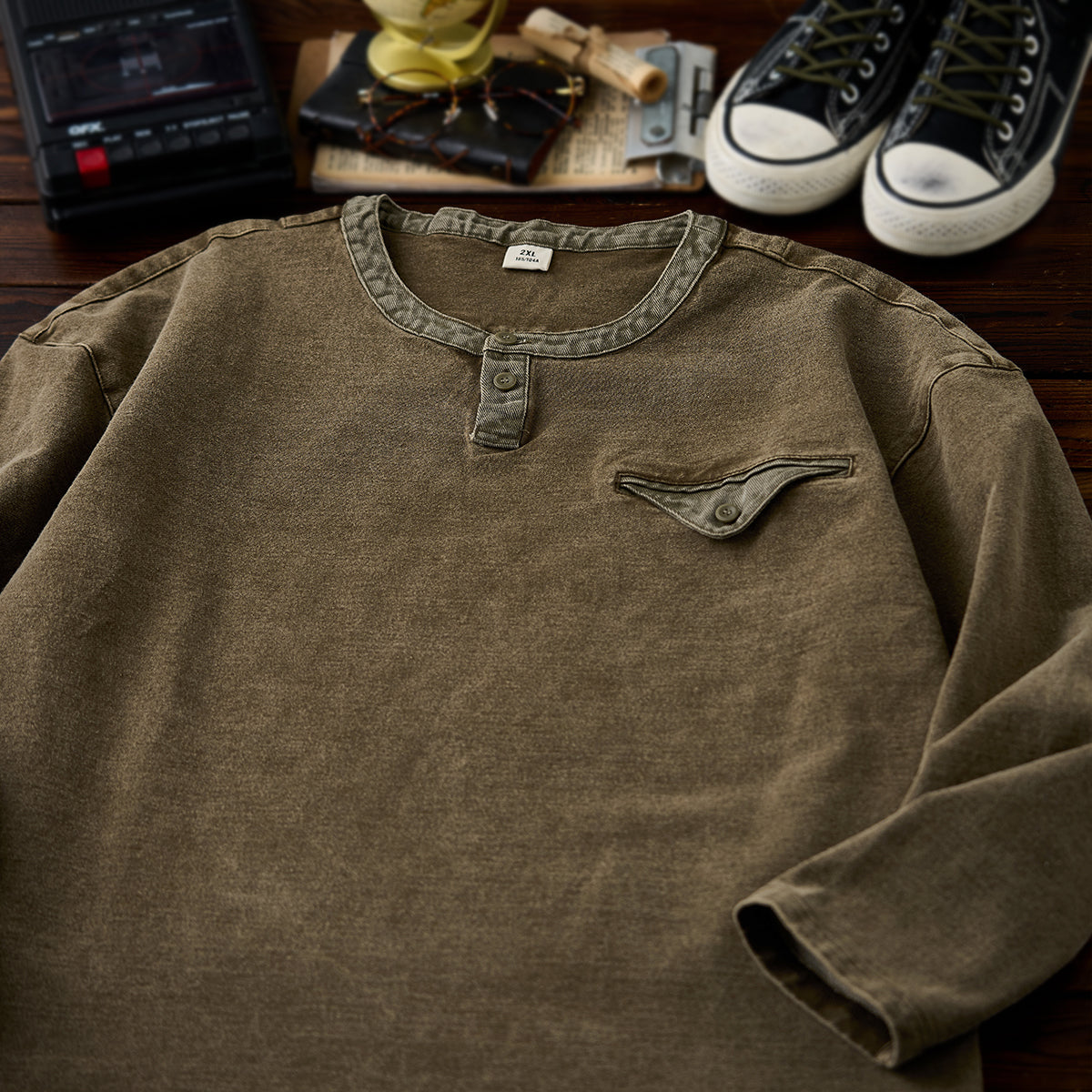 2色展開 フェイクポケット付きヘンリーネックロンT