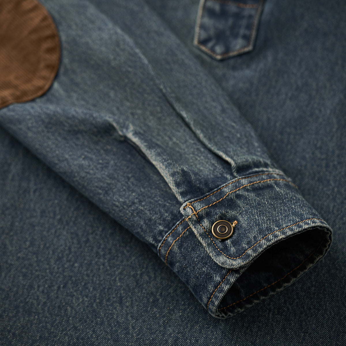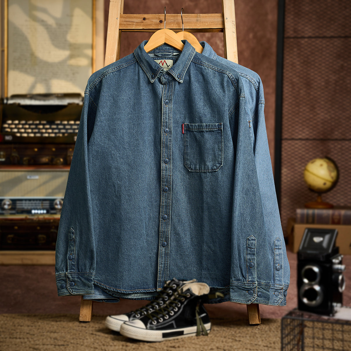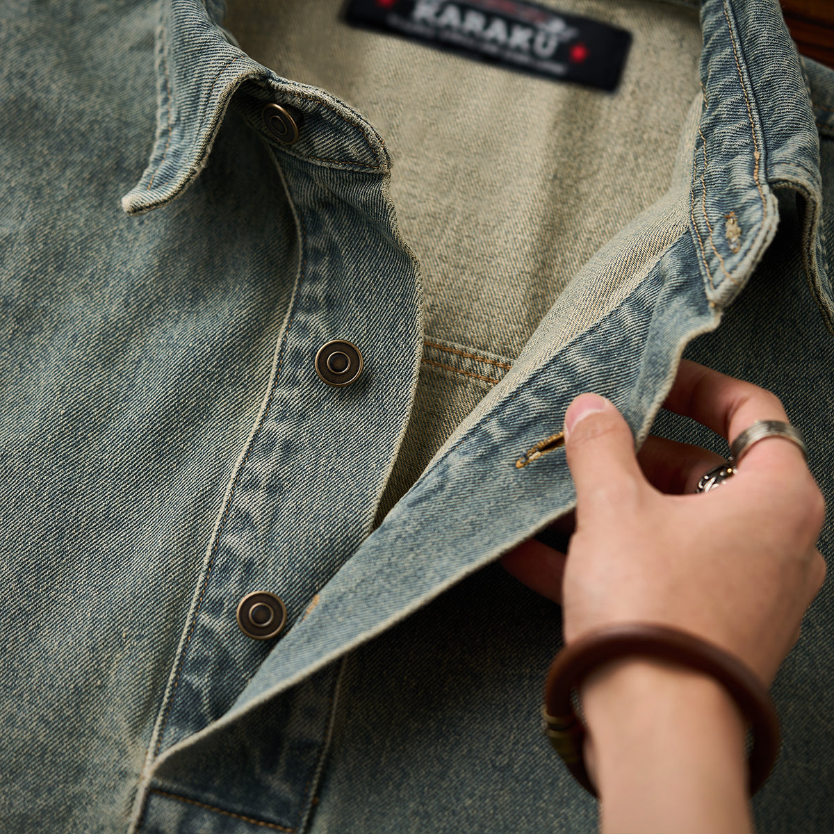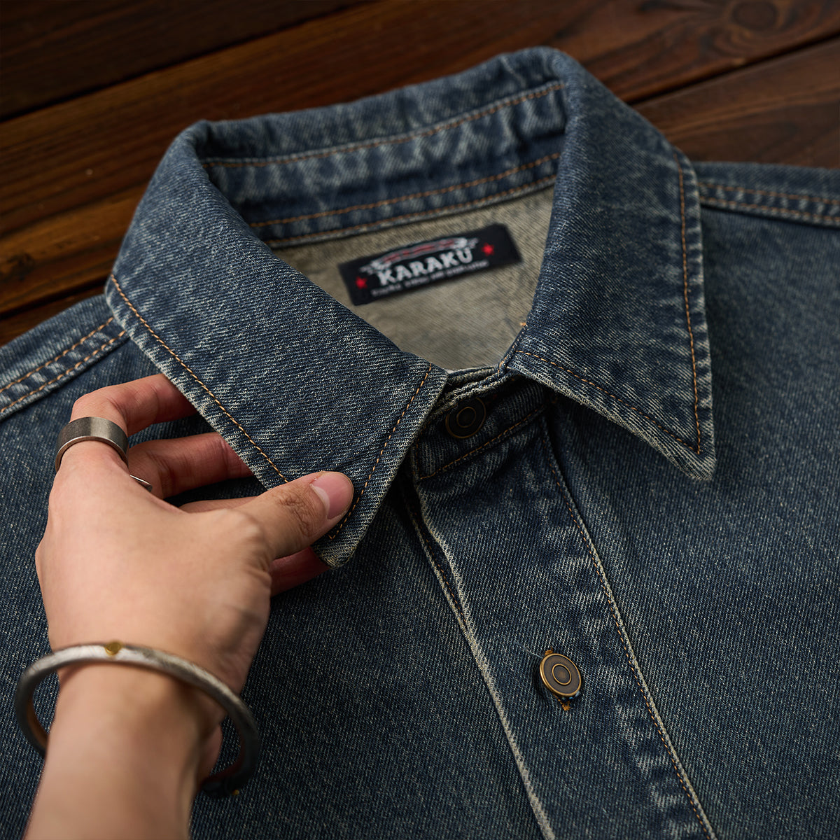 大容量ポケット ストーンウォッシュ加工デニムワークシャツ