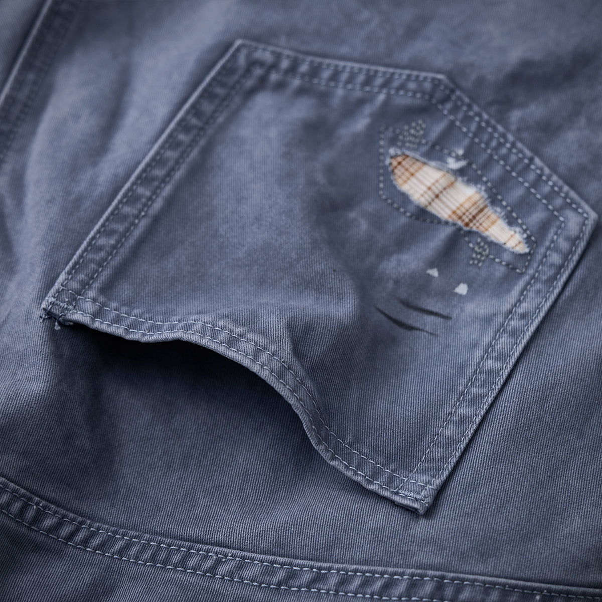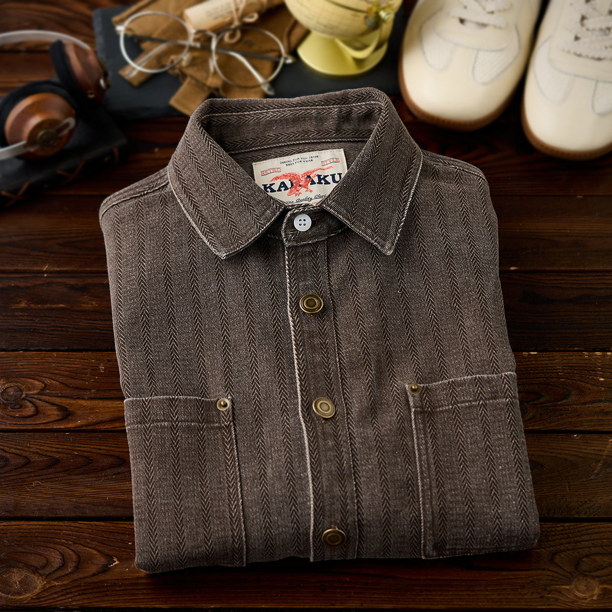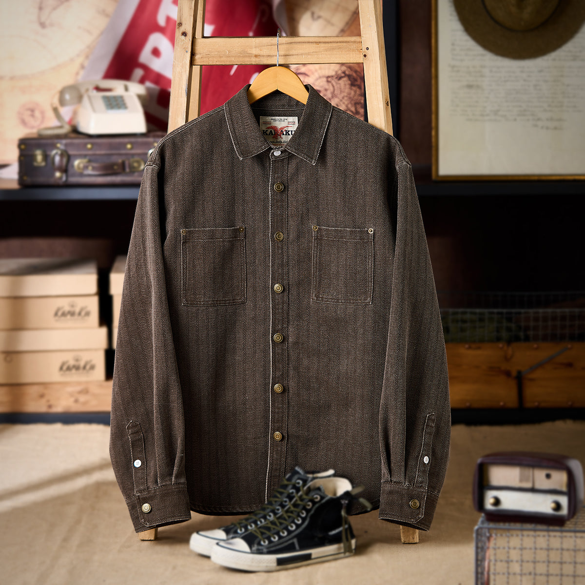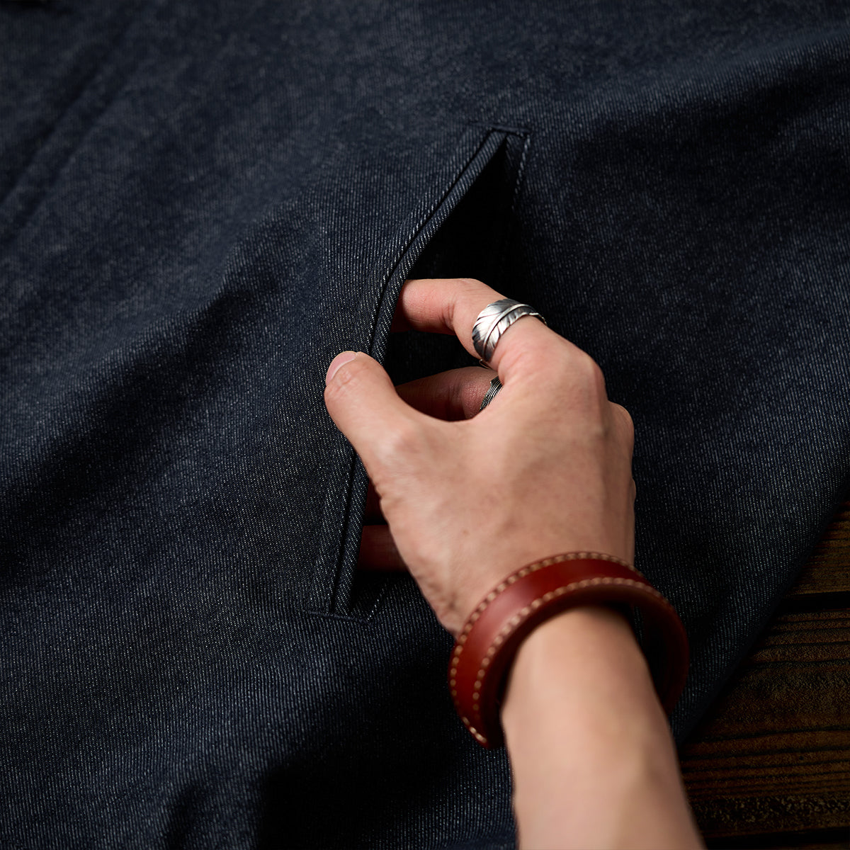 大容量ポケット ストーンウォッシュ加工デニムワークシャツ