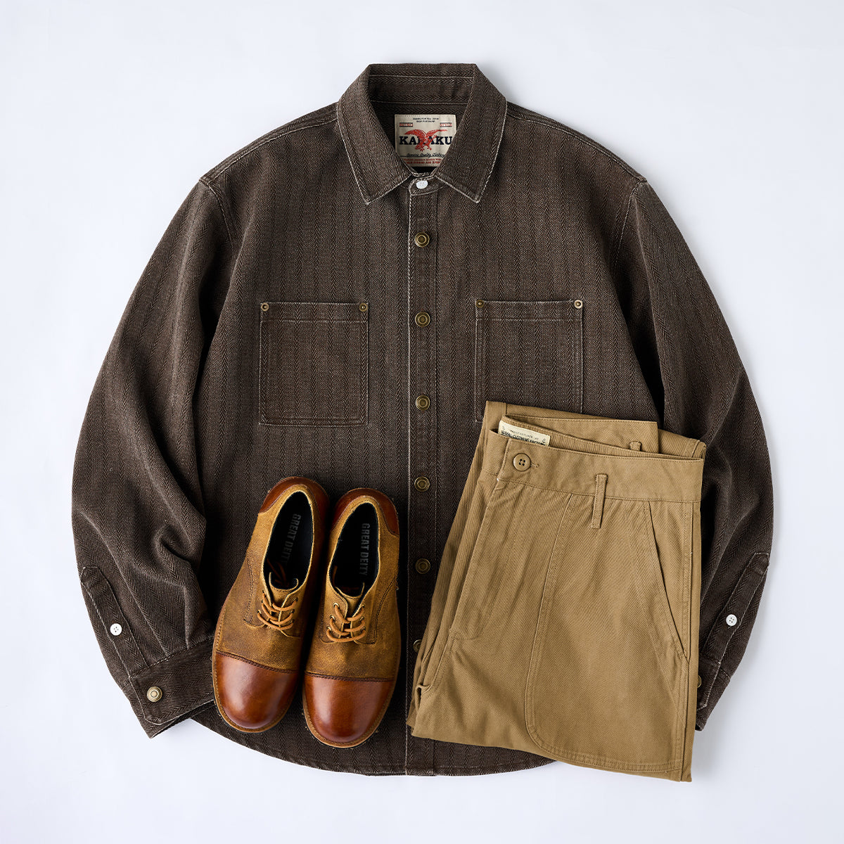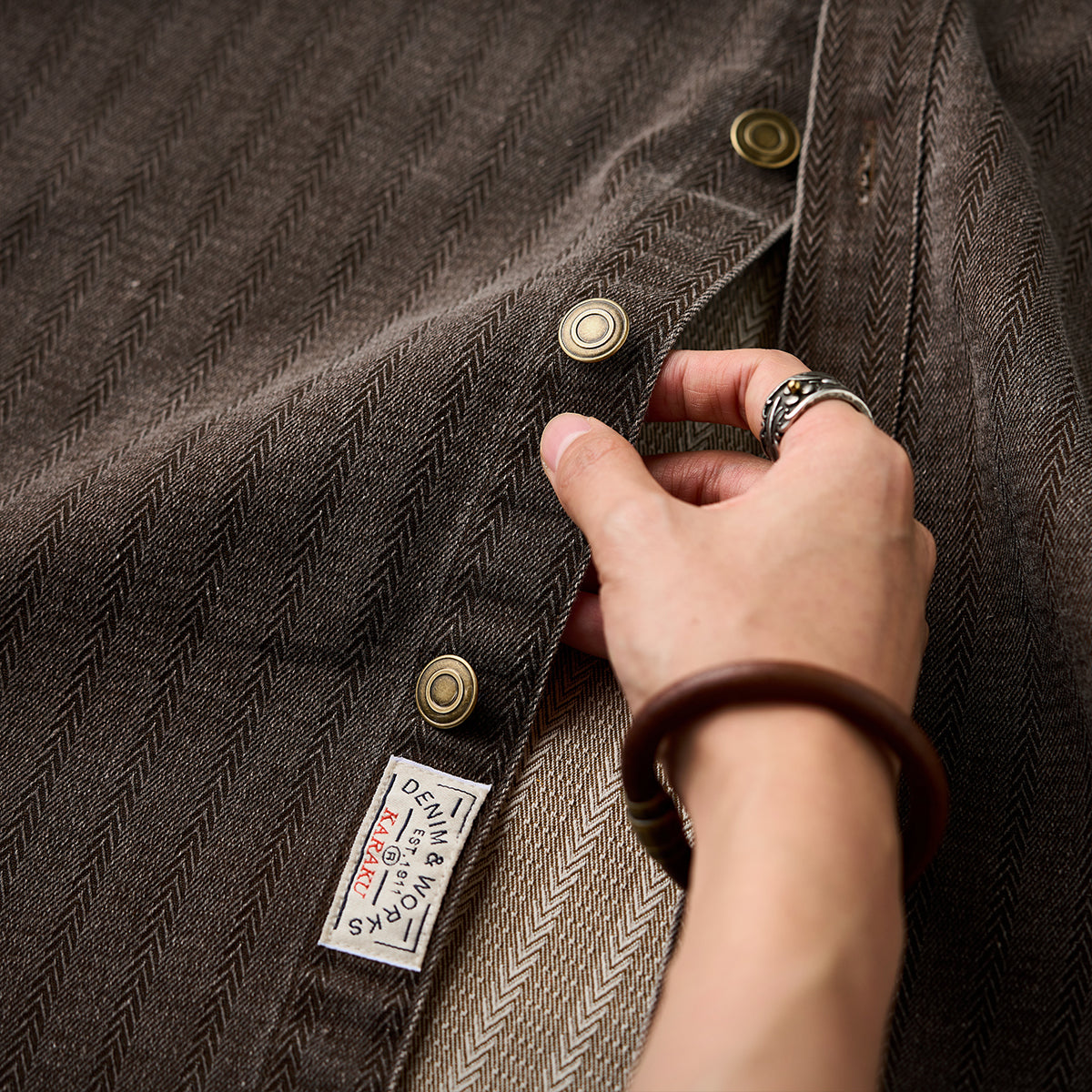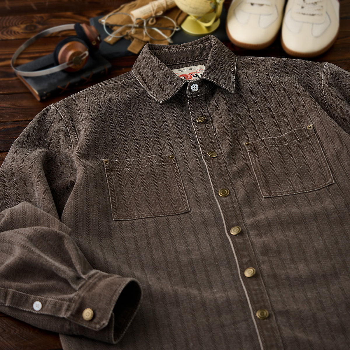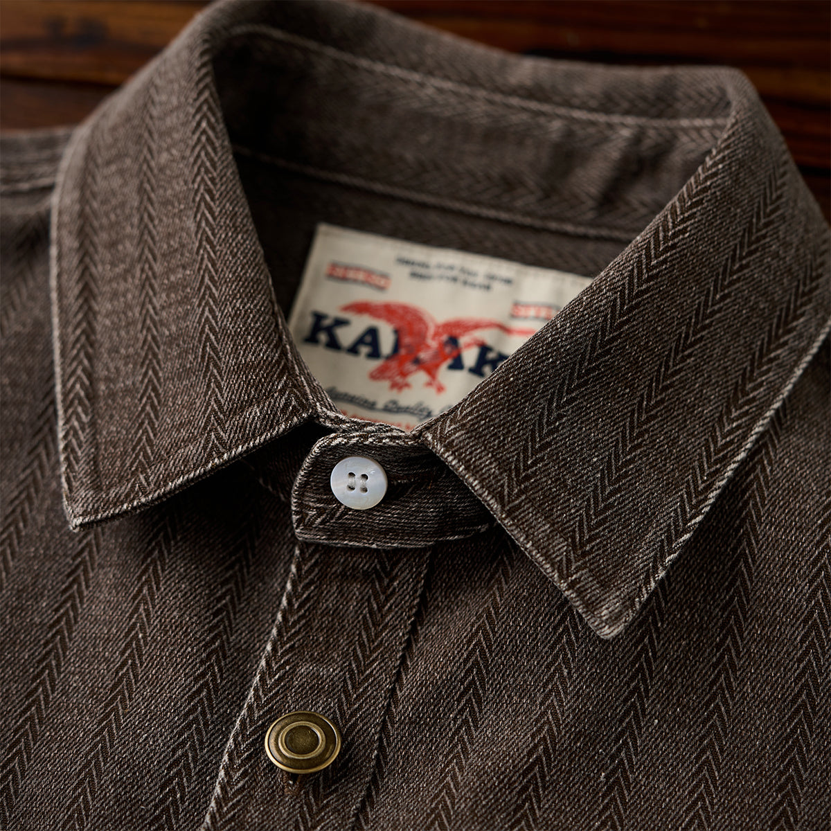 大容量ポケット ストーンウォッシュ加工デニムワークシャツ