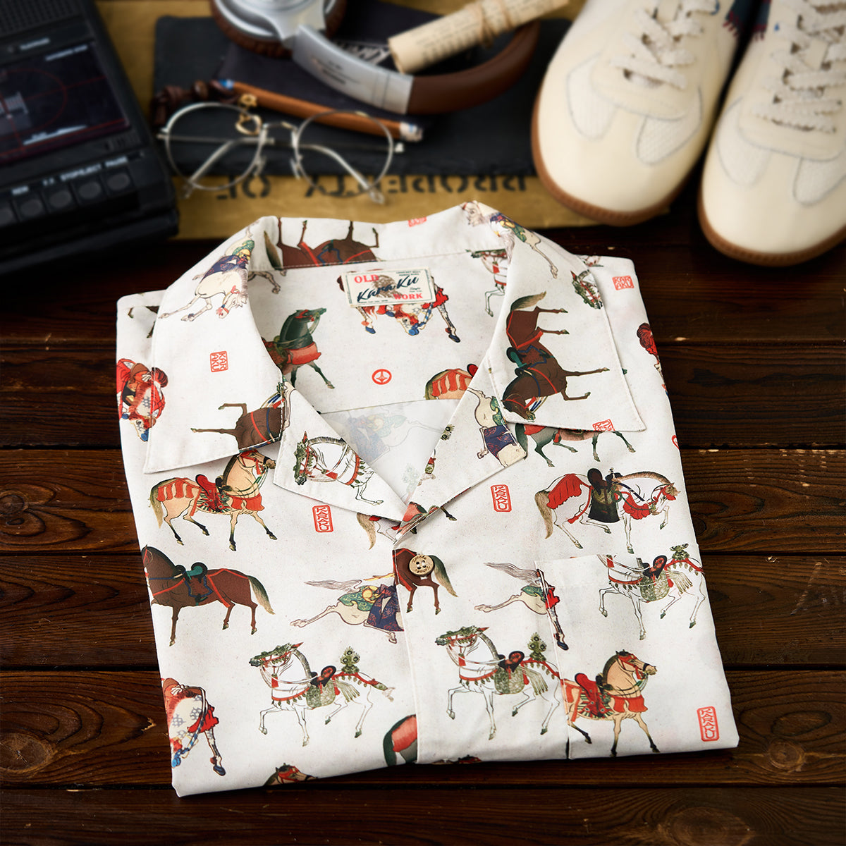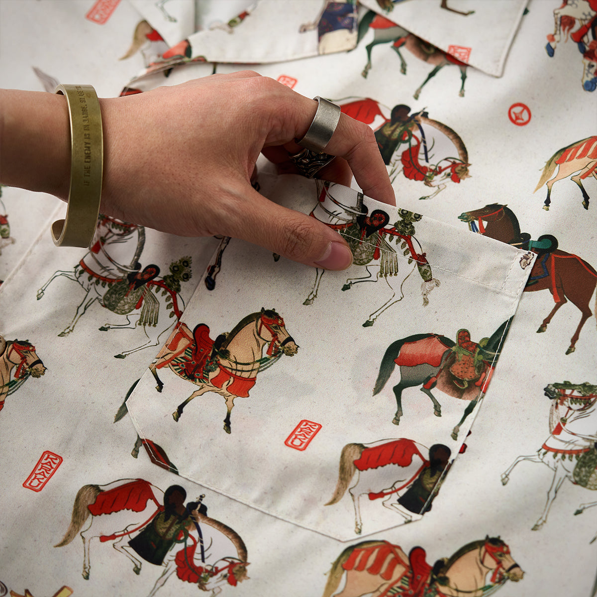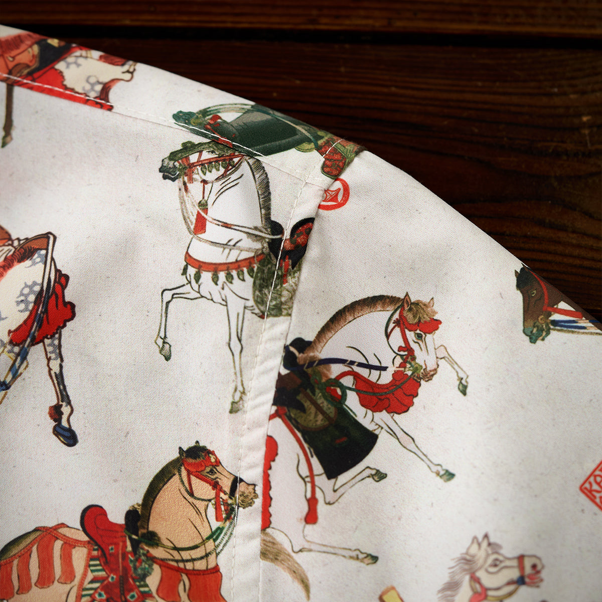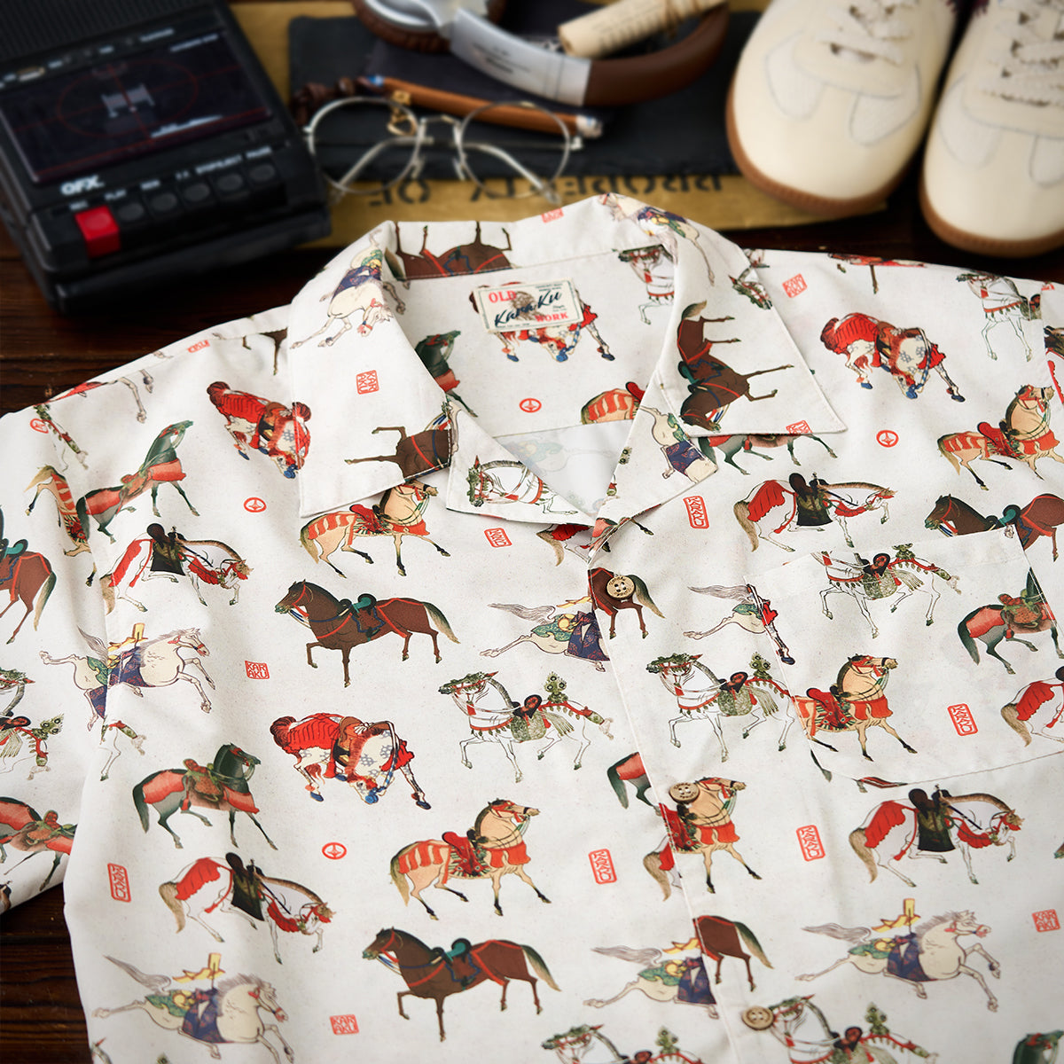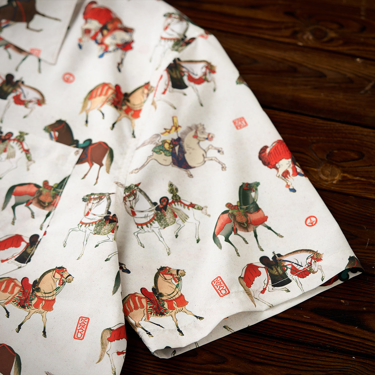 【予約】「武将の馬」総柄 浮世絵風アロハシャツ