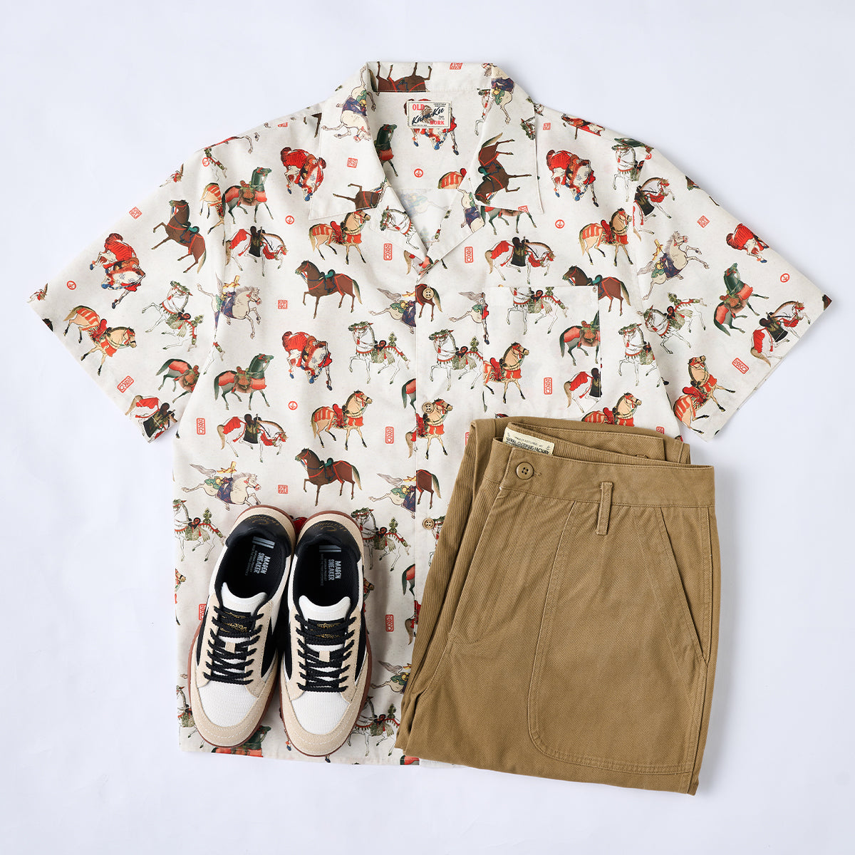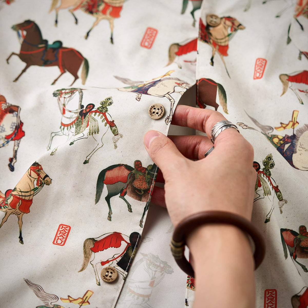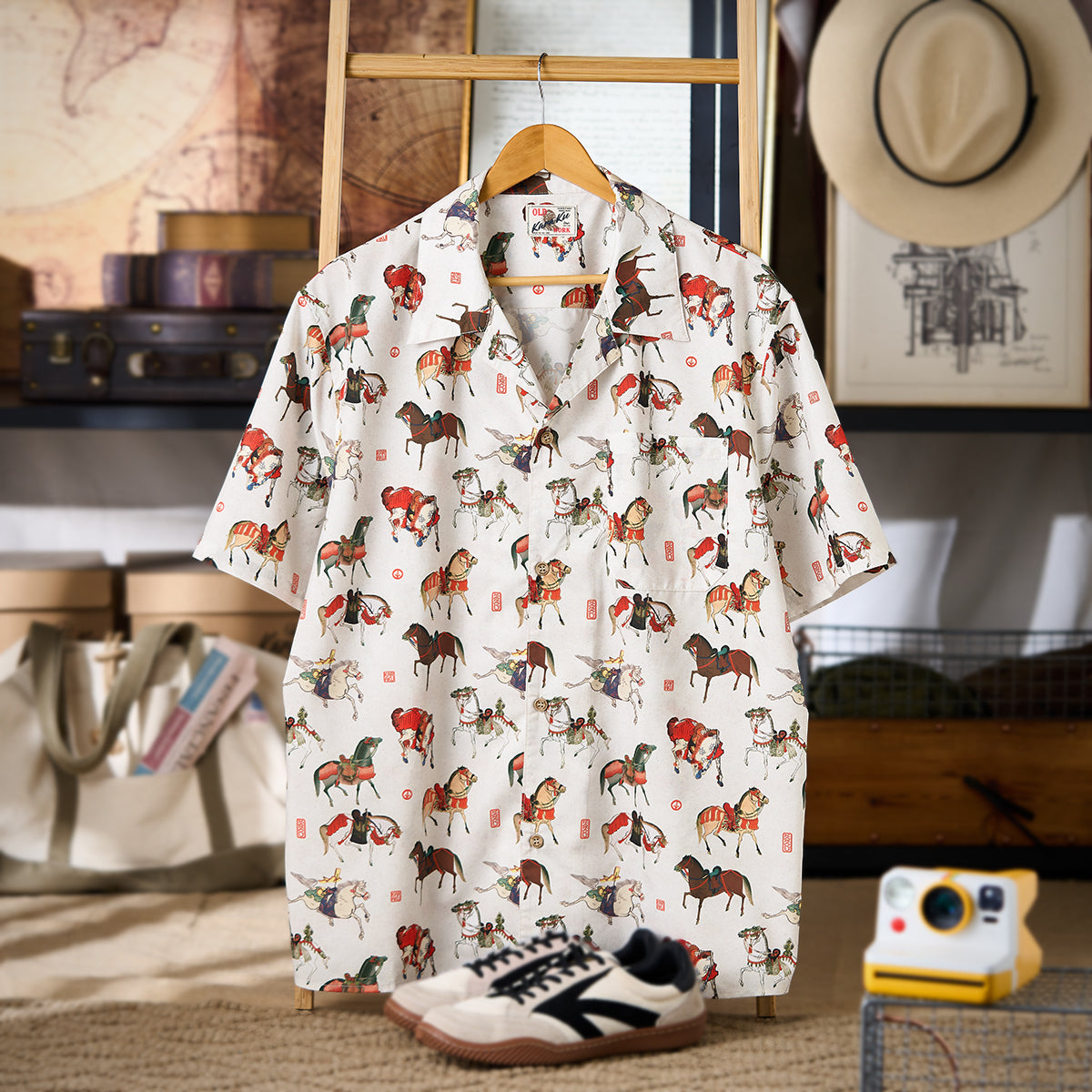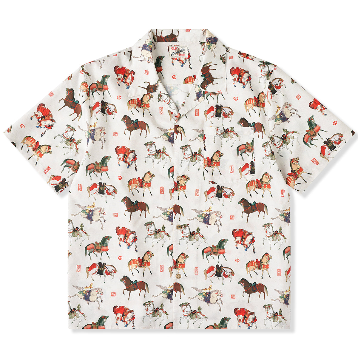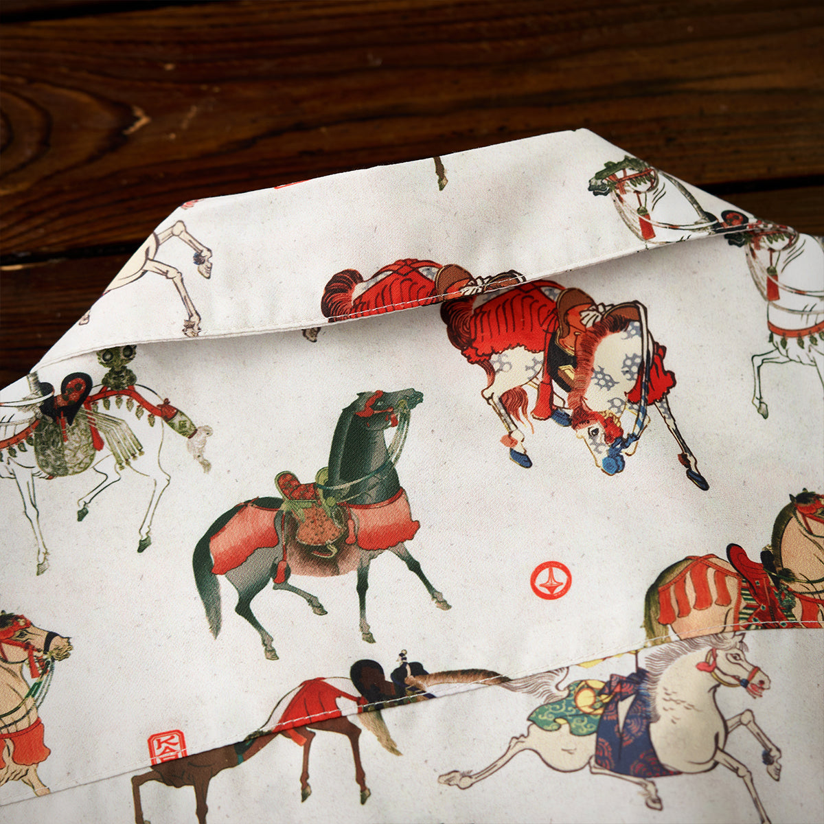 【予約】「武将の馬」総柄 浮世絵風アロハシャツ