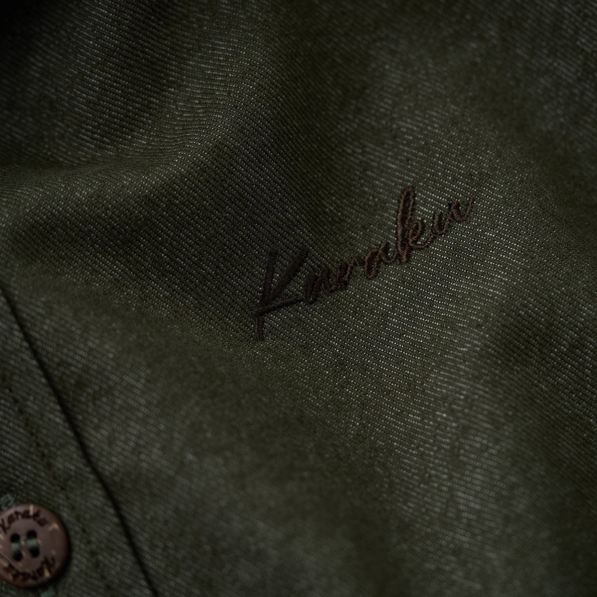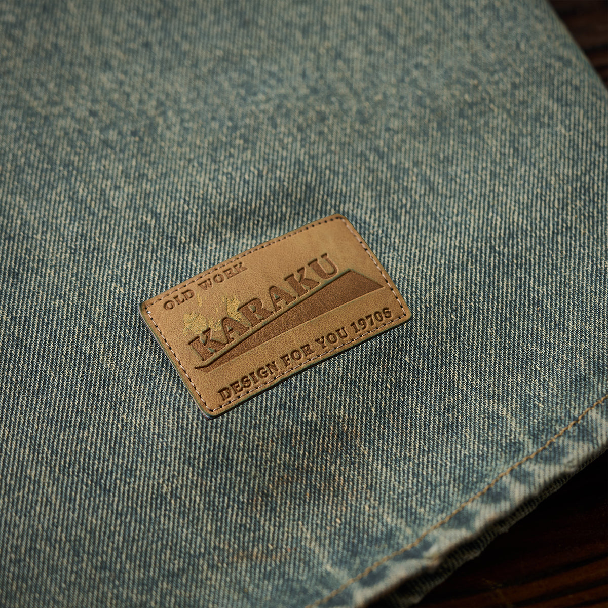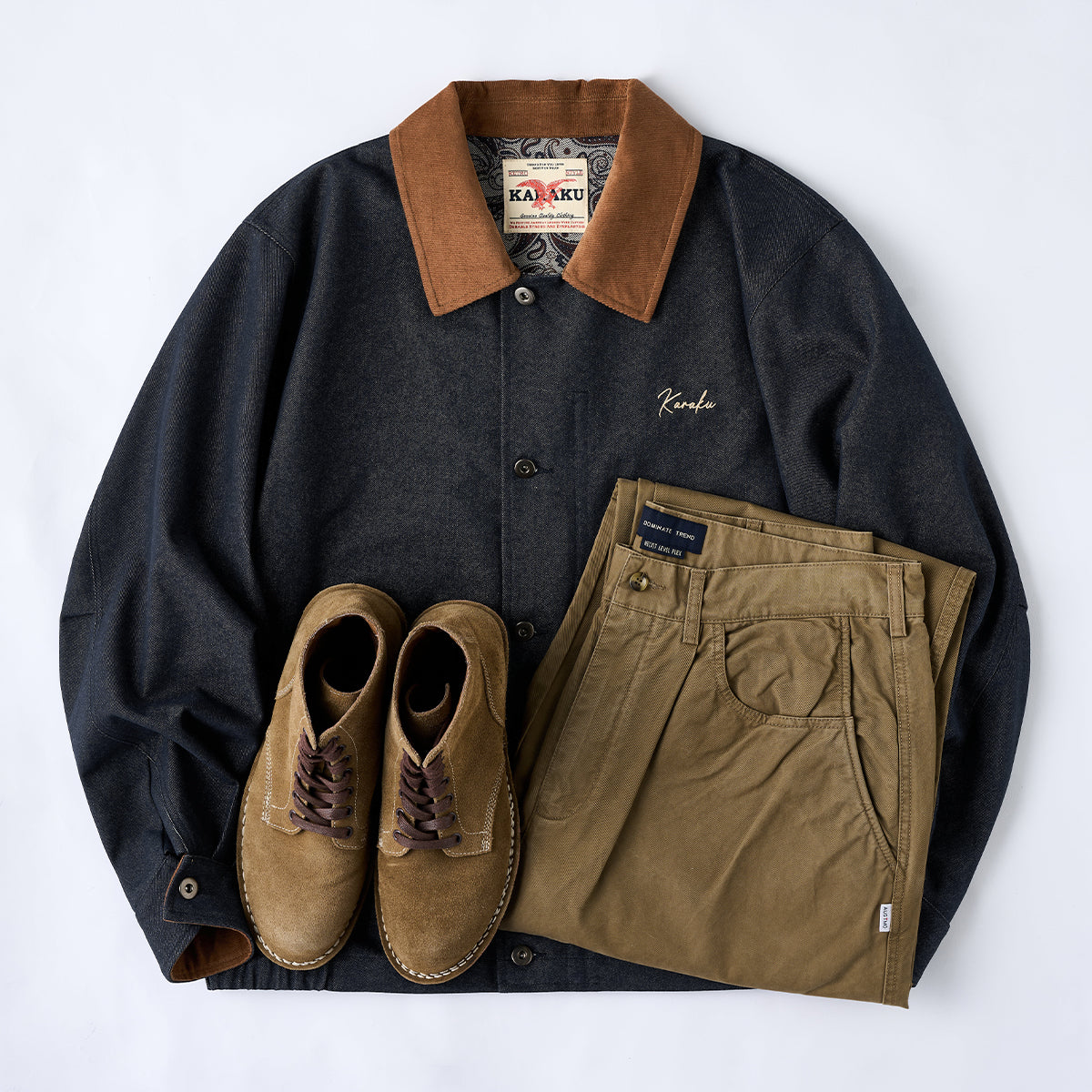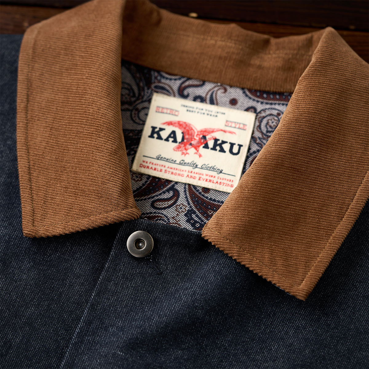 【予約】襟・袖裏コーデュロイ 「KaraKu」刺繡入り裏ペイズリー総柄デニムジャケット