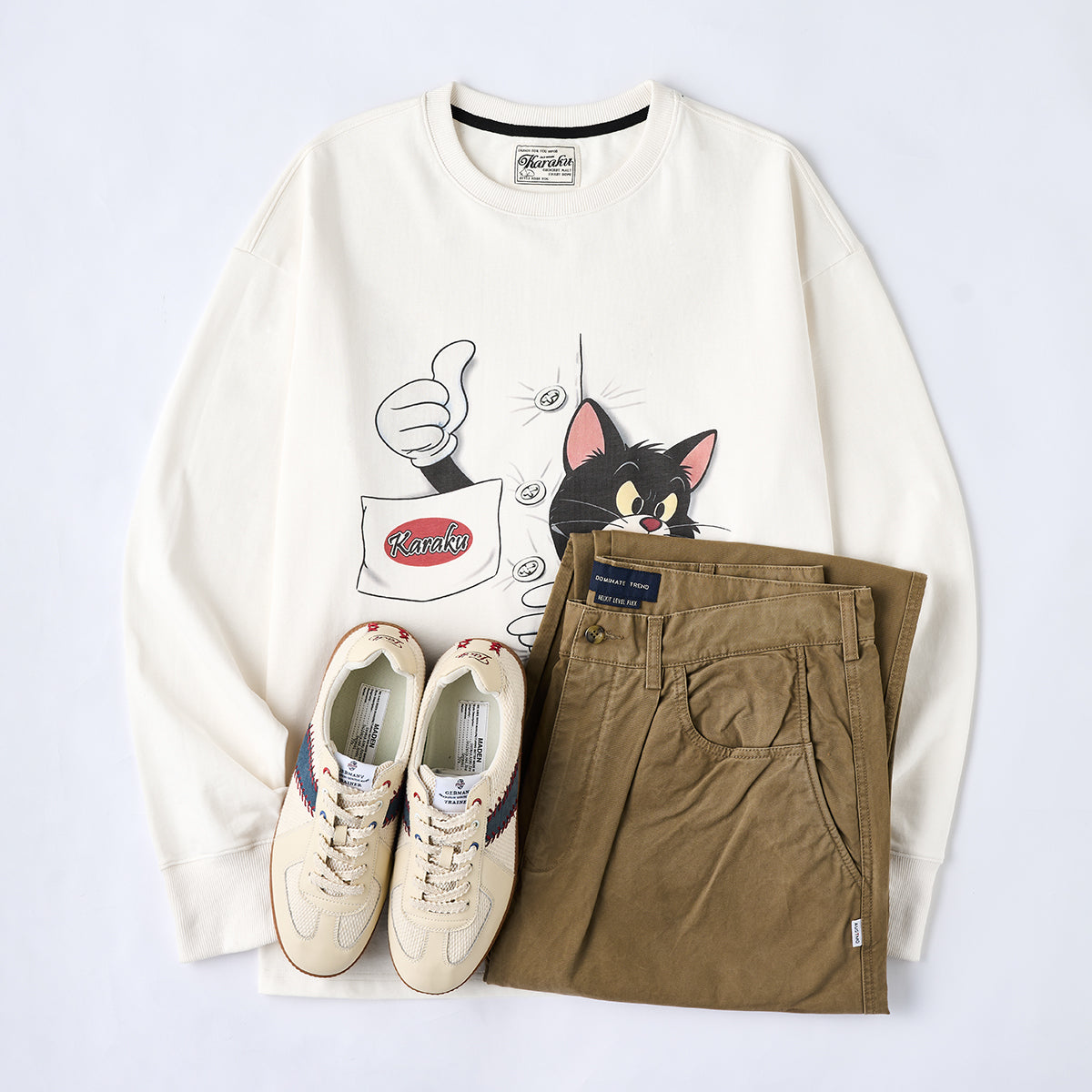 2色展開 フェイクレイヤード仕様ドロップショルダープルオーバースウェット