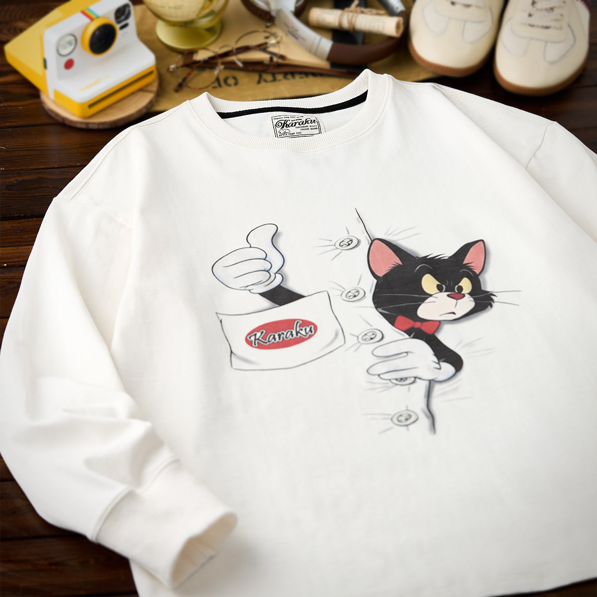 【予約】サイドシーム「化け猫」プリント入りコットン長袖シャツ
