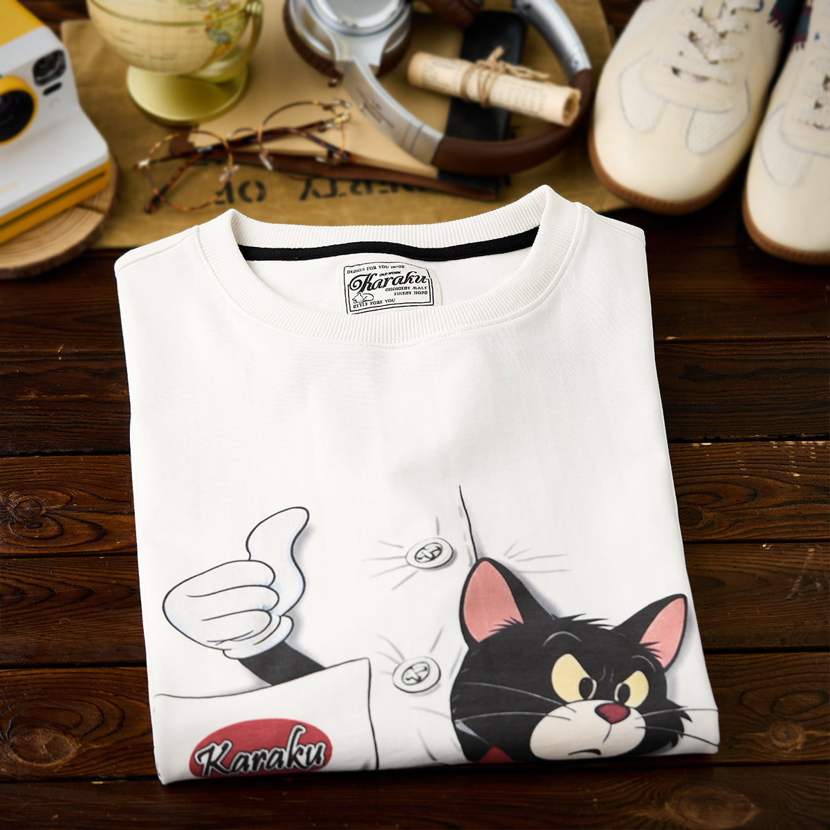 【予約】「Thumbs Up Cat」黒猫プリント入りコットンロングTee