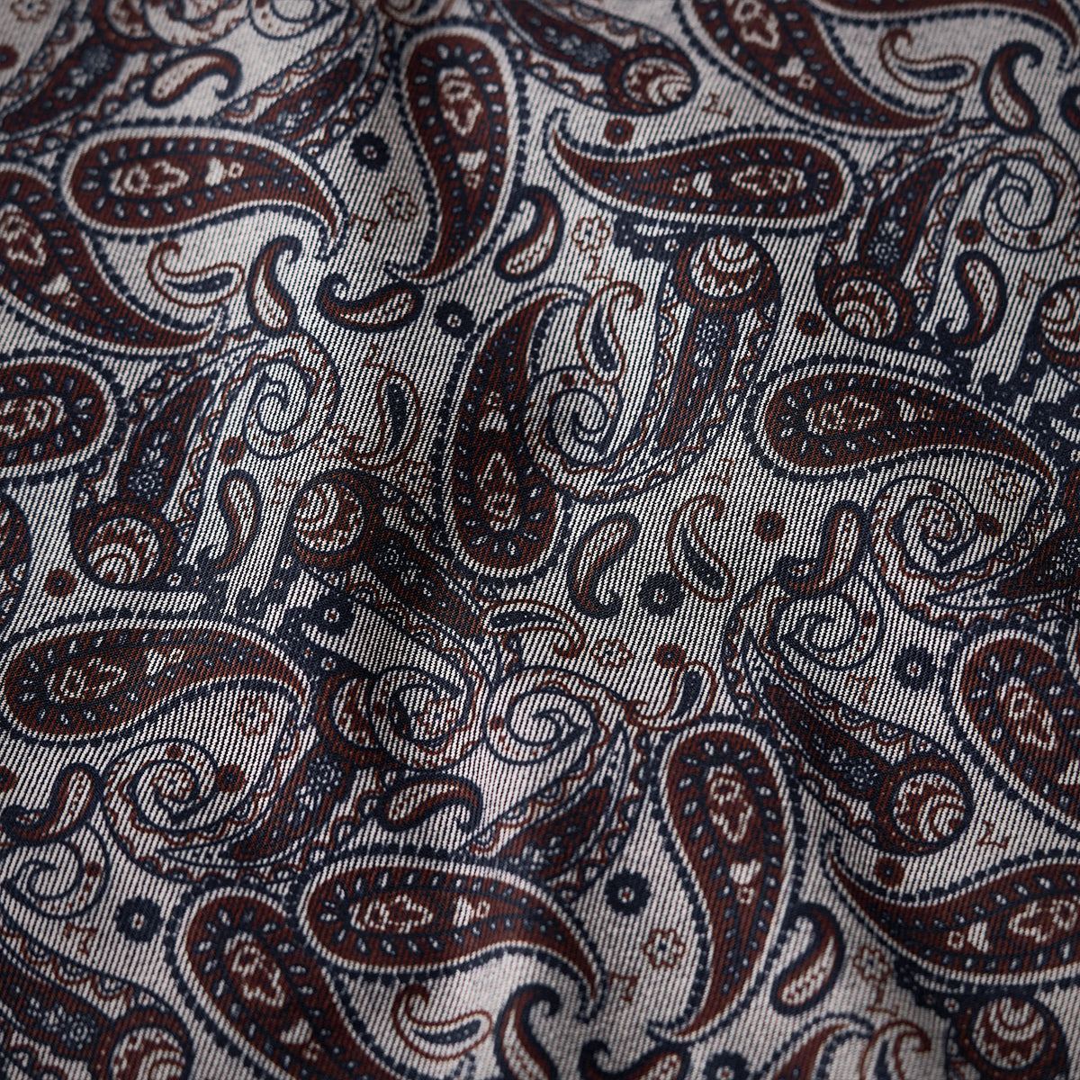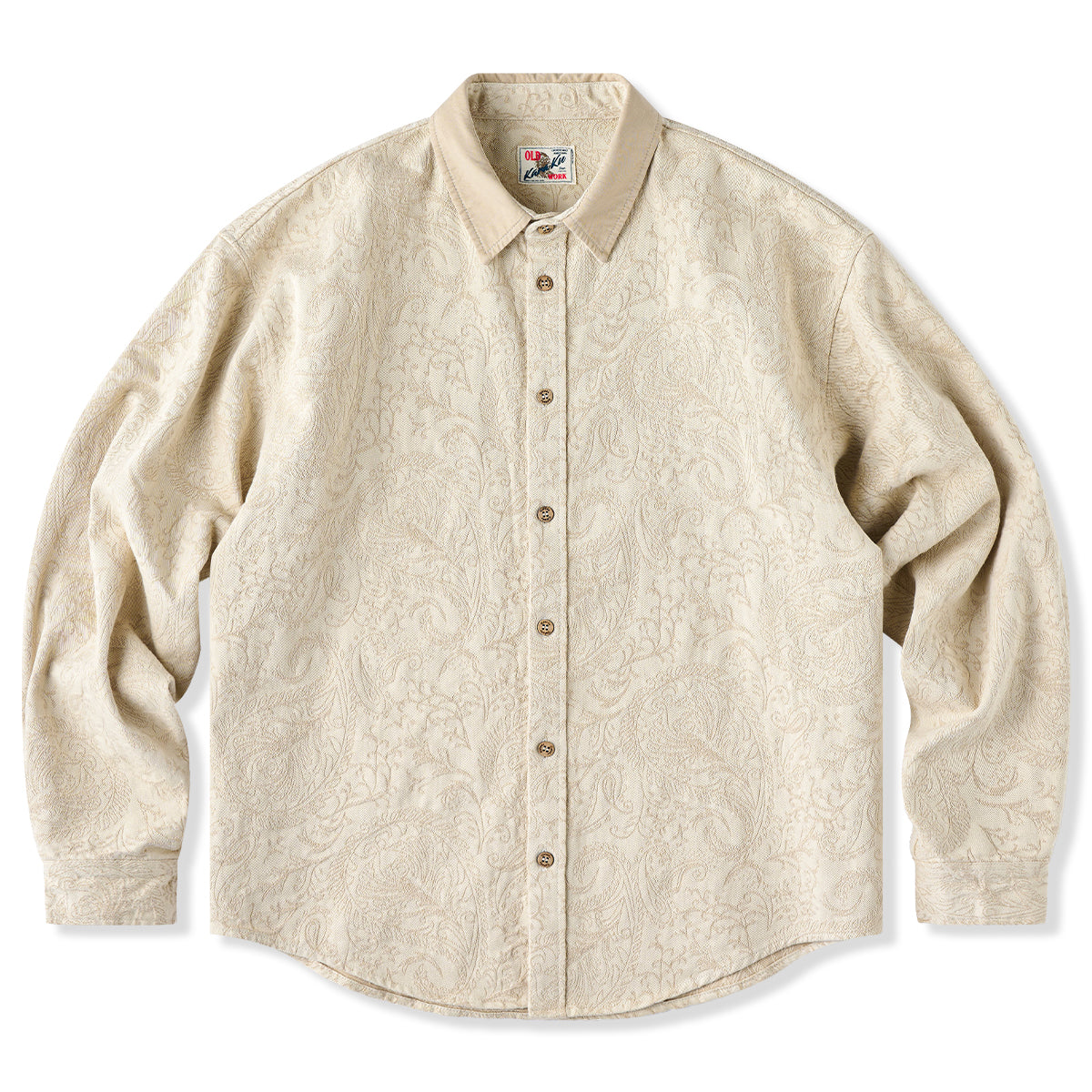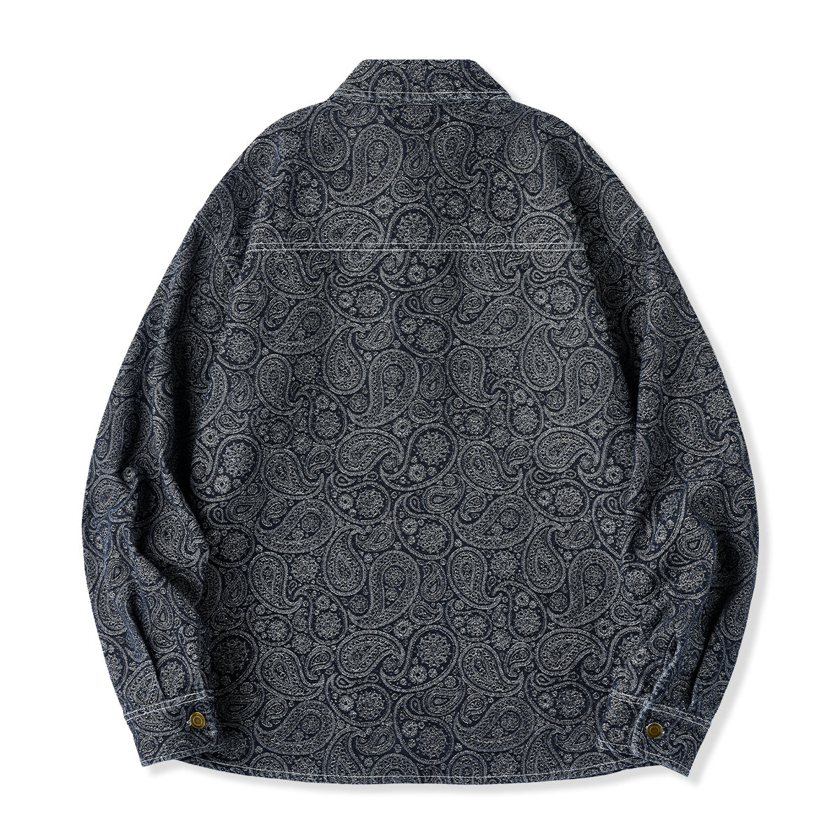 【予約】襟配色 ジャカードペイズリー総柄コットンデニムシャツ