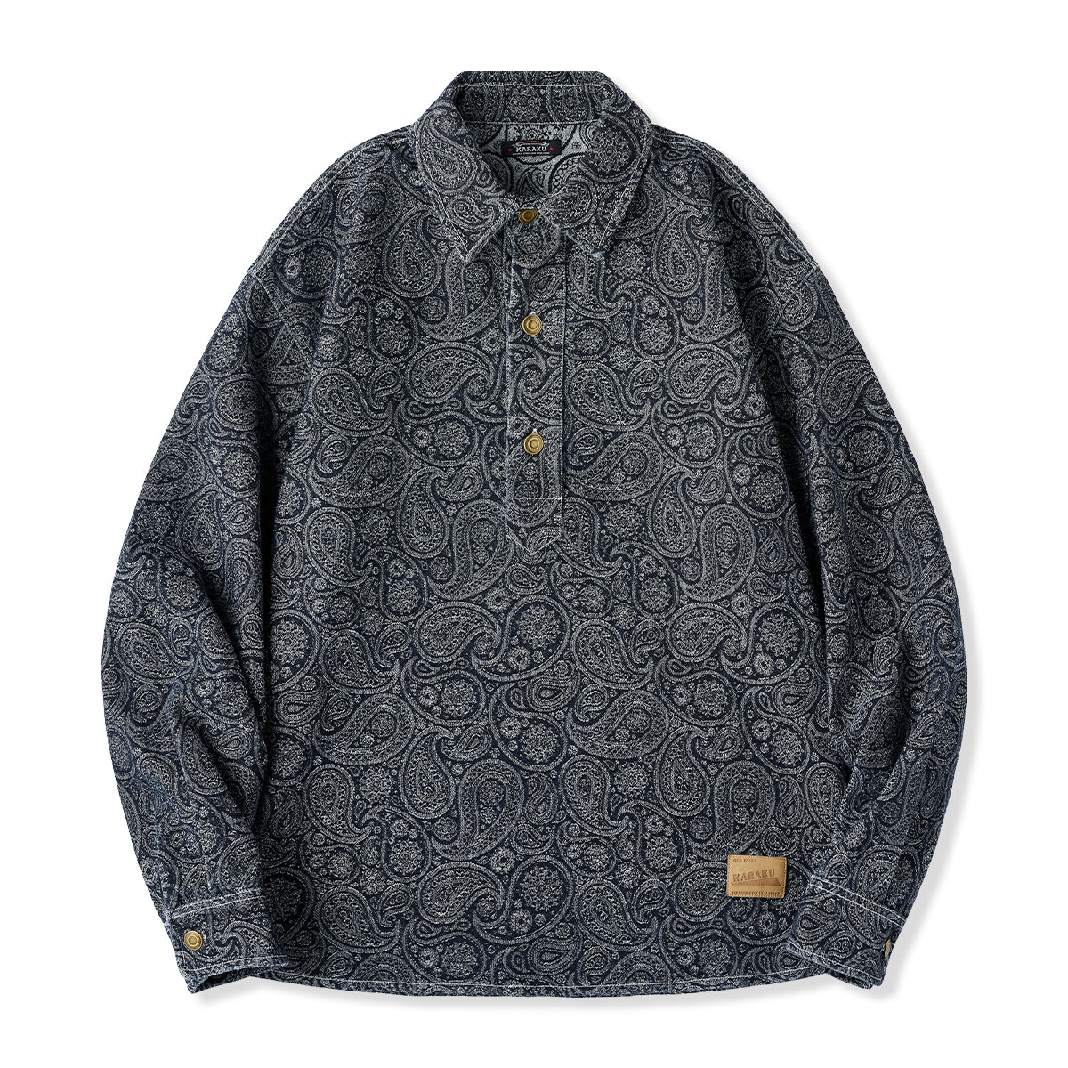 ペイズリー柄ジャカード織りデニム ハーフボタンデニムプルオーバーシャツ