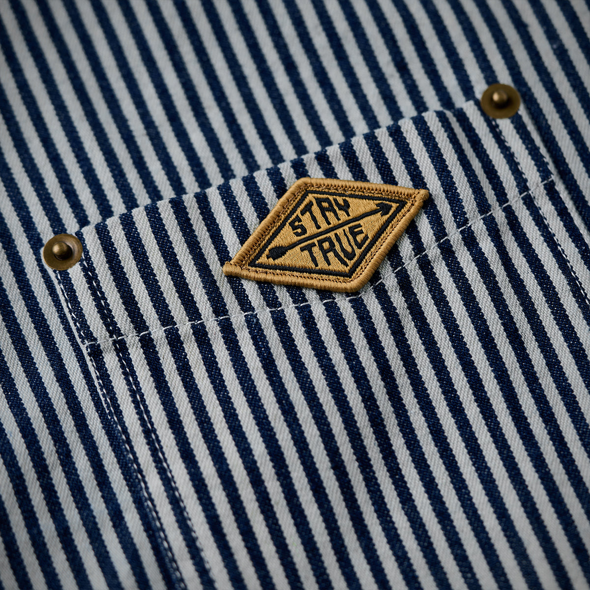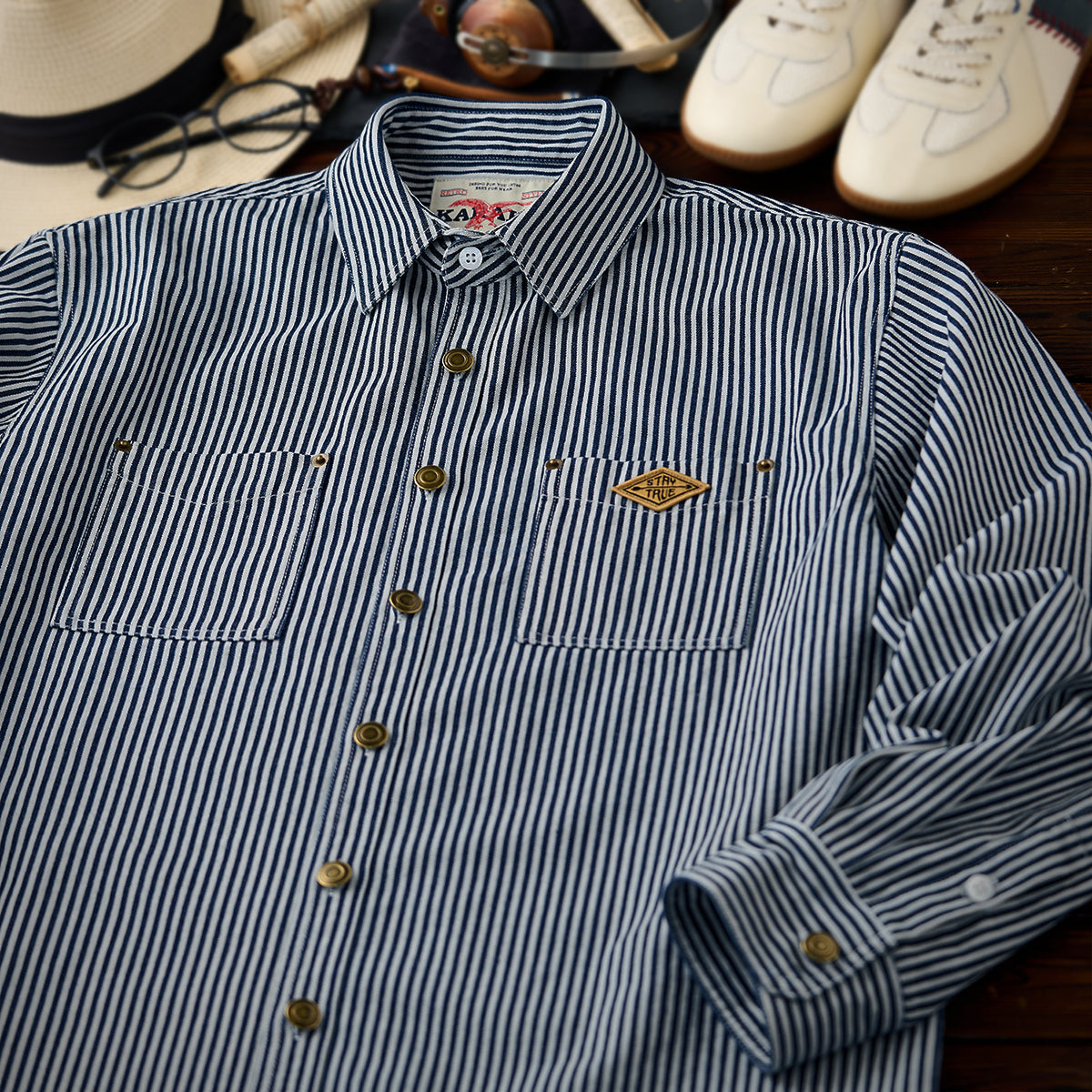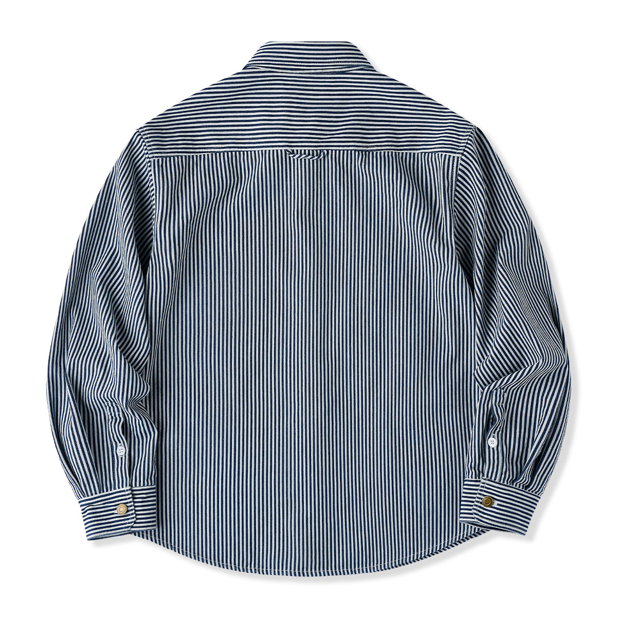 【予約】「STAY TRUE」刺繍ワッペン 先染めストライプ柄ワークシャツ