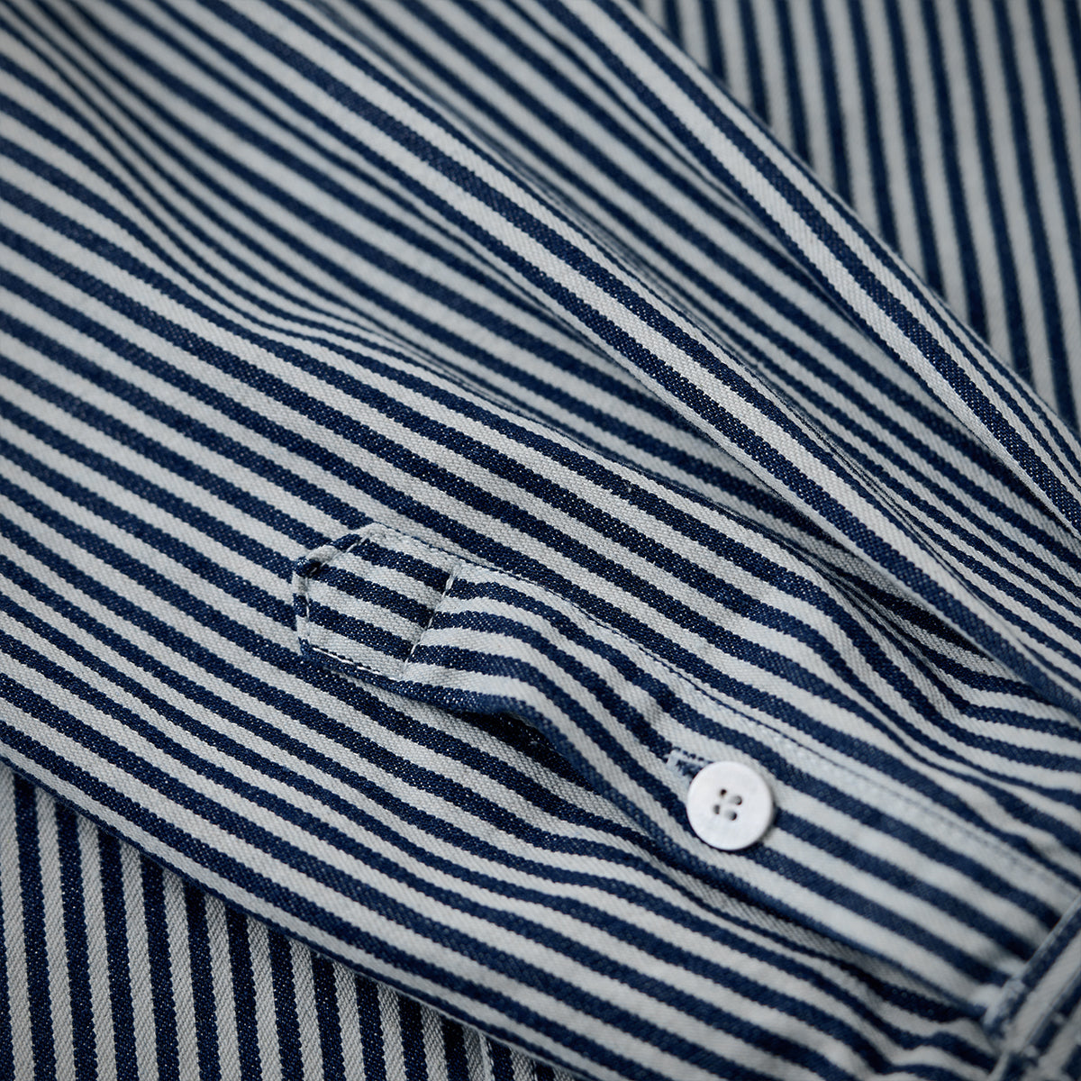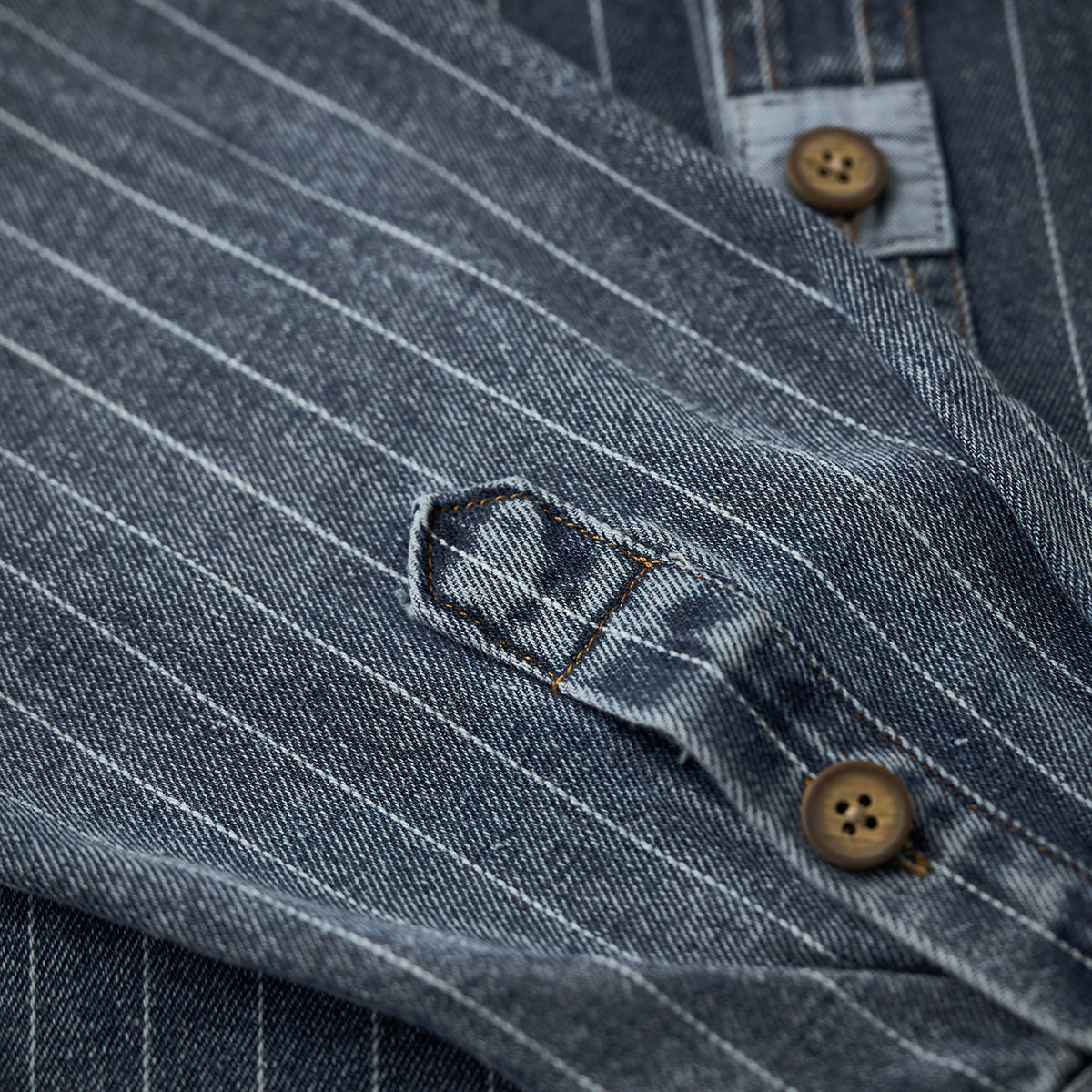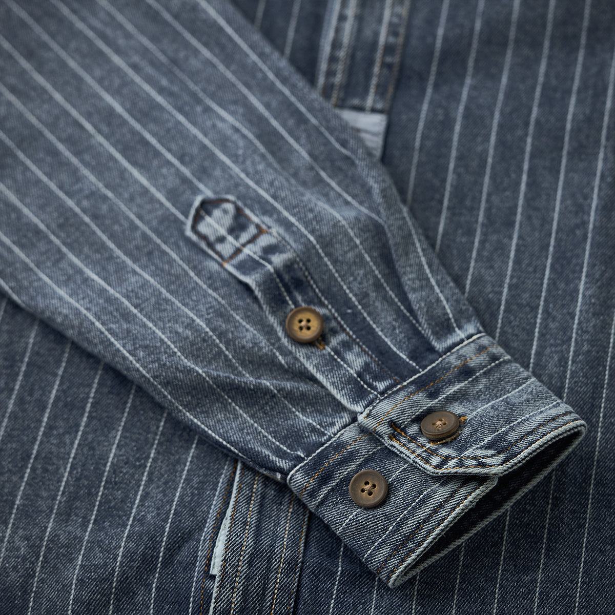 ガチャポケ付き ストライプ柄ウォッシュド加工デニムワークシャツ