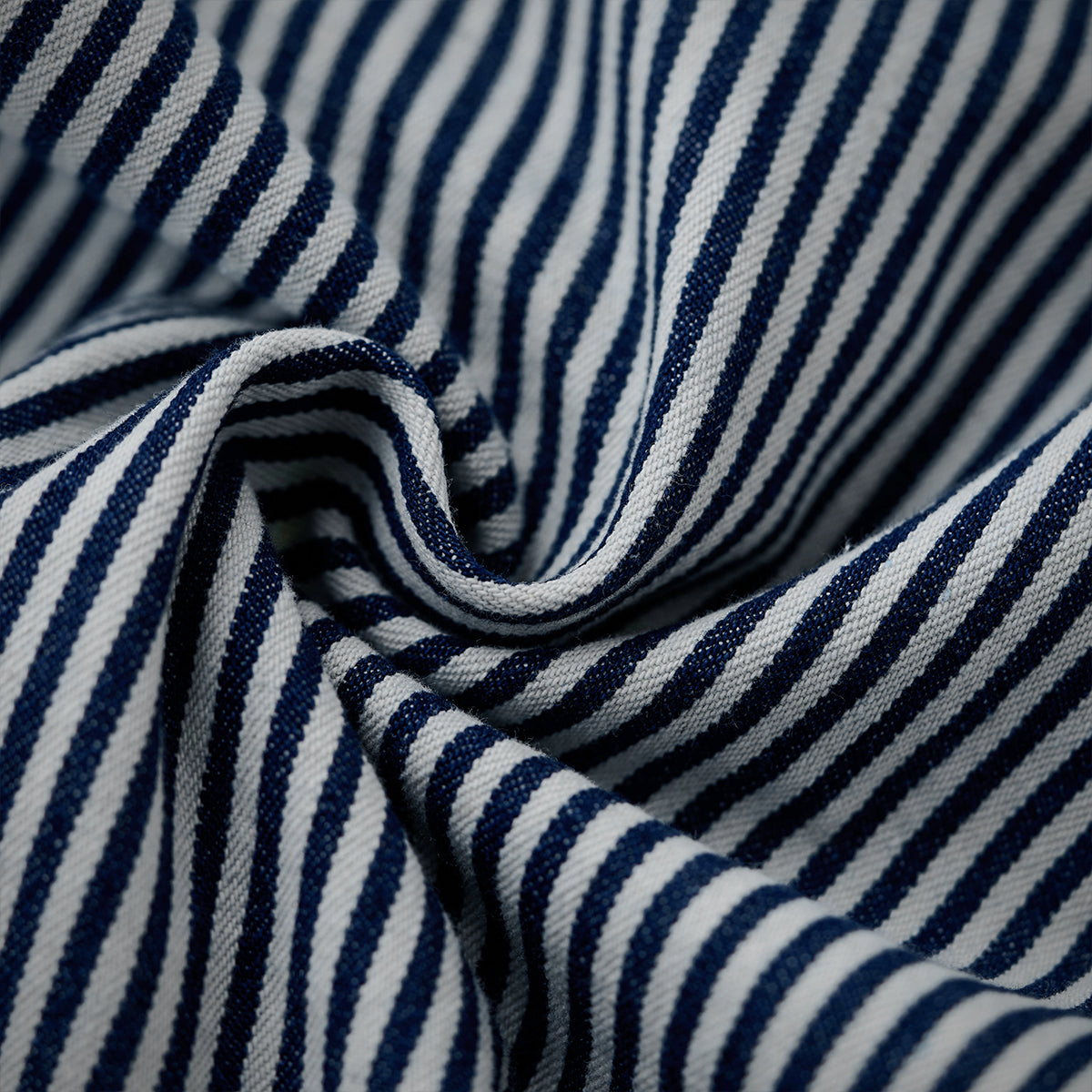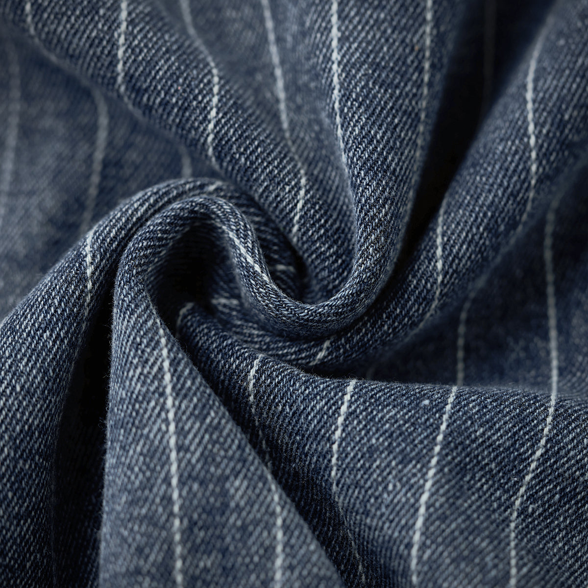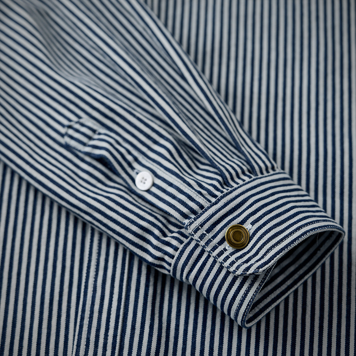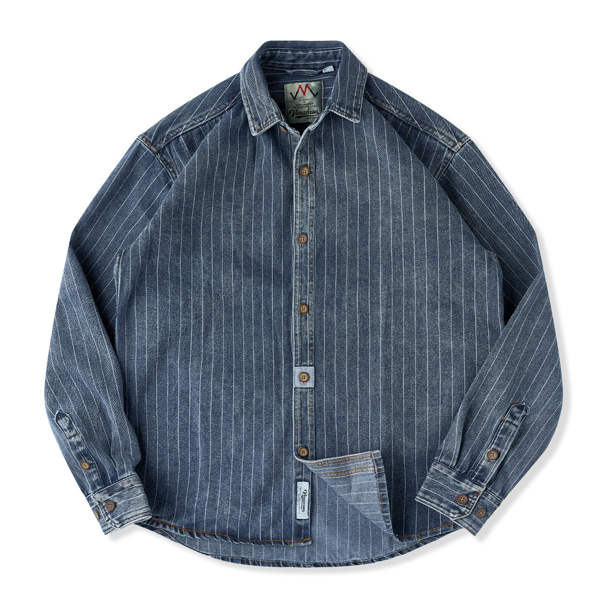 ガチャポケ付き ストライプ柄ウォッシュド加工デニムワークシャツ