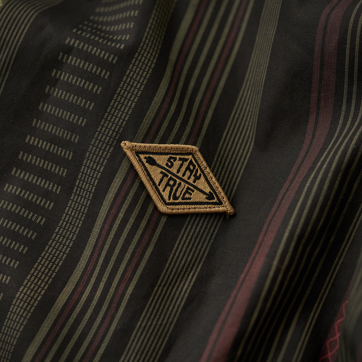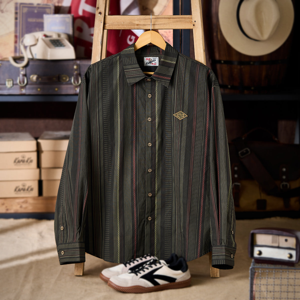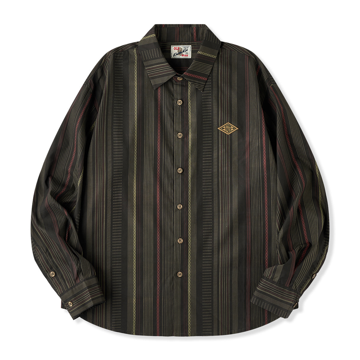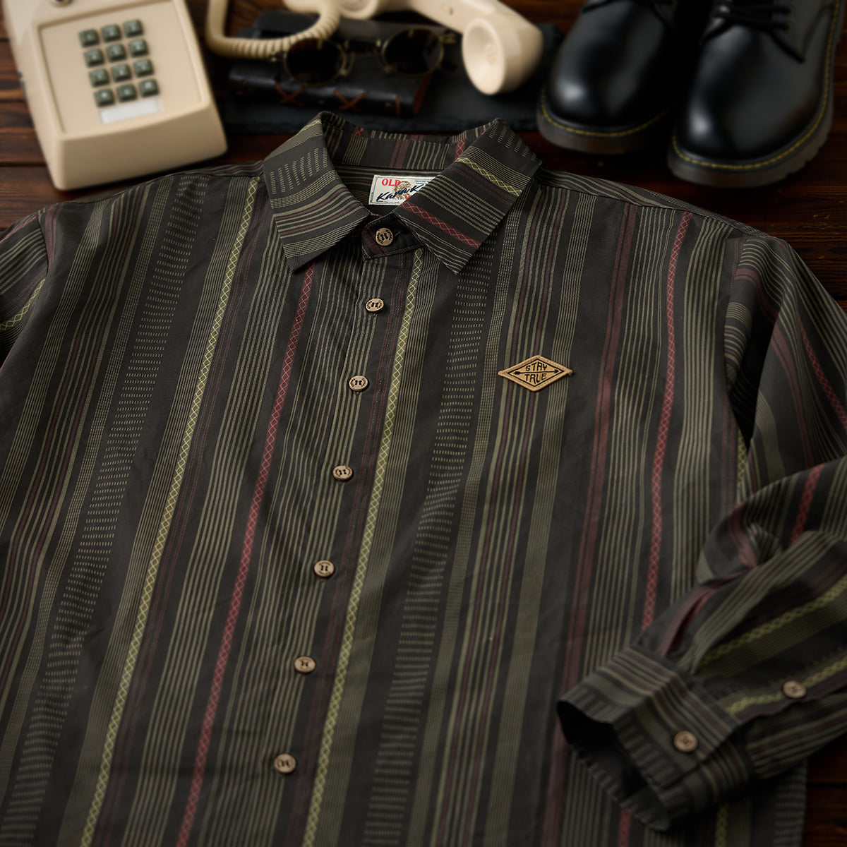 【予約】「STAY TRUE」刺繍ワッペン 先染めマルチストライプ柄長袖シャツ