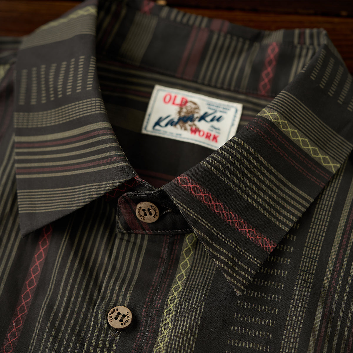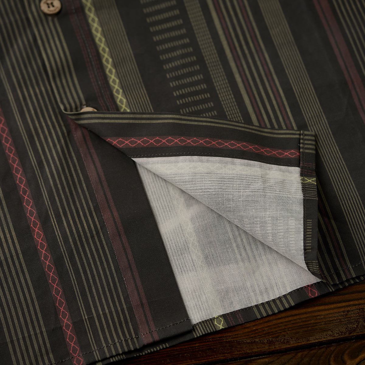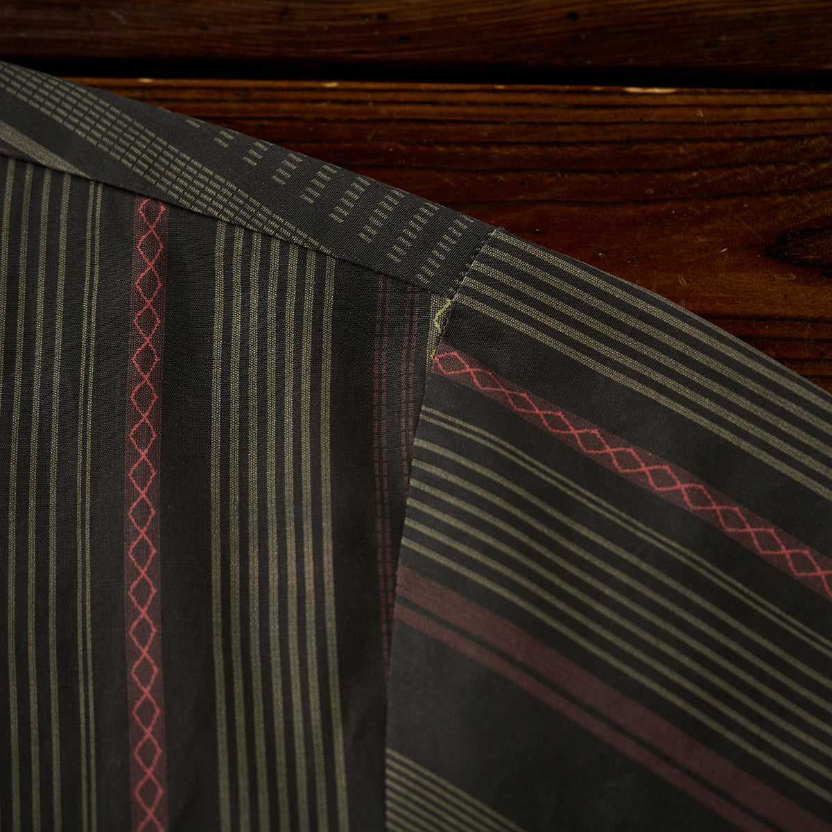 【予約】赤ヒモ付き 先染めマルチストライプ柄オープンカラーシャツ