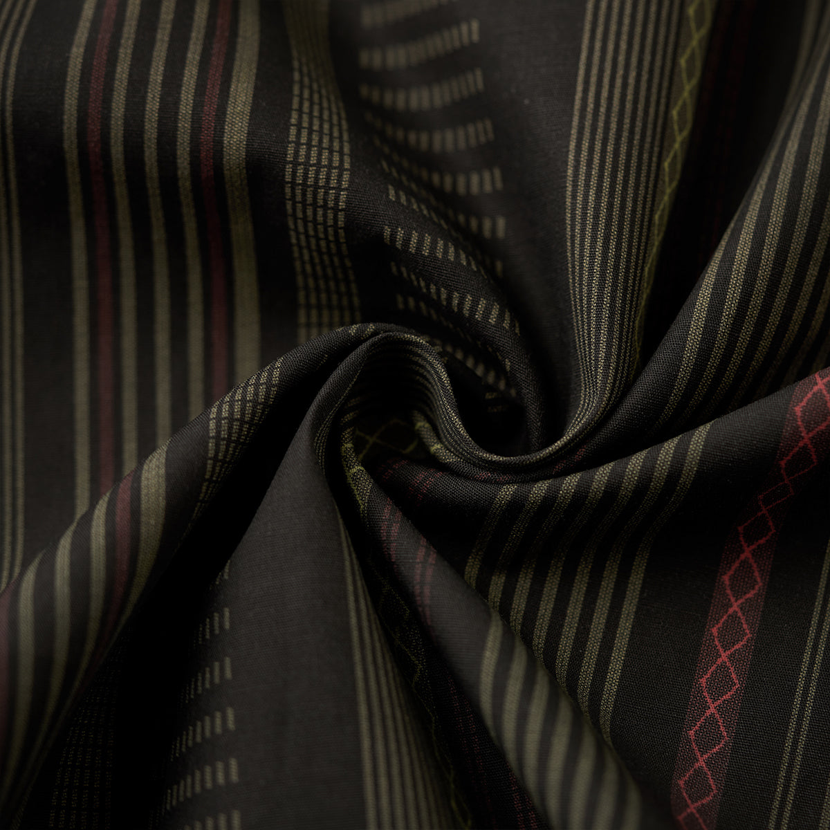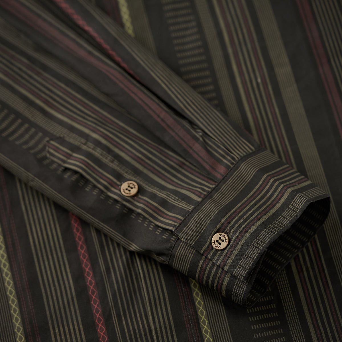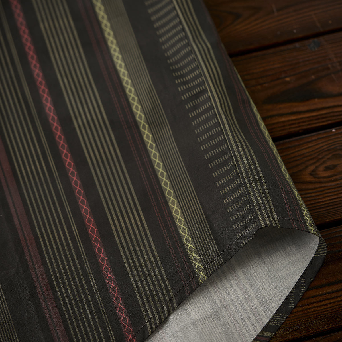 【予約】赤ヒモ付き 先染めマルチストライプ柄オープンカラーシャツ