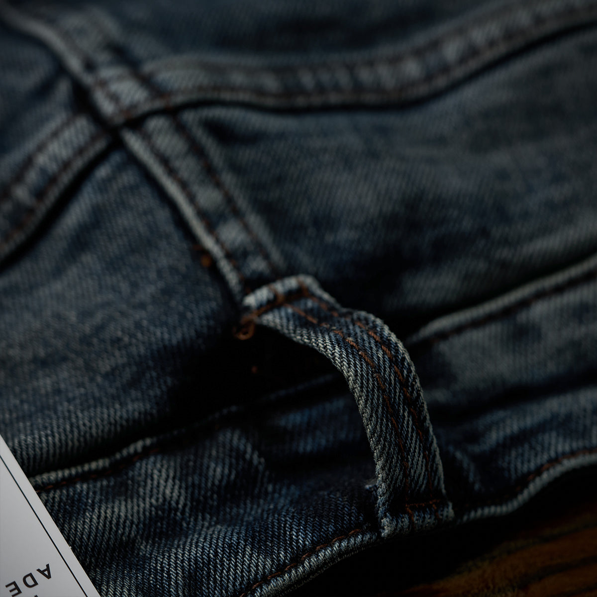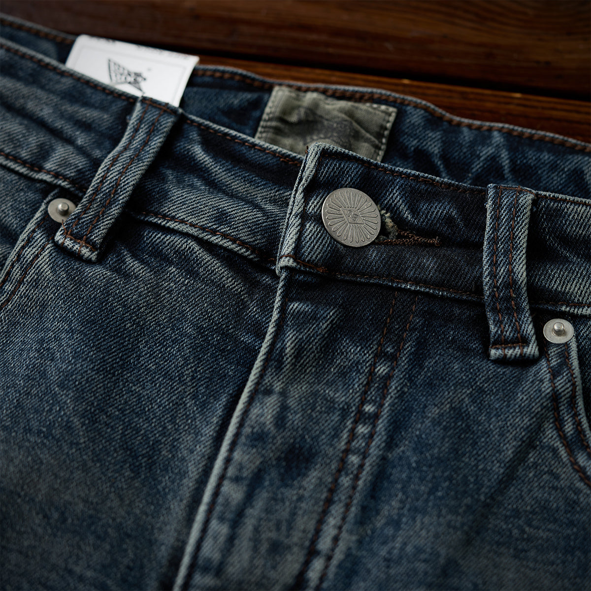 ユーズド&ウォッシュ加工ストレートデニムパンツ