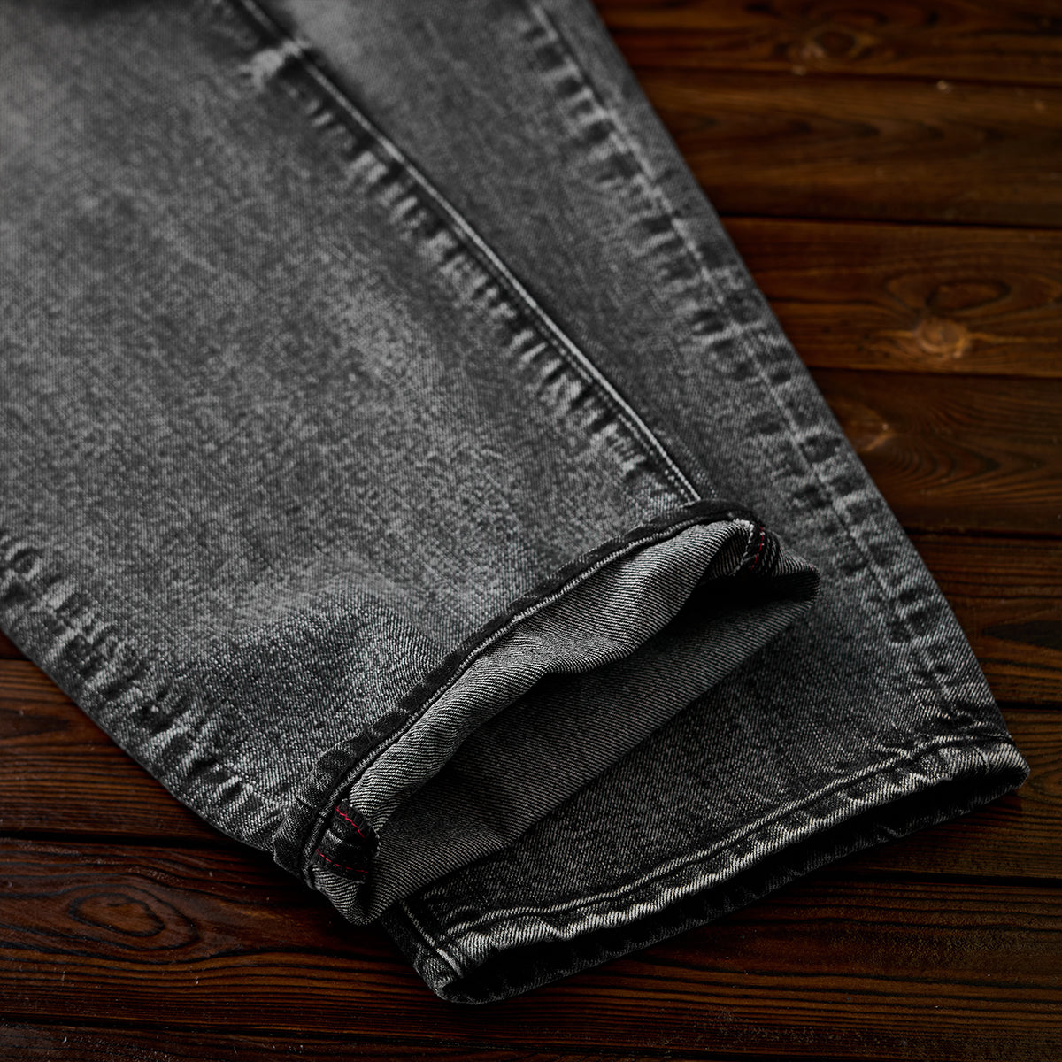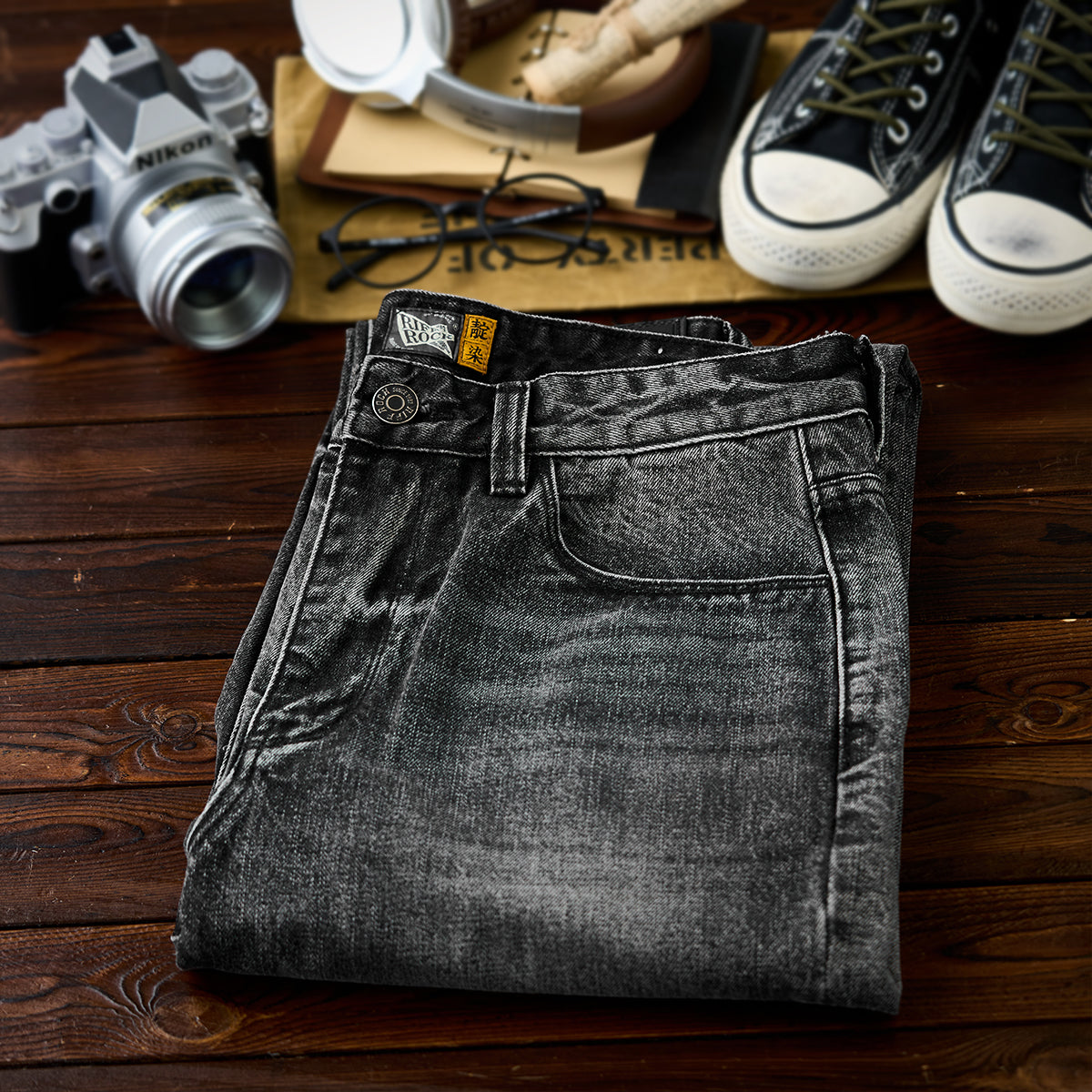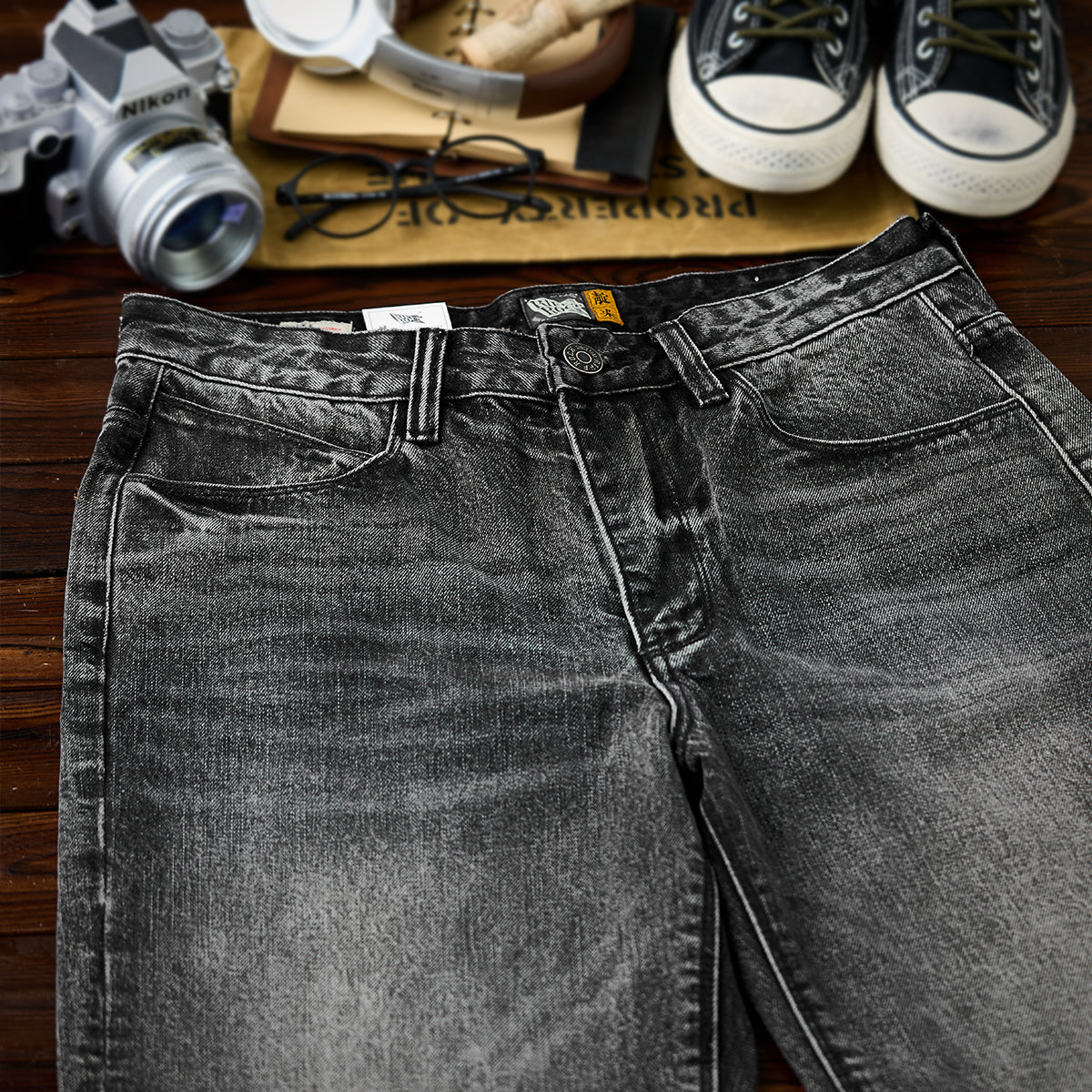 ユーズド&ウォッシュ加工 ストレートグレーデニムパンツ