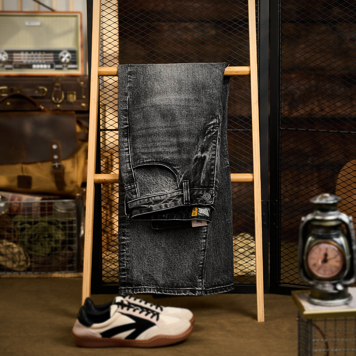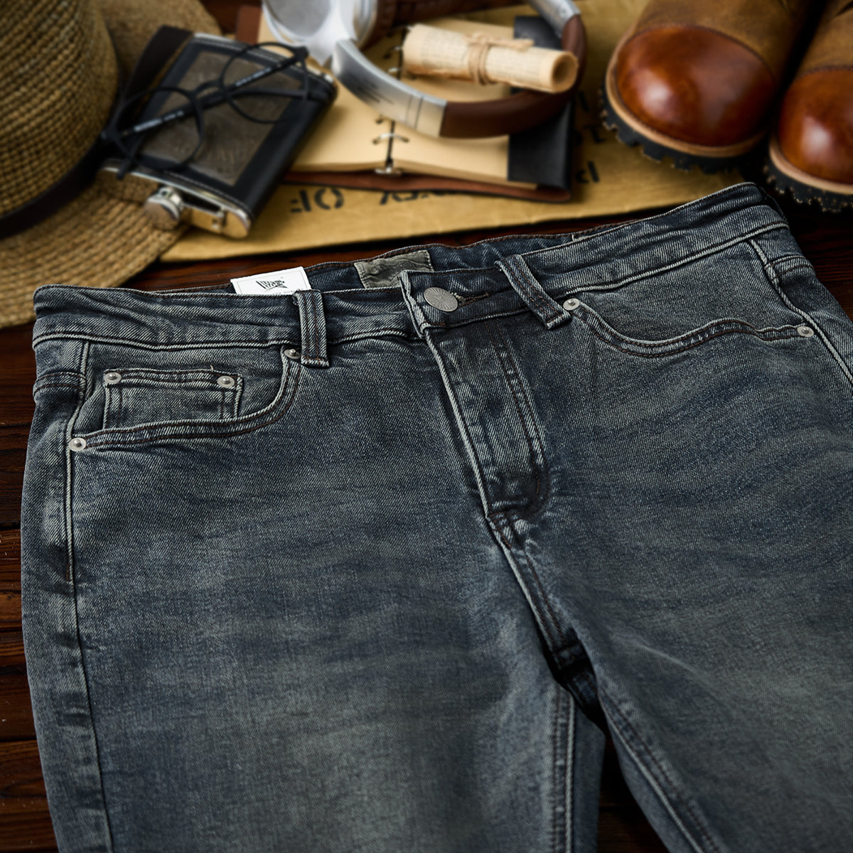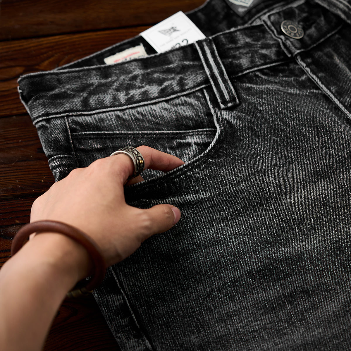 ユーズド&ウォッシュ加工 ストレートグレーデニムパンツ