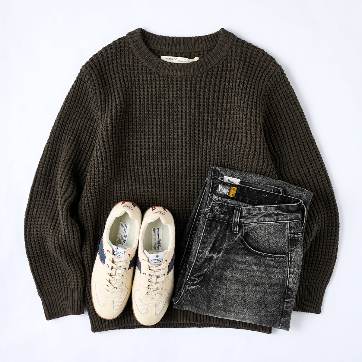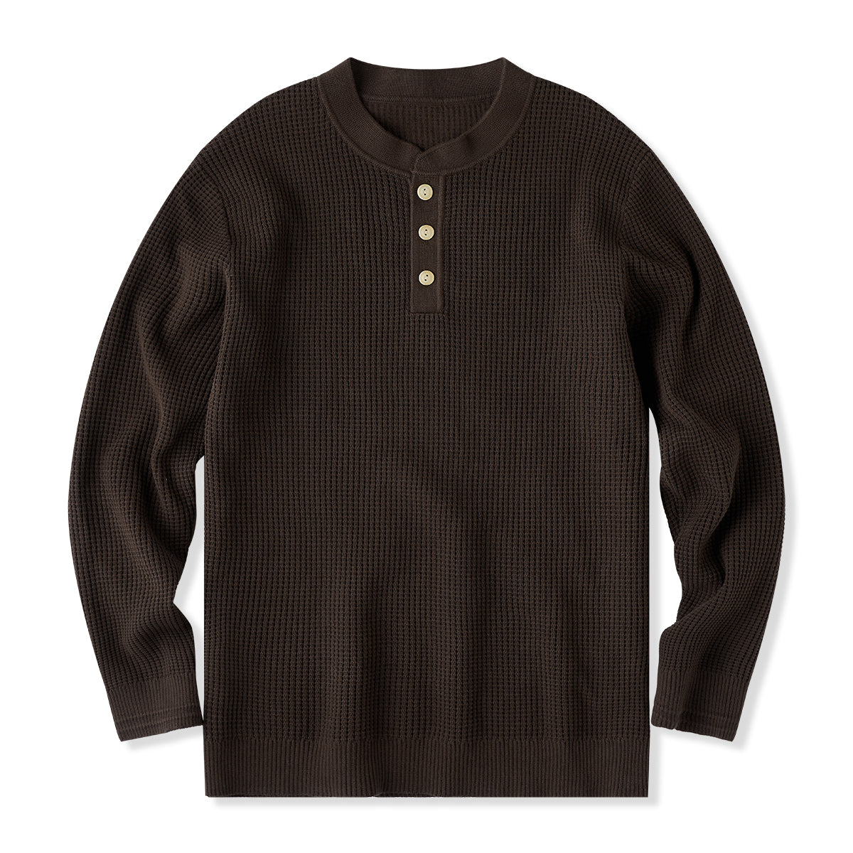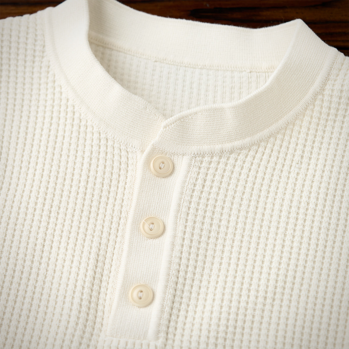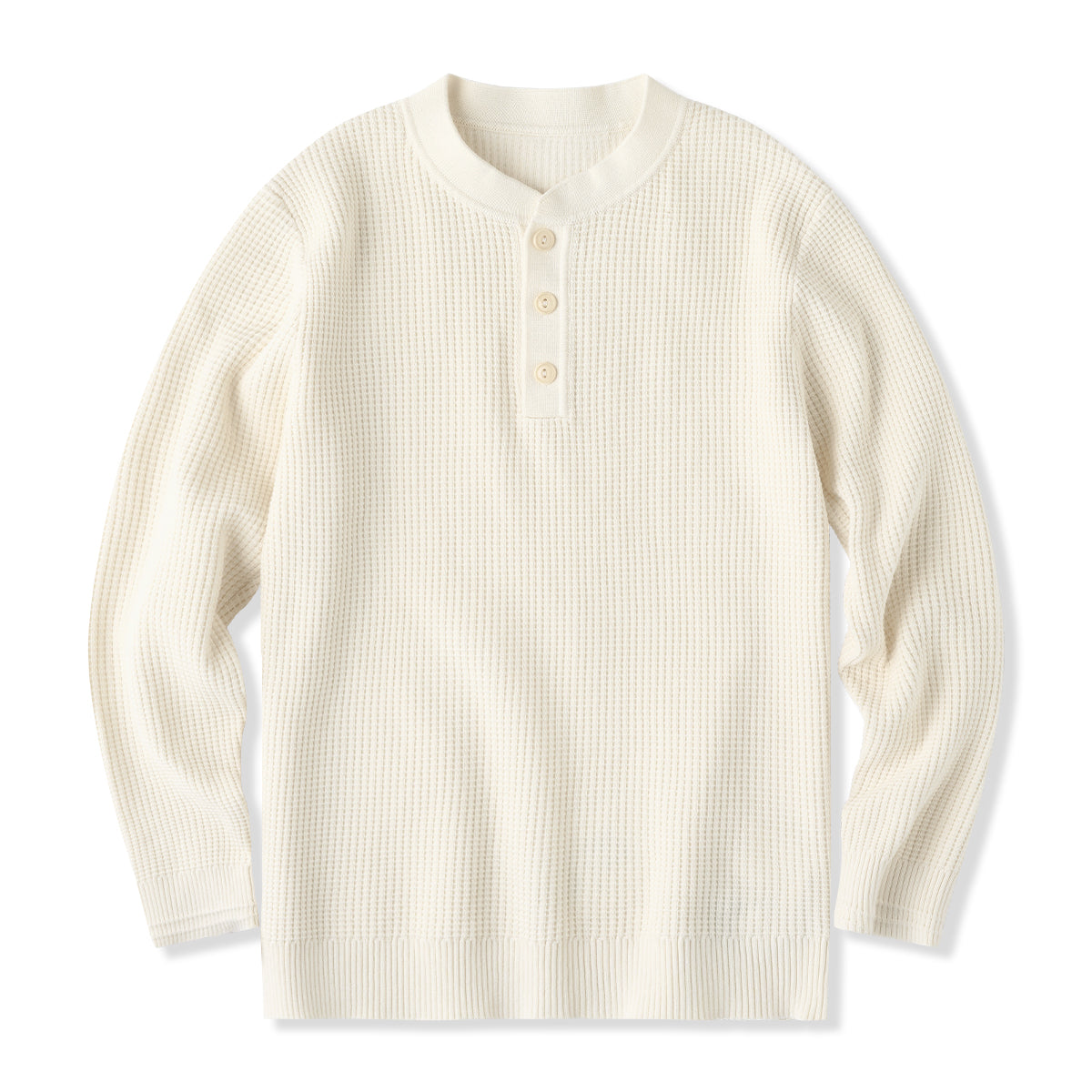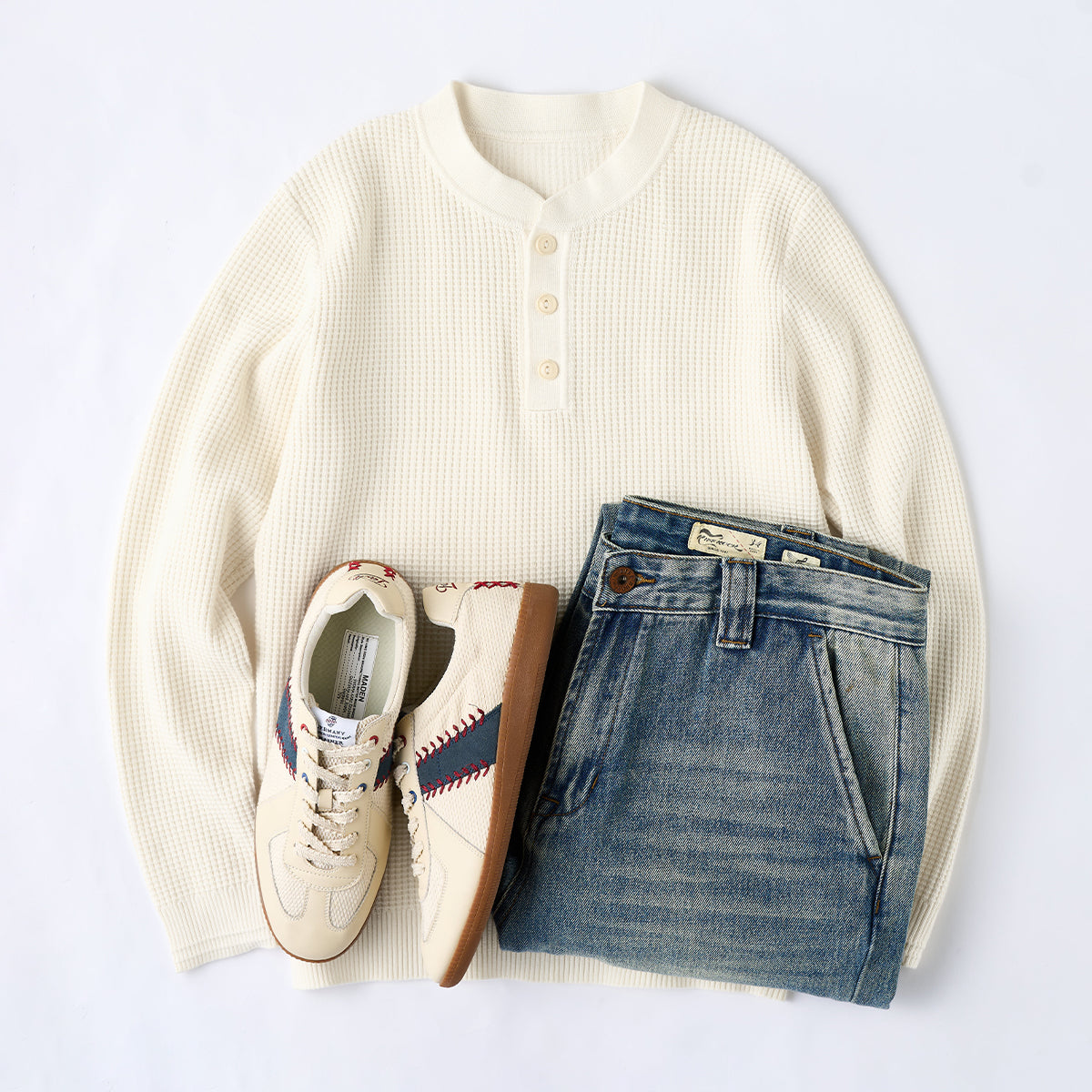 3色展開 ヘビーウェイトワッフルニットヘンリーネックロンT
