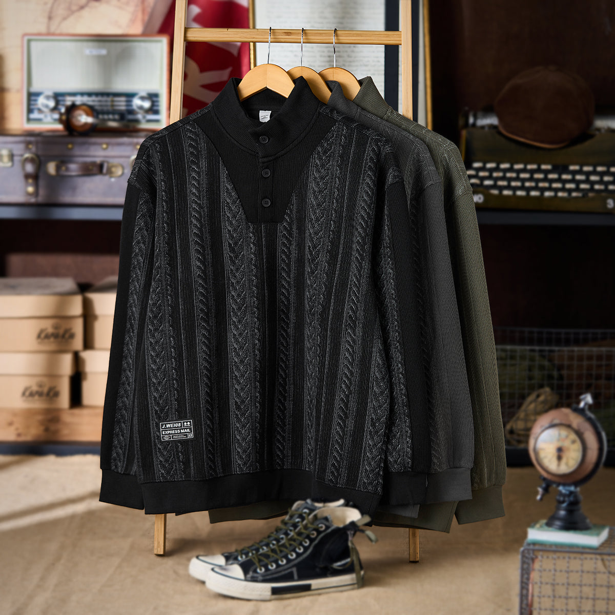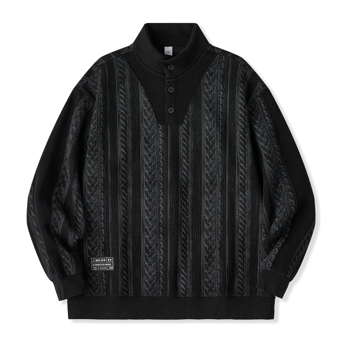 3色展開 3ボタンハイネックジャカードニットスウェット