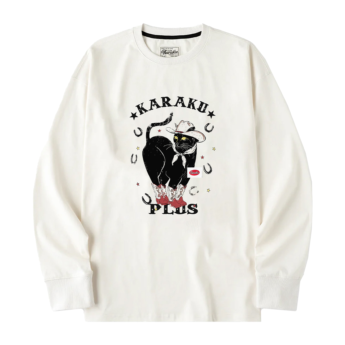 【予約】「レッドブーツをはいたカウボーイ猫」プリントコットンロンT