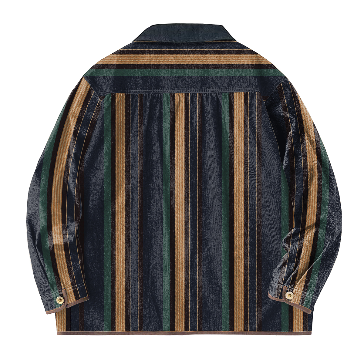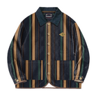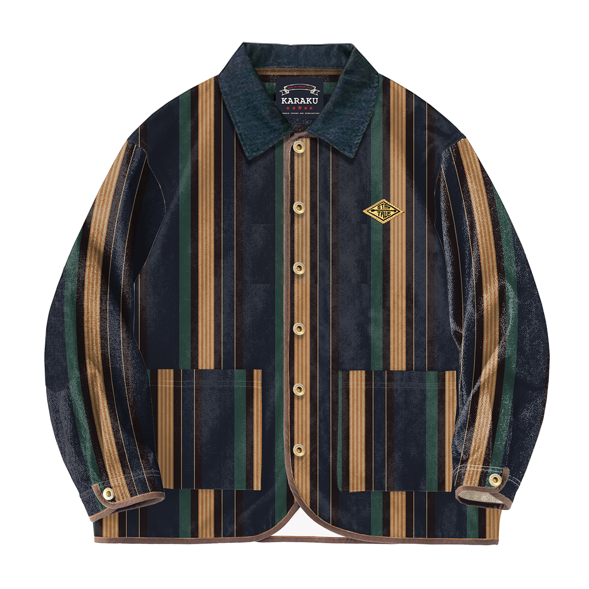 【予約】「STAY TRUE」刺繍ワッペン デニム襟切替マルチストライプジャケット