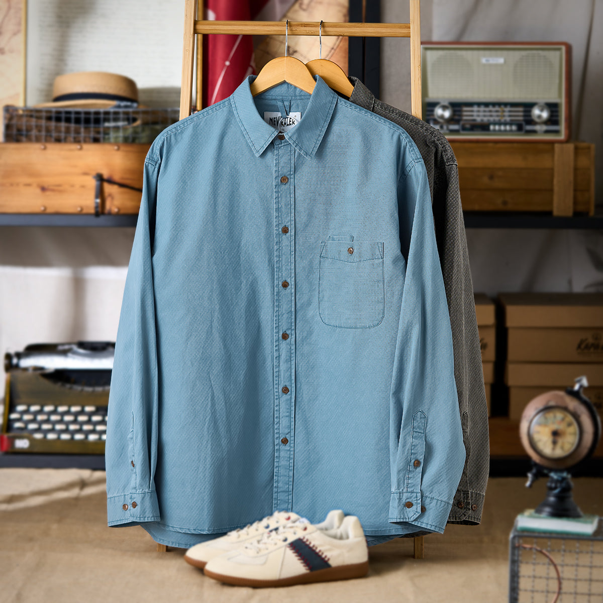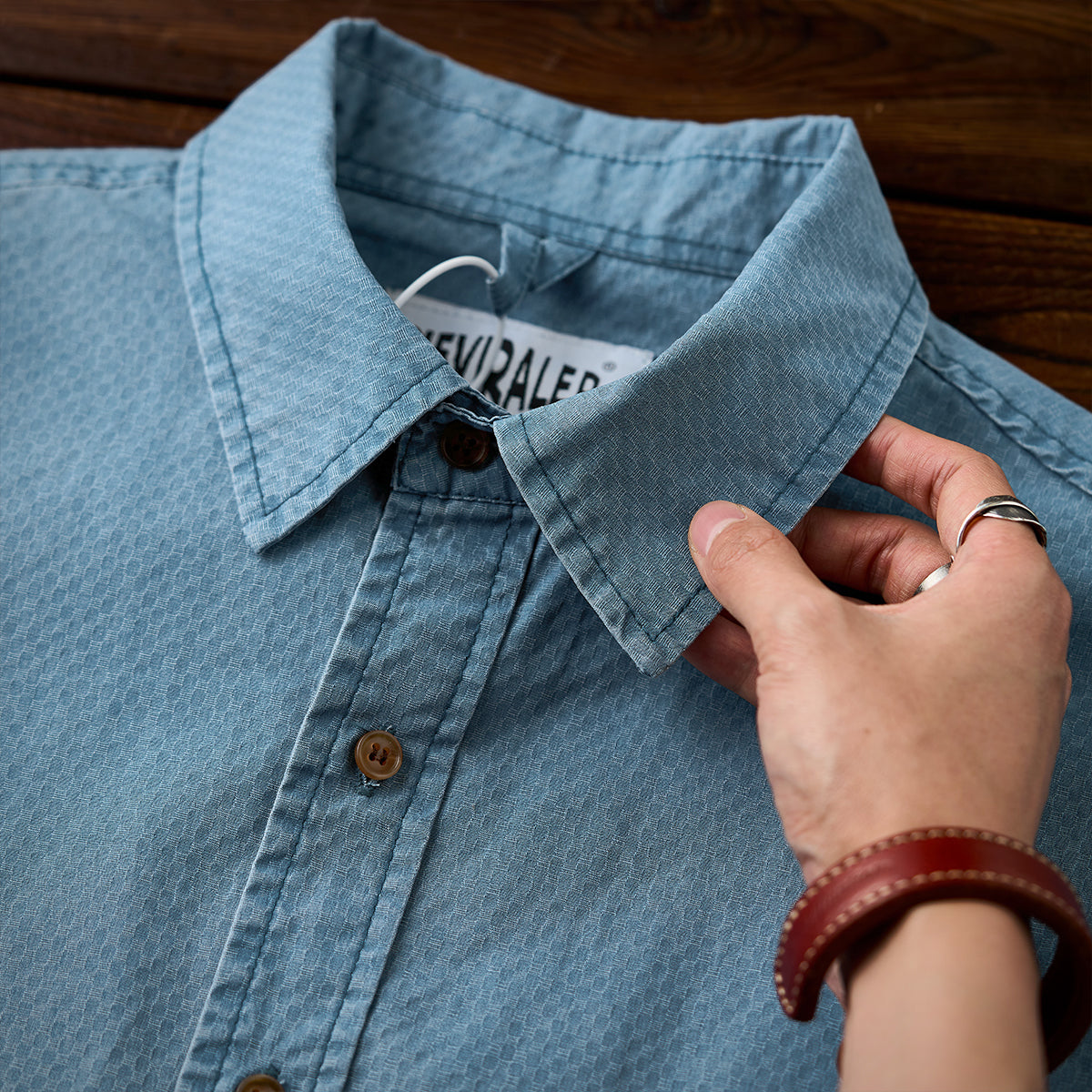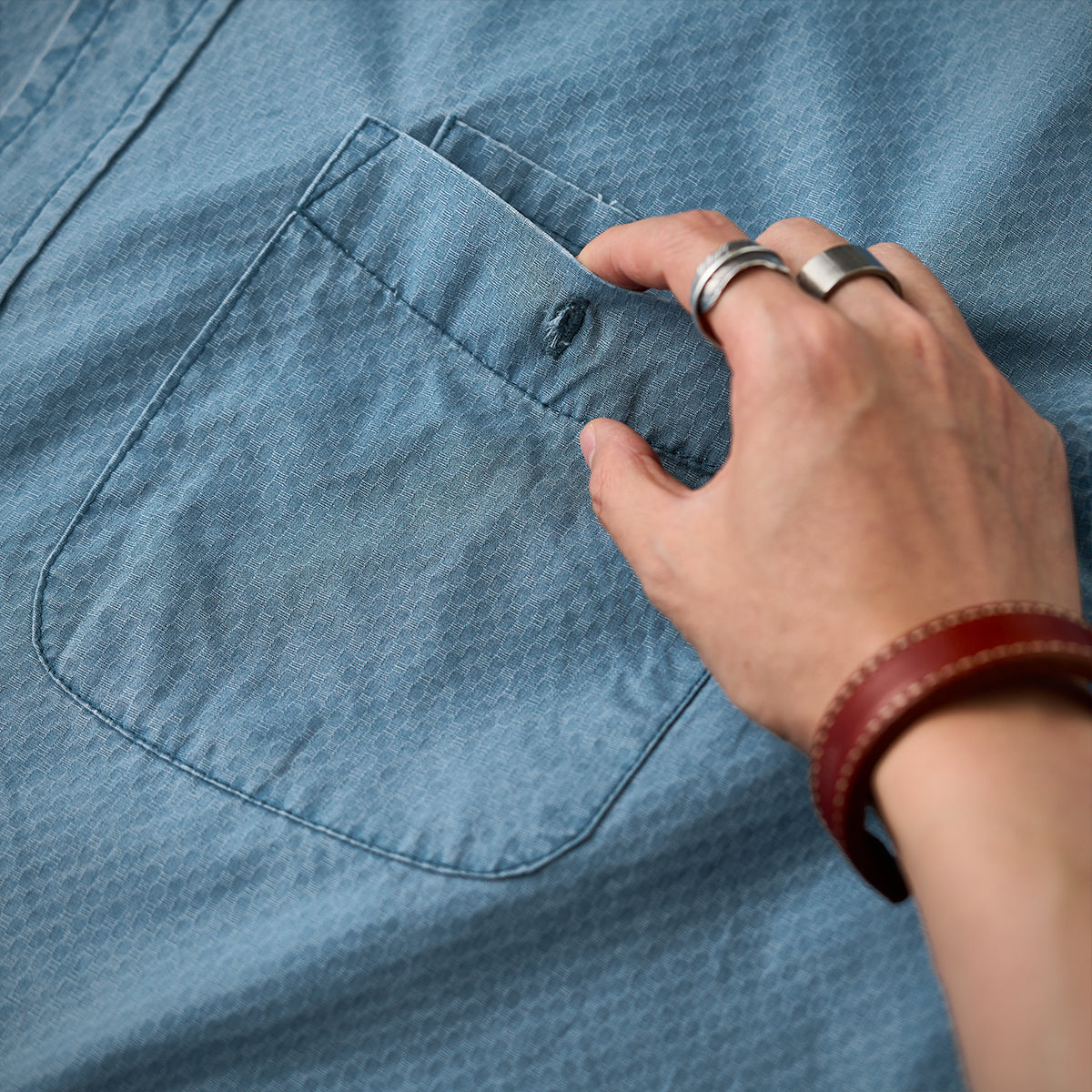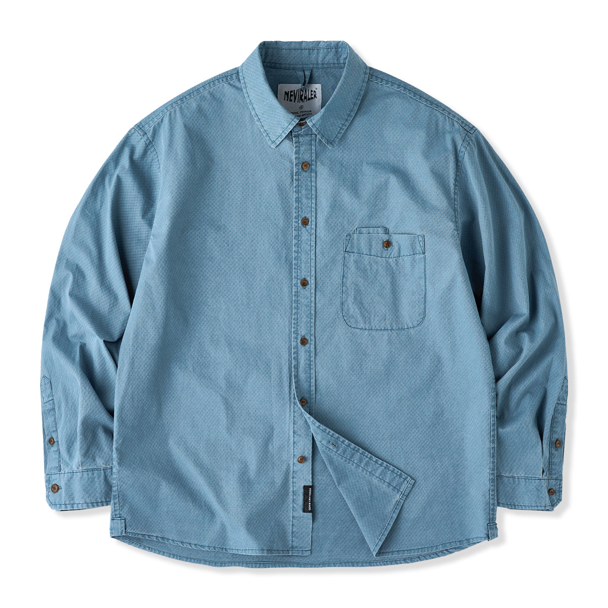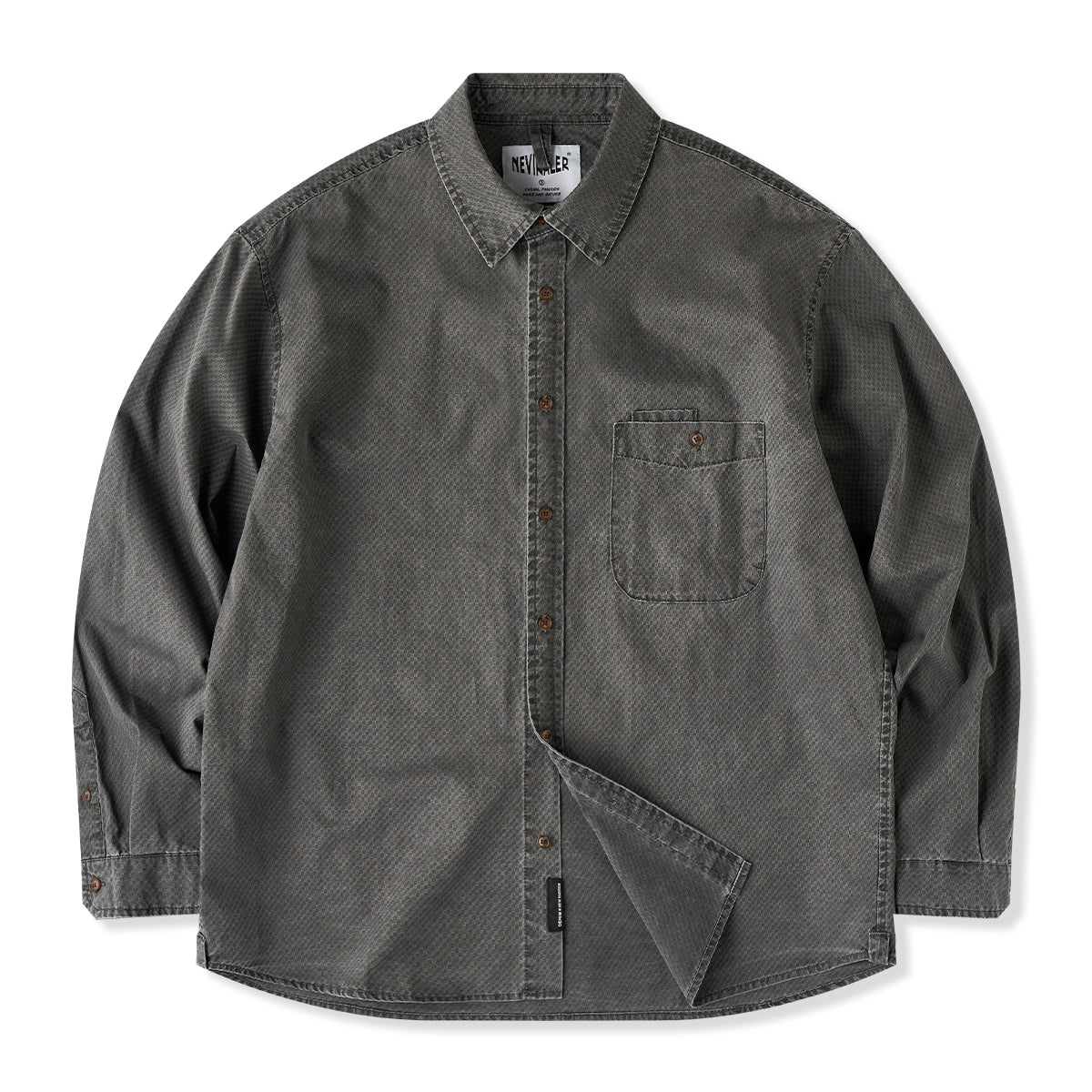 ワンポケット ジャカード織りテクスチャコットン長袖シャツ