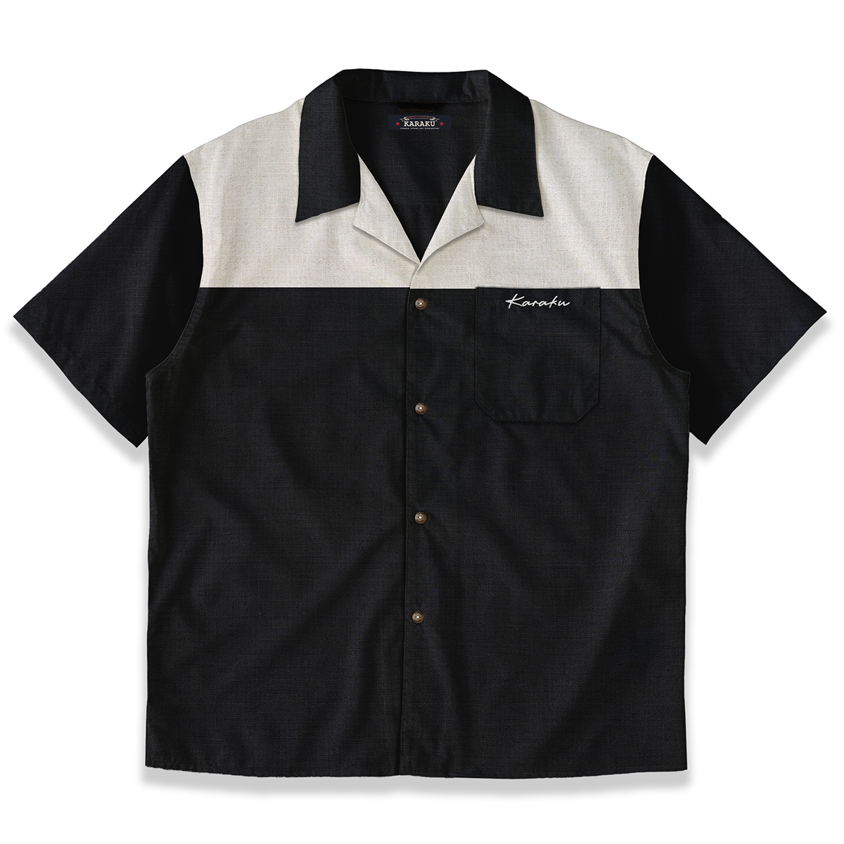 【予約】「Karaku」刺繍入り 配色切替リネンライクオープンカラーシャツ