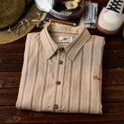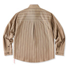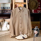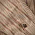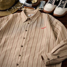 リネン混 赤ヒモ付きレトロマルチストライプ柄長袖シャツ