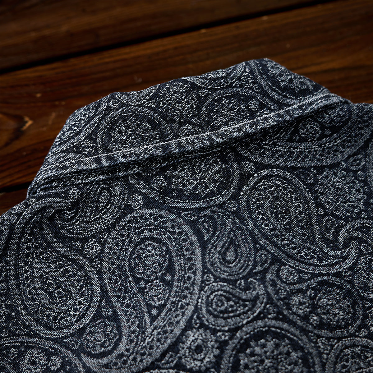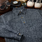 ペイズリー柄ジャカード織りデニム ハーフボタンデニムプルオーバーシャツ