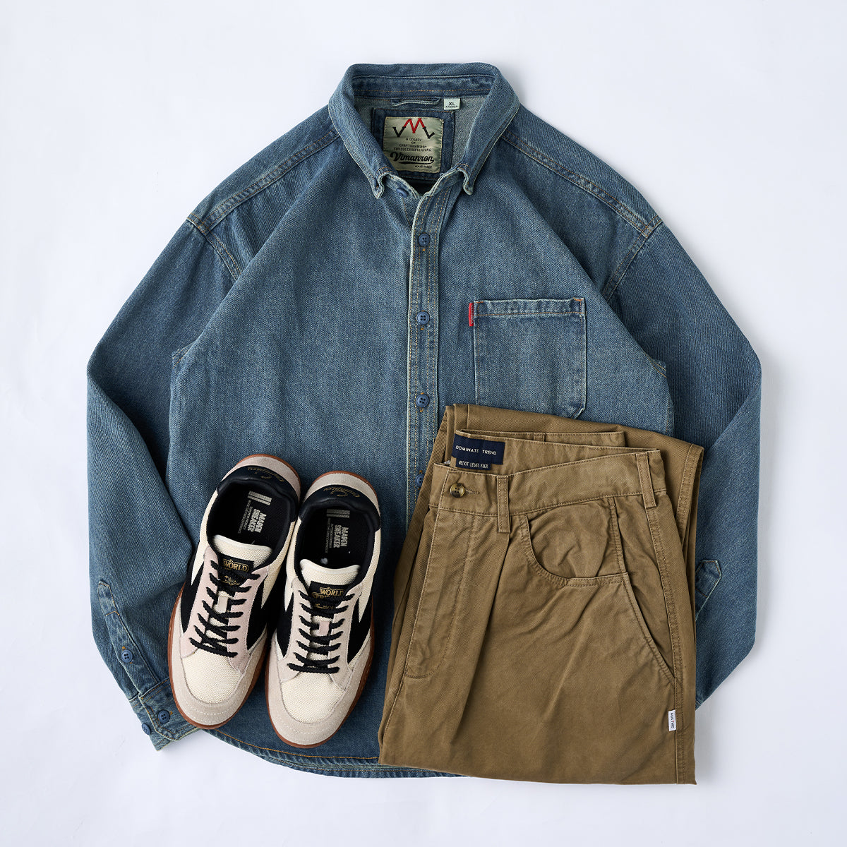 柔らかく履き心地の良いのコットン生地をメインに採用、吸水性や吸湿性に長け、どの季節でも良い着心地。ウォッシュ加工がされ、素材は自然の色落ちとユーズド感で現れ、ビンテージ感も満載。