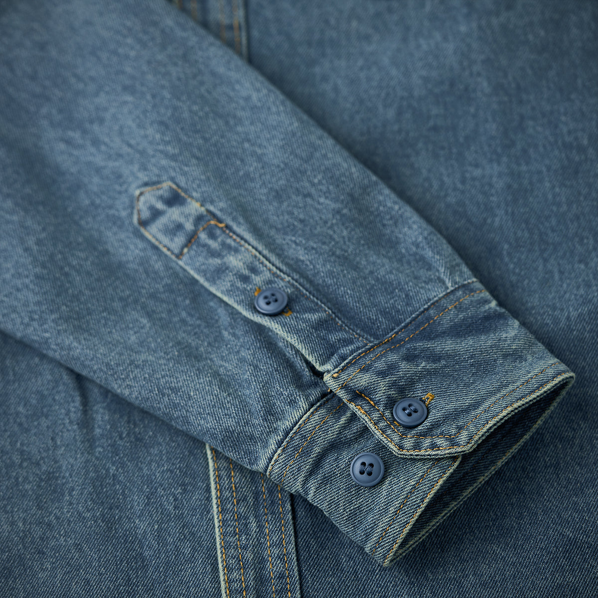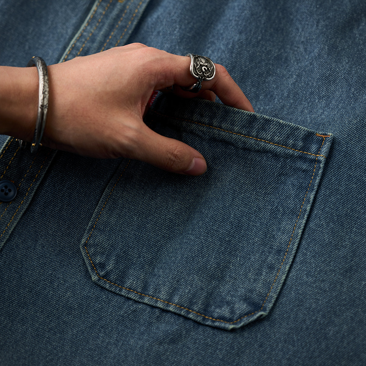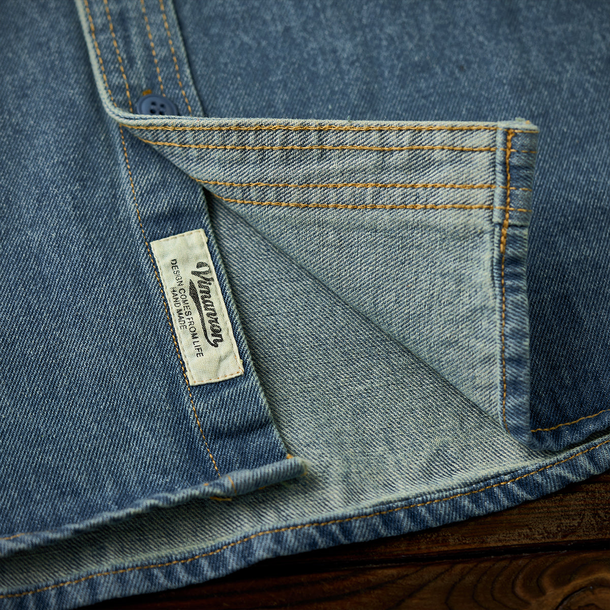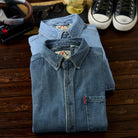 2色展開 ラウンドヘムウォッシュド加工デニムワークシャツ