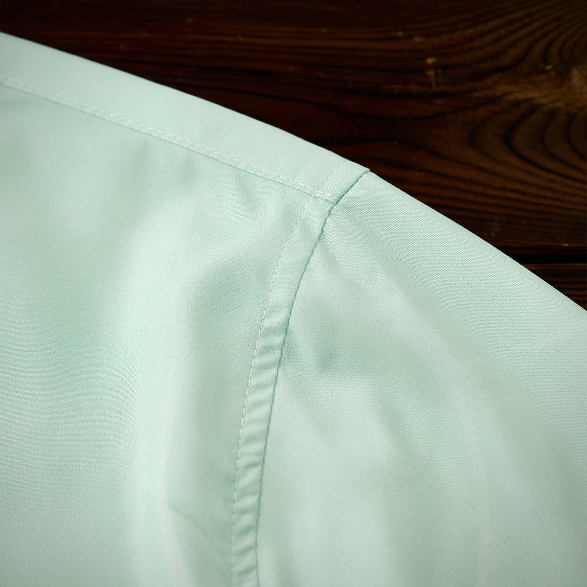 ツルッと滑るような肌触りの良さが着心地抜群で、光沢の美しさが際立つフェイクテンセルを使用し、軽量さと柔らかさを実現しています。また静電気に強く、肌にまとわりつく不快感がありません。