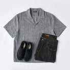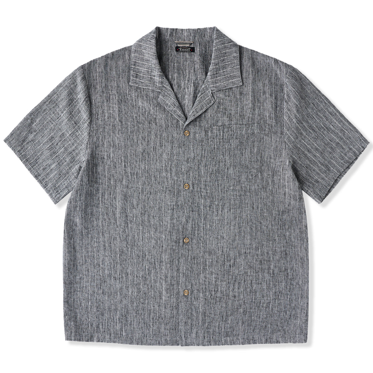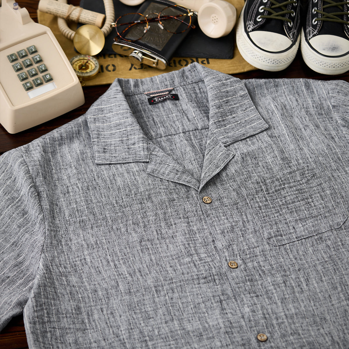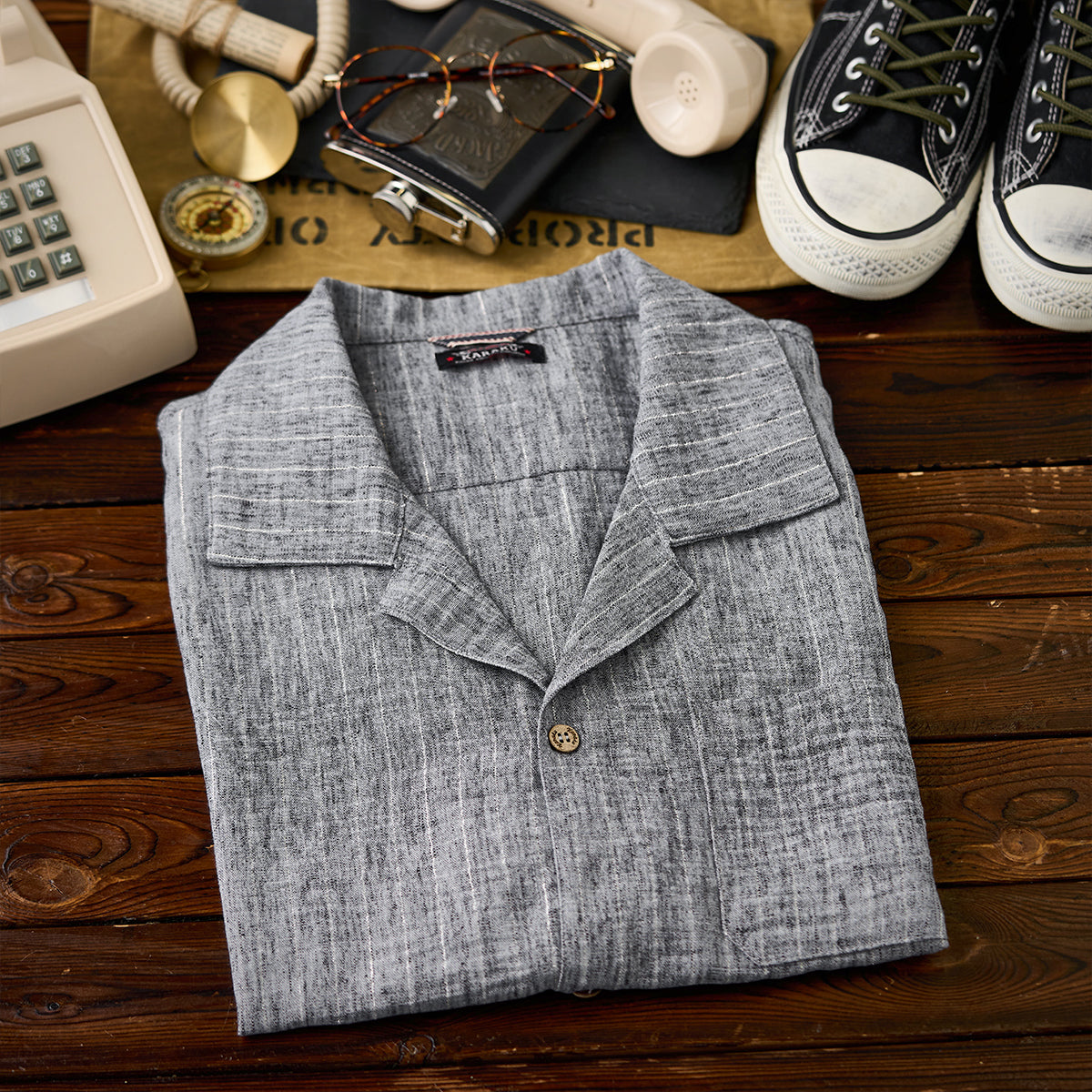 【予約】オーダーメイドフェイクリネン ラメ糸入りオープンカラーシャツ