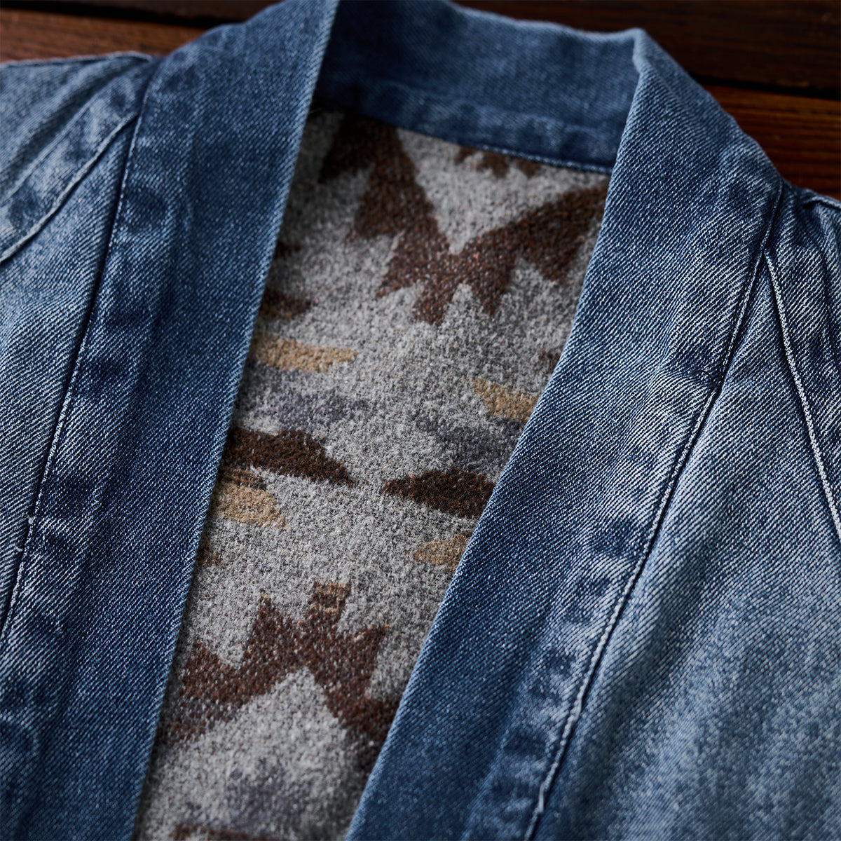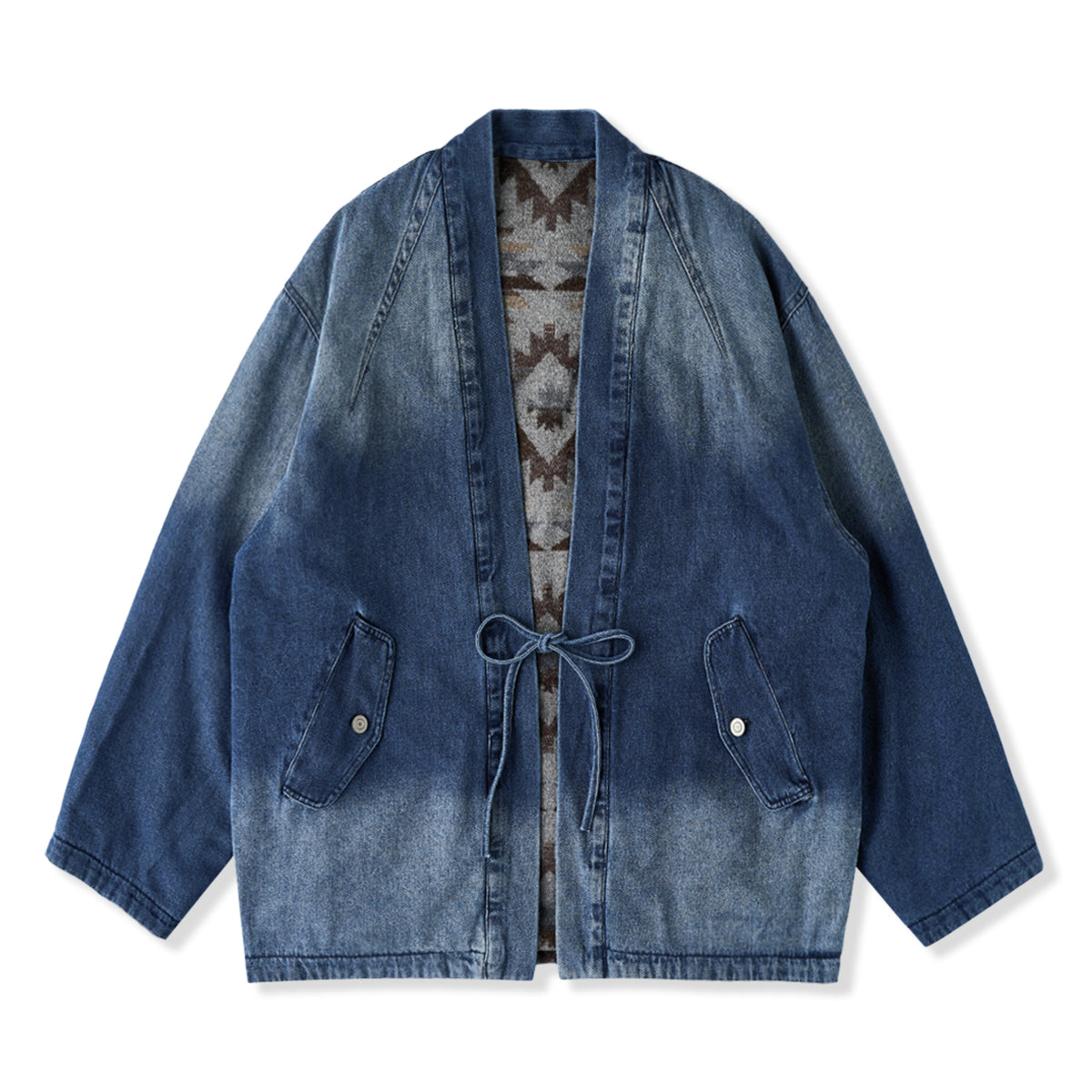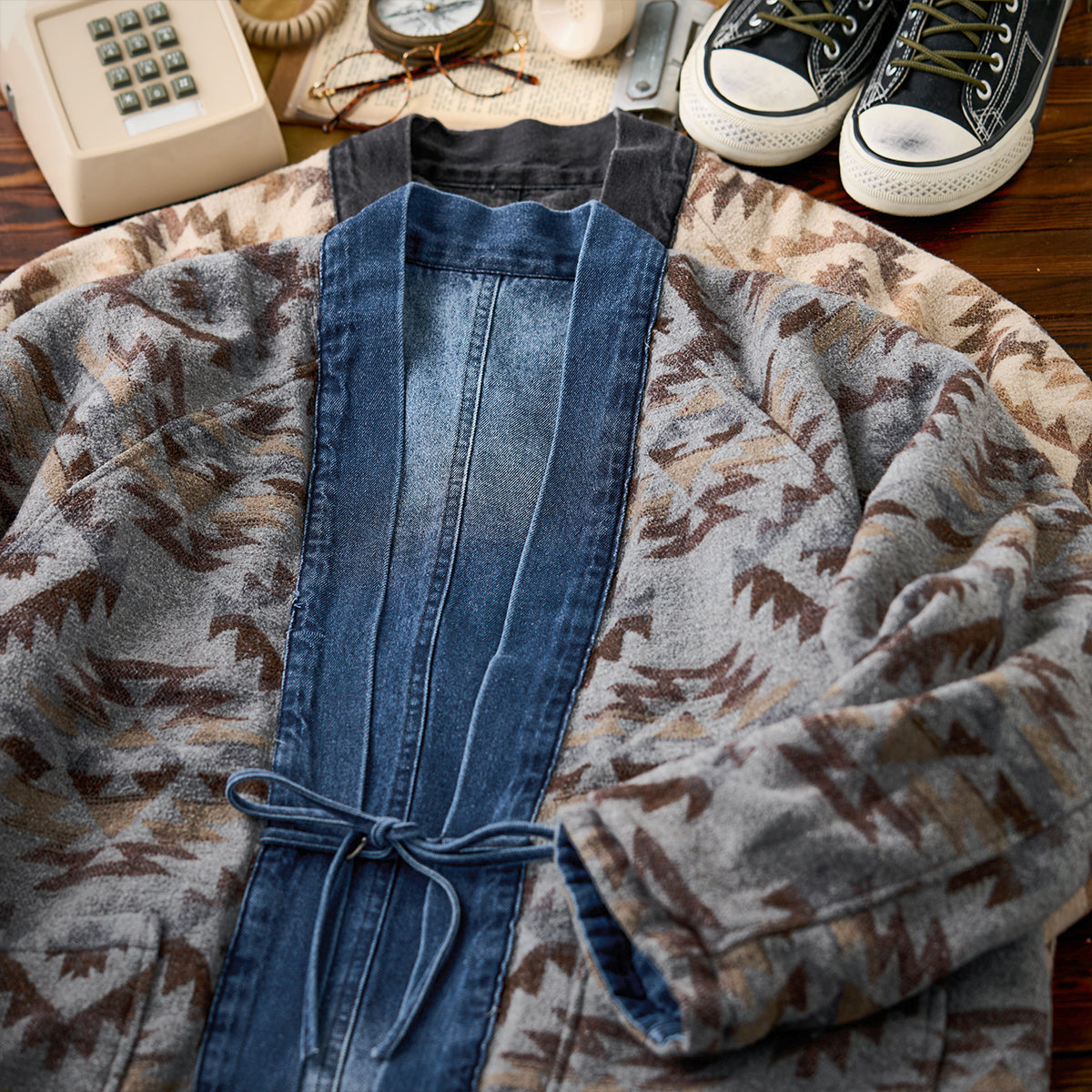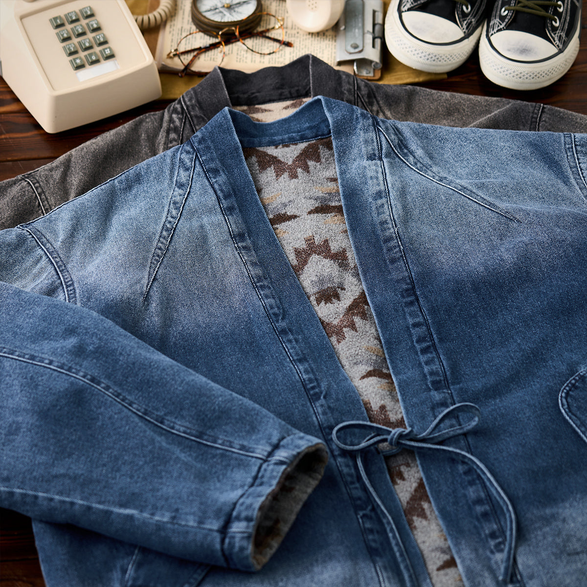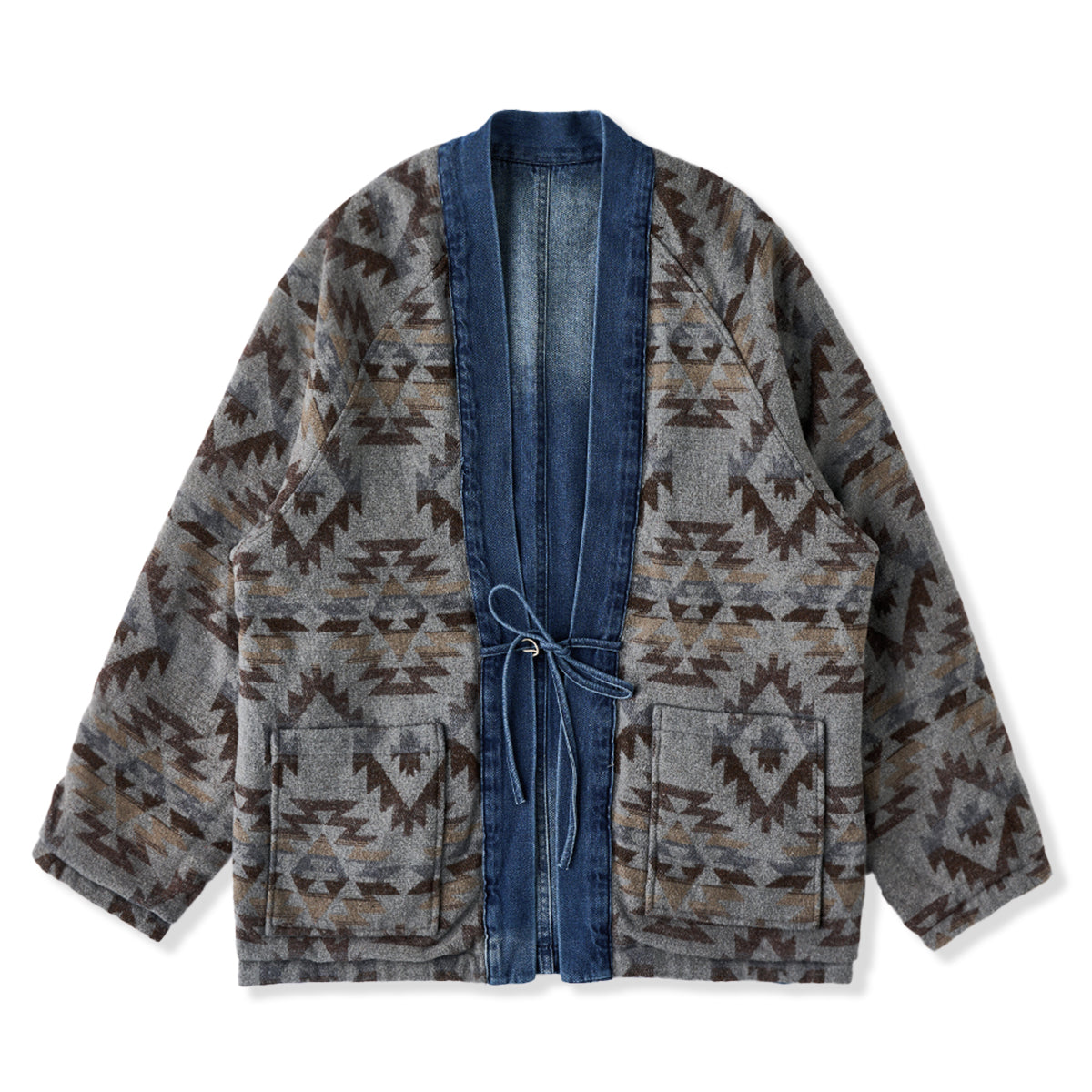 ウォッシュデニム&エスニック柄・リバーシブル和モダン半纏