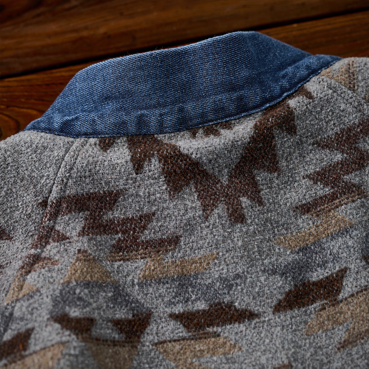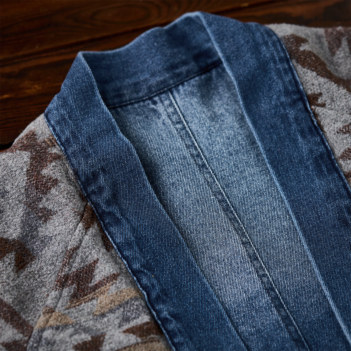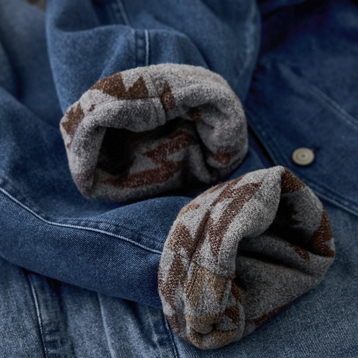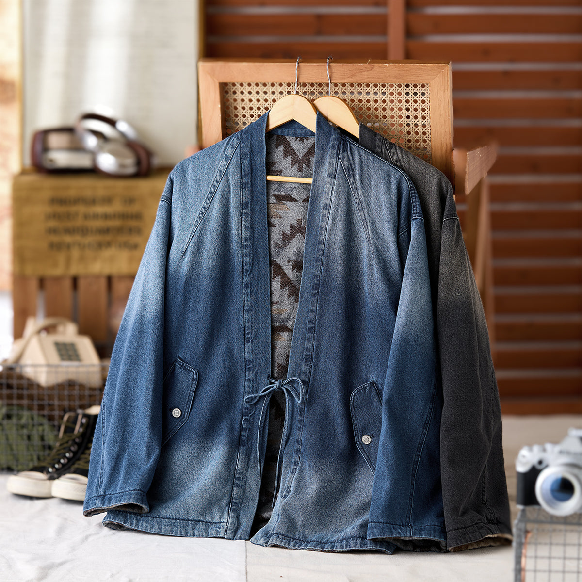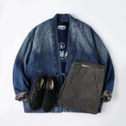 ウォッシュデニム&エスニック柄・リバーシブル和モダン半纏
