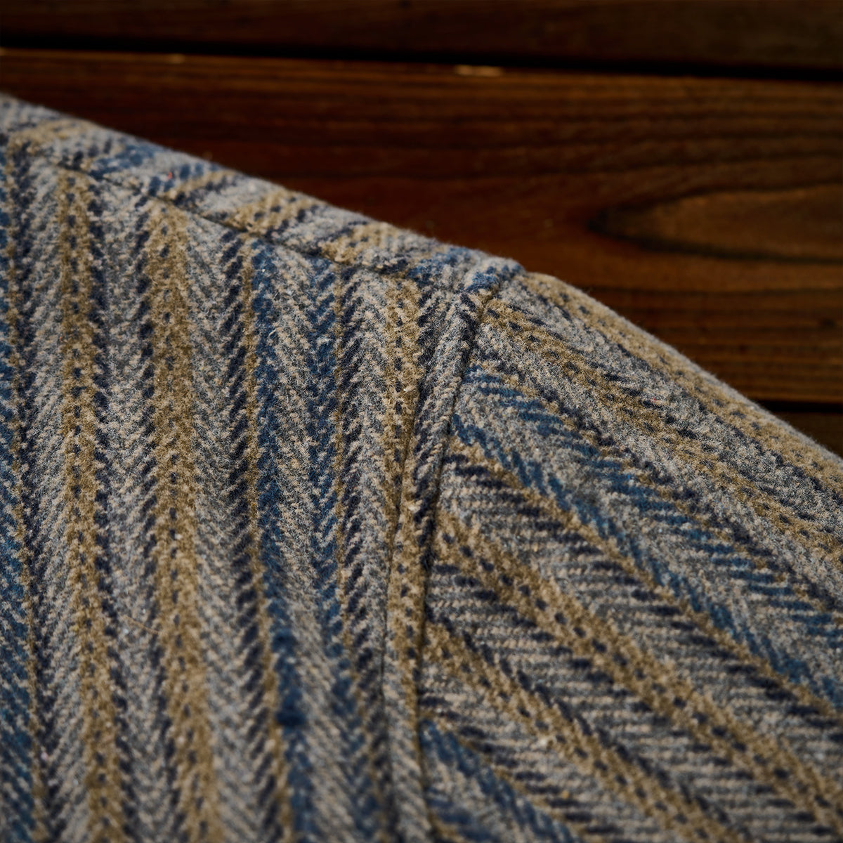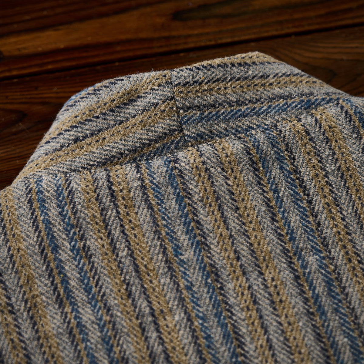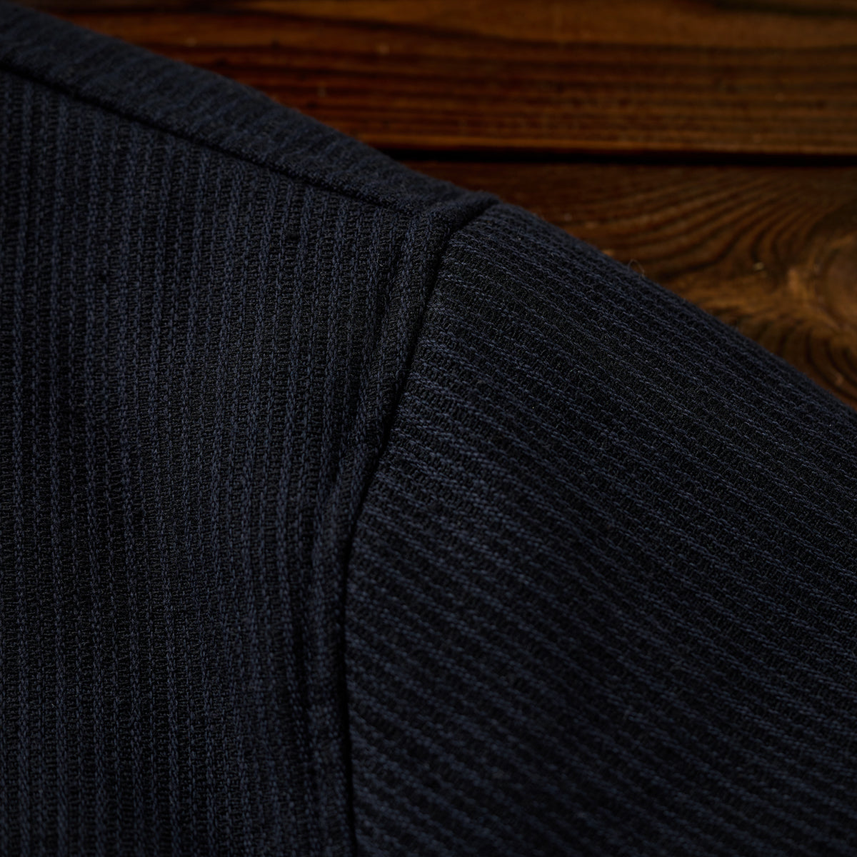 リバーシブル仕様で、表面はヘリンボーン風の織り目を持つストライプ柄で、和風の伝統的な要素をモダンにアレンジしています。ストライプの幅が均一で、シンプルながらも視覚的なリズム感を演出しています。裏面は無地で、よりシンプルでクリーンな印象を与えます。
