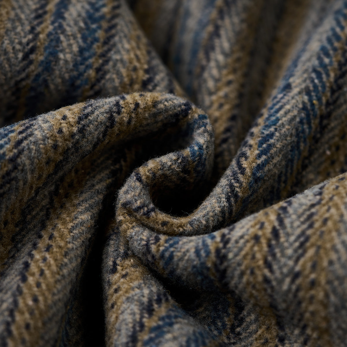 高品質なツイード生地で作られています。ポリエステル素材がメインで使用されており、耐久性に優れています。また、吸湿速乾性の機能も備えており、さまざまなシーンに対応できます。