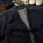 紐で調整する前開きタイプは、着脱が簡単で、体形を選ばず幅広い人にフィットします。紐の結び方次第で、前を閉じて暖かく着ることも、開けてラフに着ることも可能です。