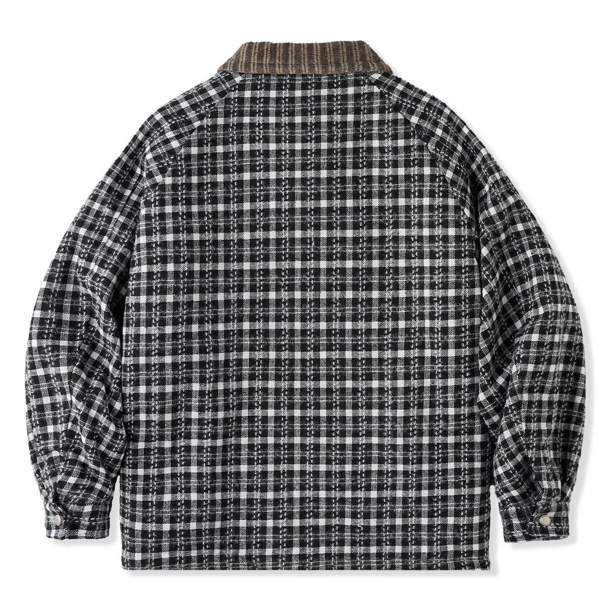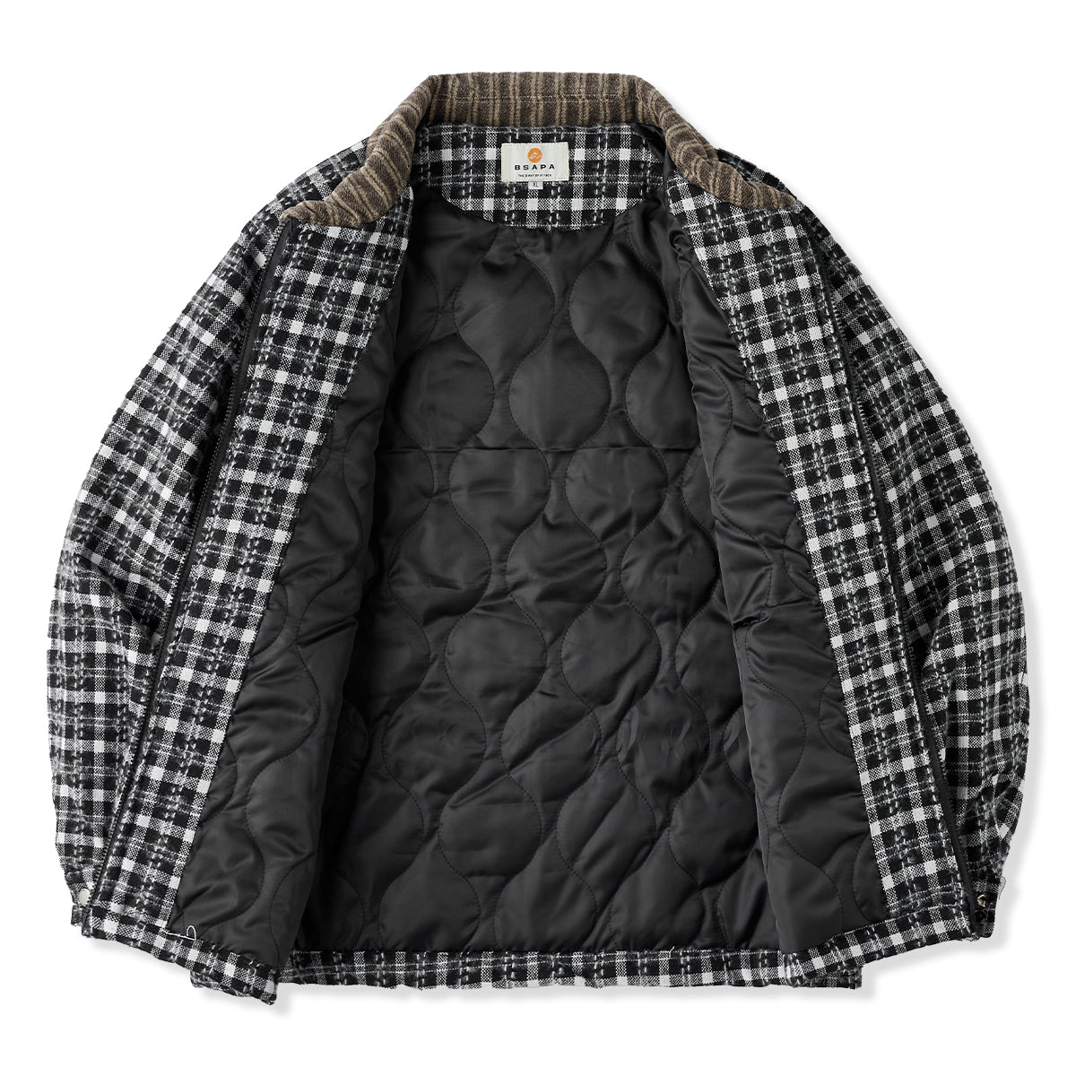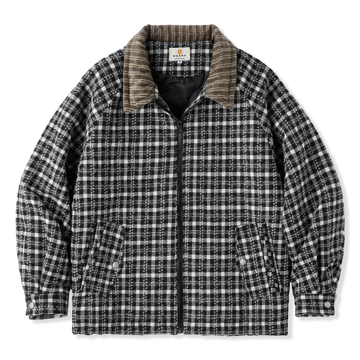 先染ジャカード織りチェック柄 裏ひょうたんキルト中綿襟配色ジャケット