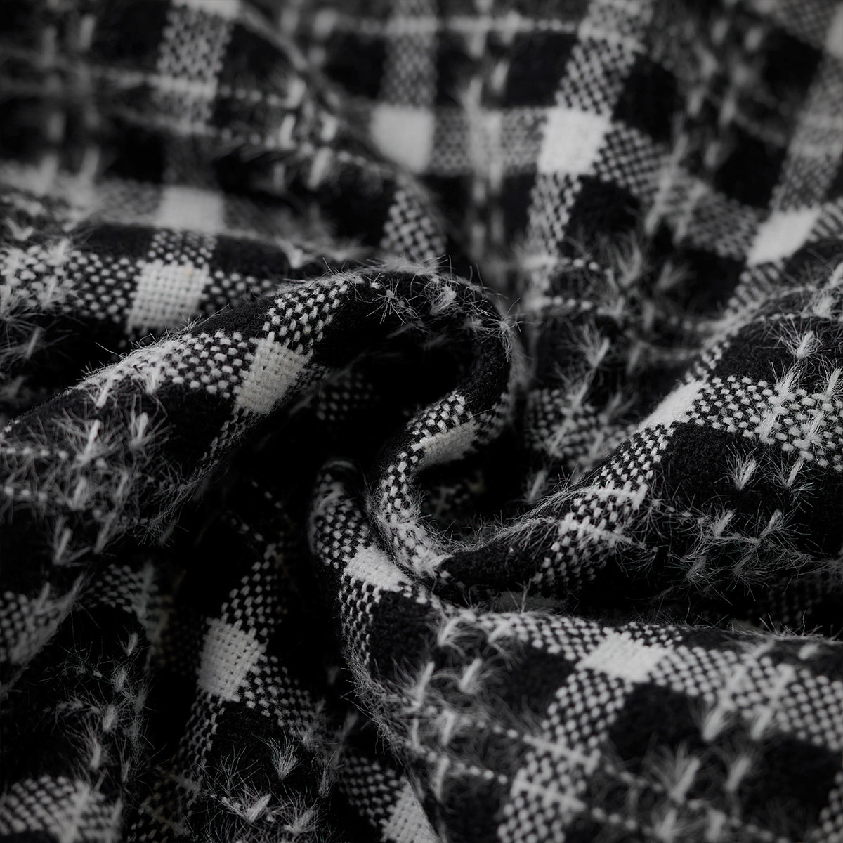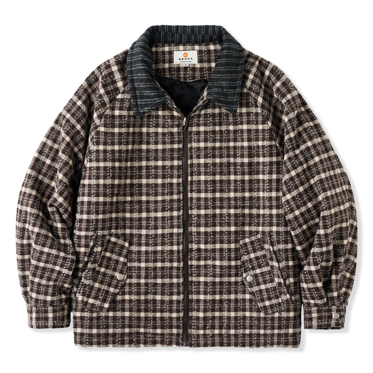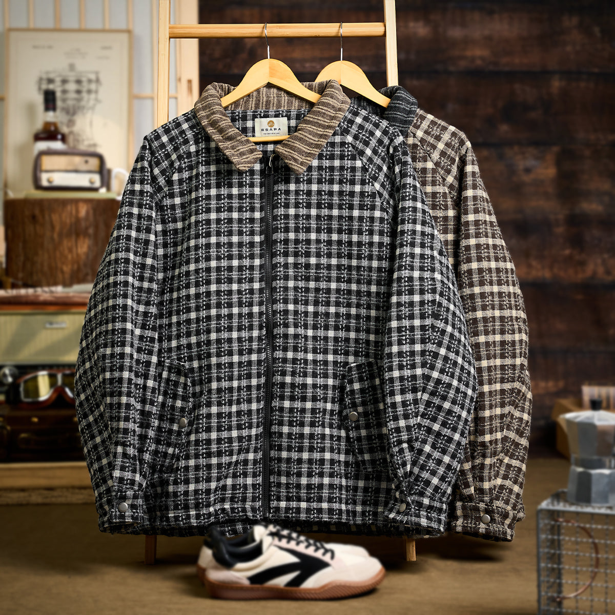 先染ジャカード織りチェック柄 裏ひょうたんキルト中綿襟配色ジャケット