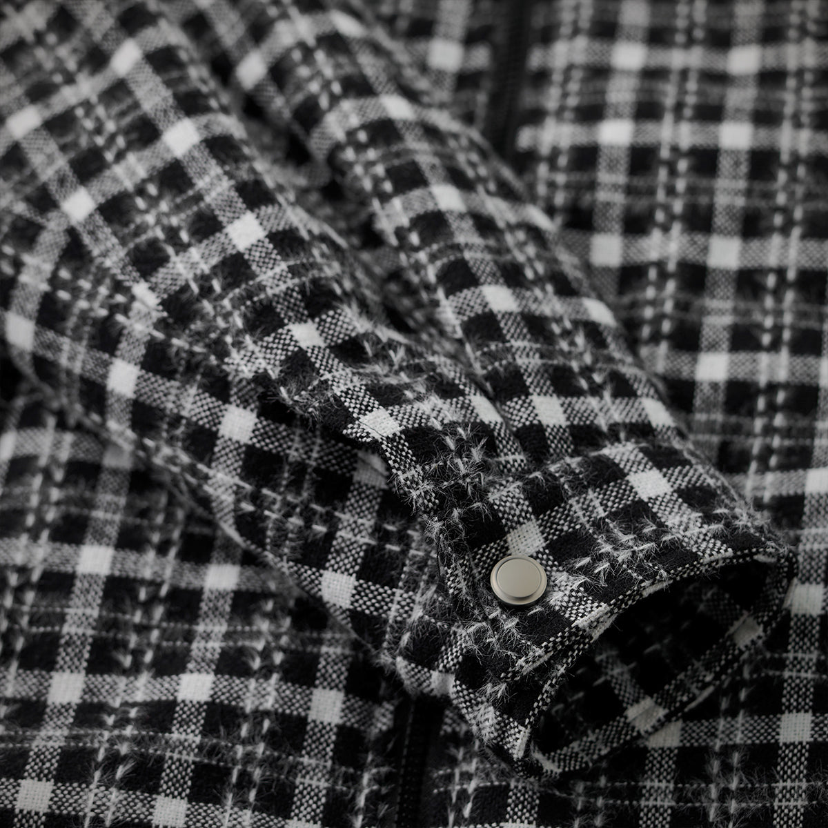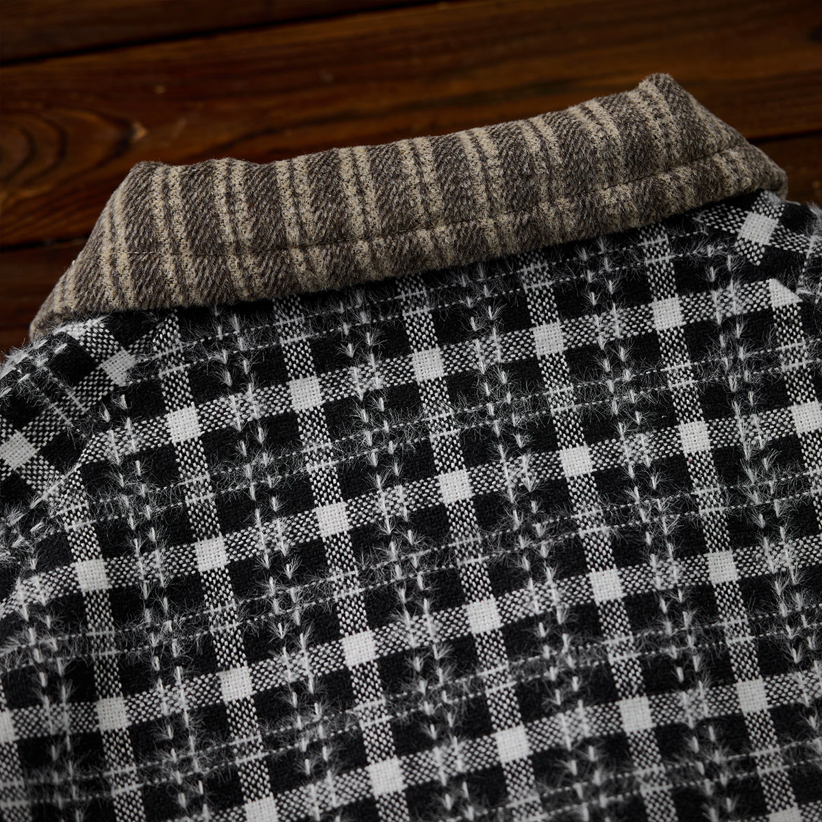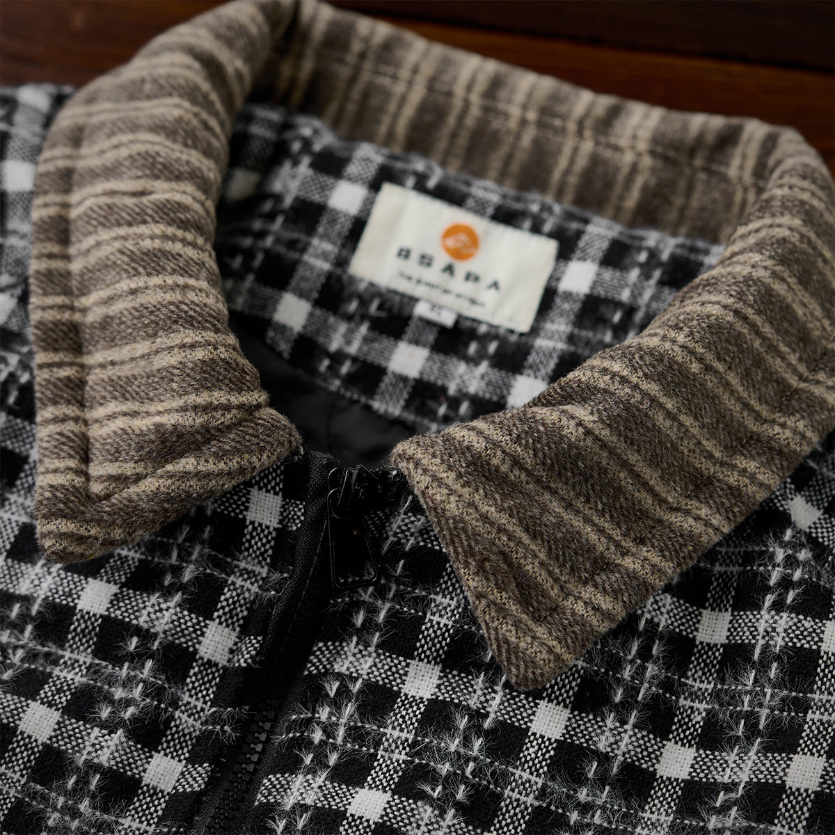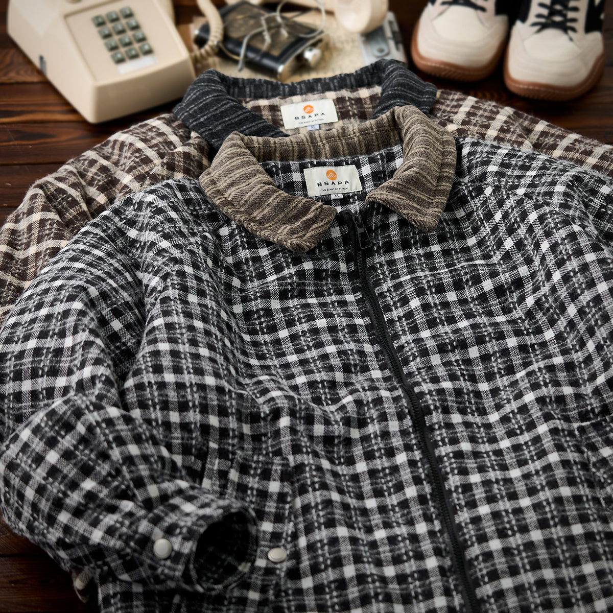 深みのある色合いが魅力の先染ジャカード織りチェック生地を使用。糸から染め上げることで、柄の奥行きと上品なツヤ感を表現しています。裏地にはひょうたん型のキルティングを施した中綿仕様で、軽やかさと確かな保温性を両立。襟元には配色デザインを採用し、全体に程よいコントラストとアクセントをプラス。クラシックなチェック柄にモダンなエッセンスを加えることで、上品さの中にも個性が光る仕上がりです。ゆとりのあるシルエットで重ね着もしやすく、タウンユースからアウトドアまで幅広く活躍。