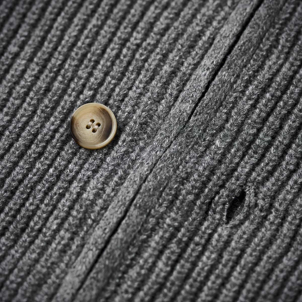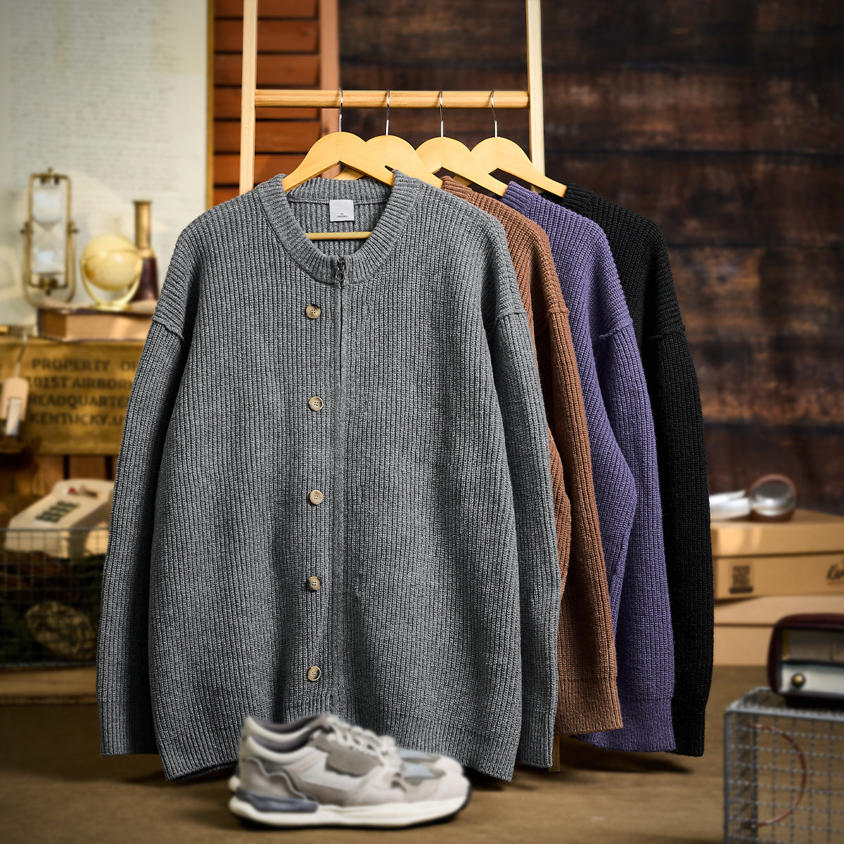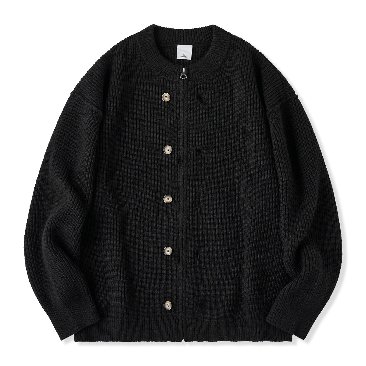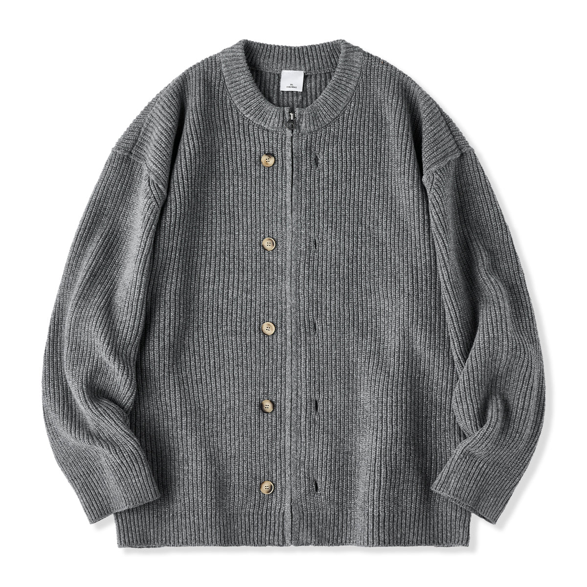 Button&Zipper 4色展開リブ編みニットカーディガン