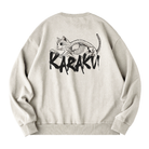 「KARAKU」という文字が大胆な手書き風フォントで配置され、力強さを感じさせます。フォントのスタイルは、アーティスティックでラフな印象を与え、ストリート系ファッションの要素を取り入れています。