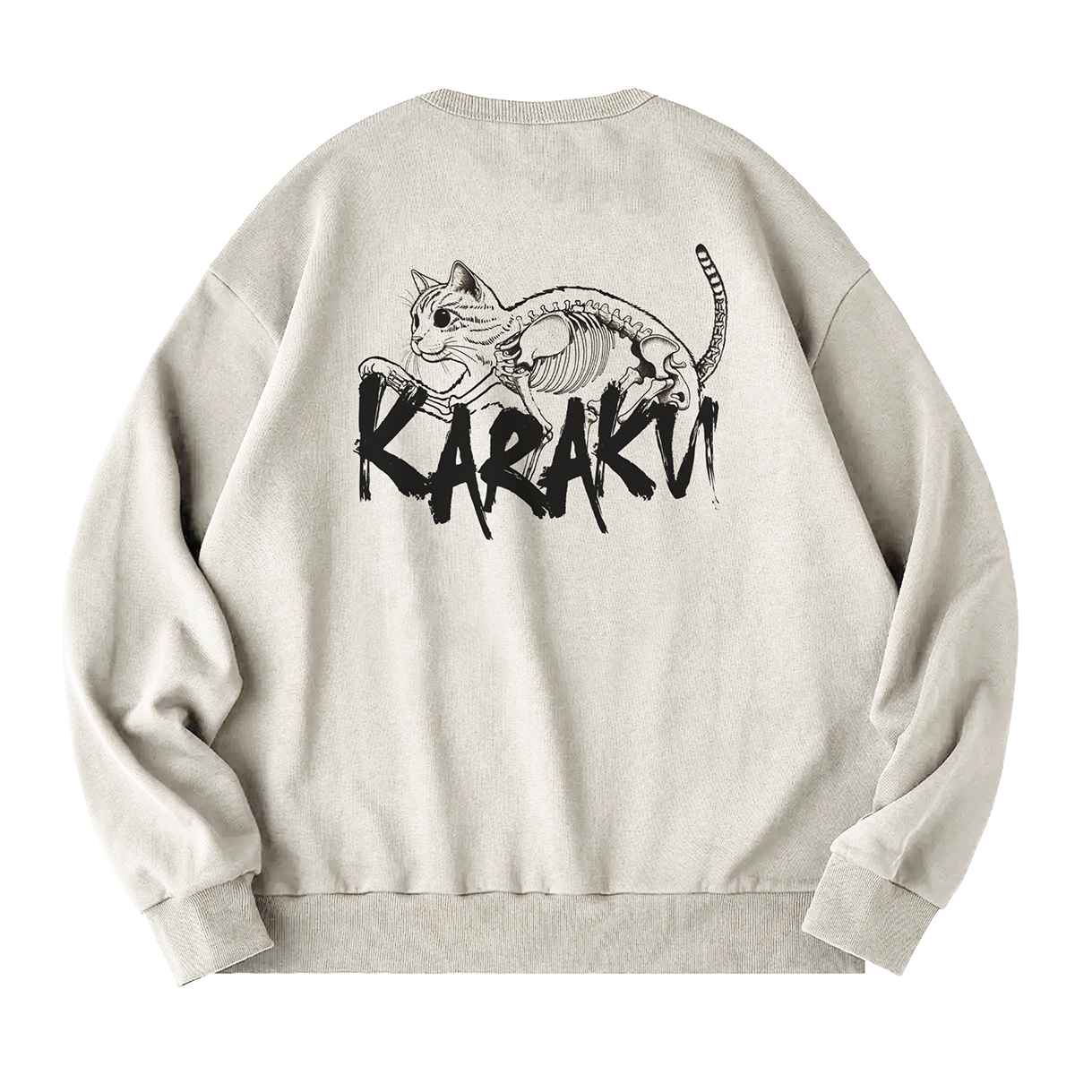 【予約】「骨格が透けて見える猫」プリント 裏パイルコットンVガゼットスウェット